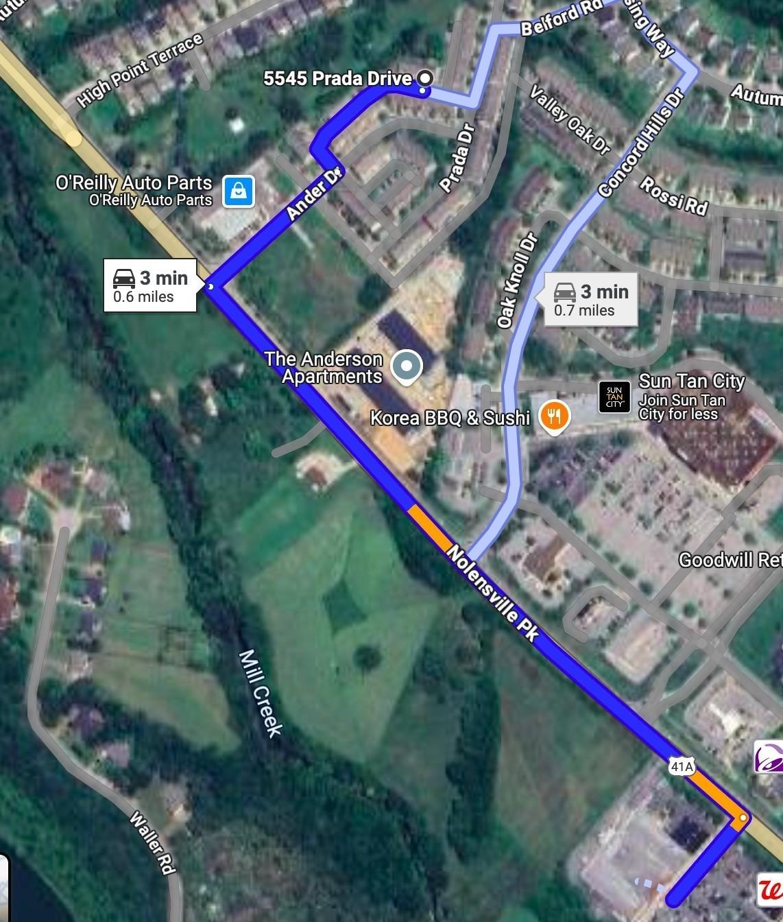 I-65 to Old Hickory Blvd. exit east. Turn right on Nolensville Rd. Travel on Nolensville Rd. (about 3 miles), turn left on Ander Dr. into High Point. Go straight until you can only go left or right, turn left then left.