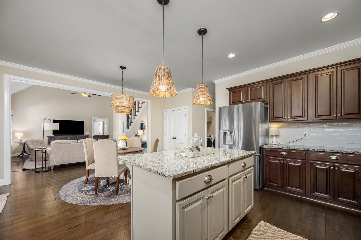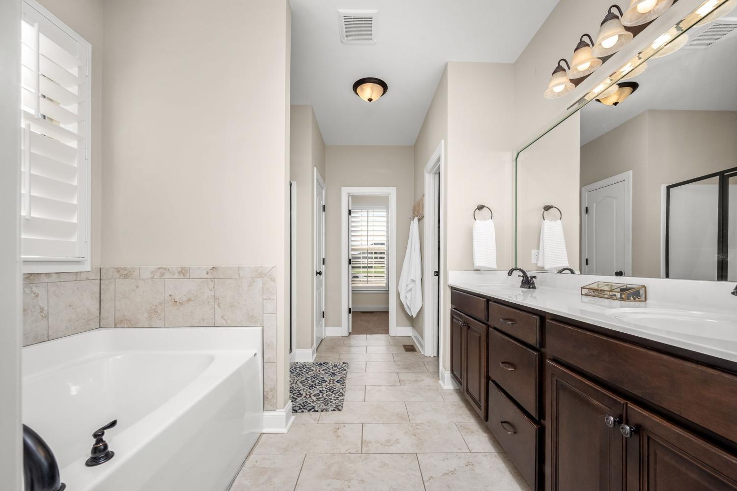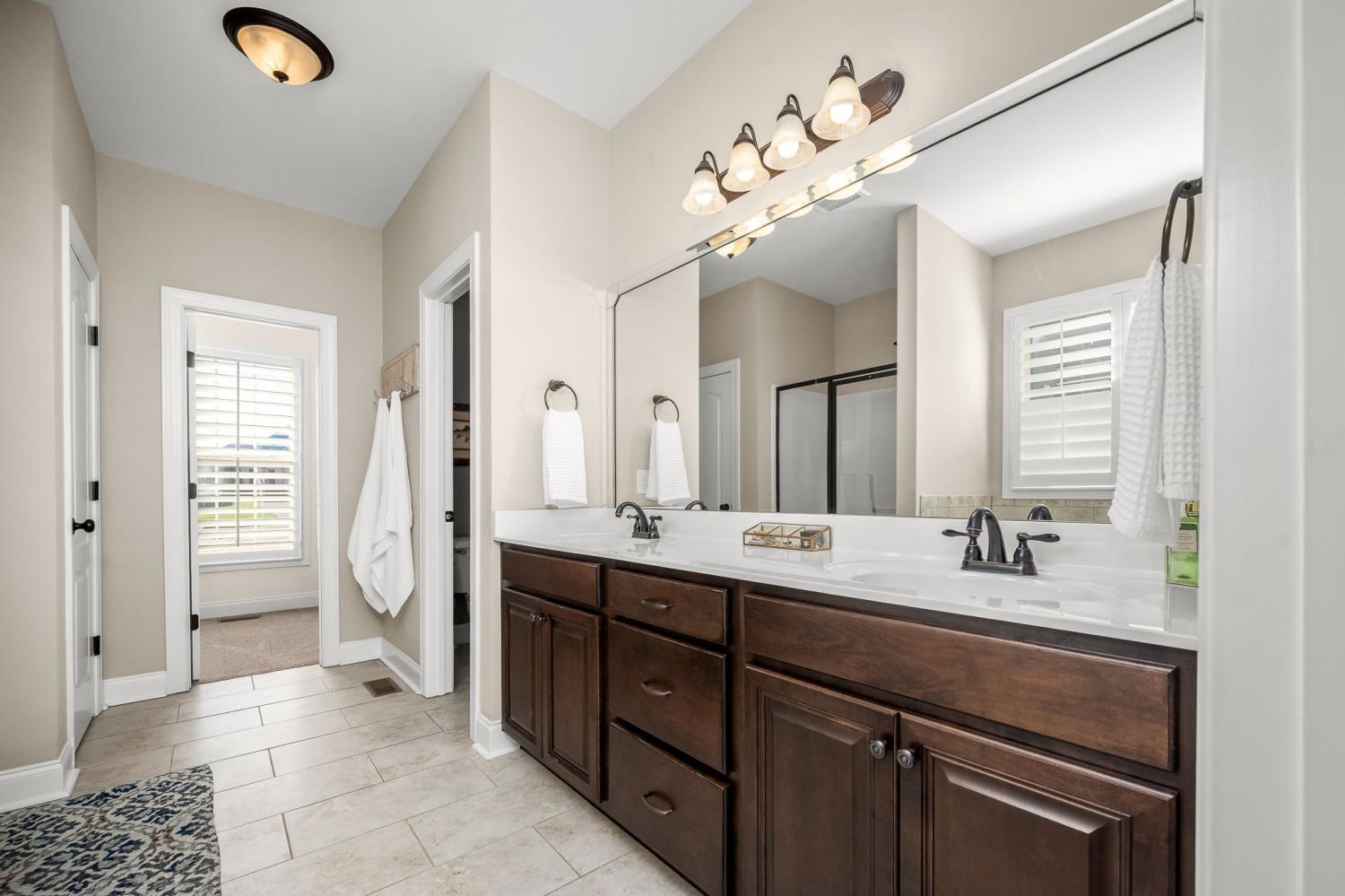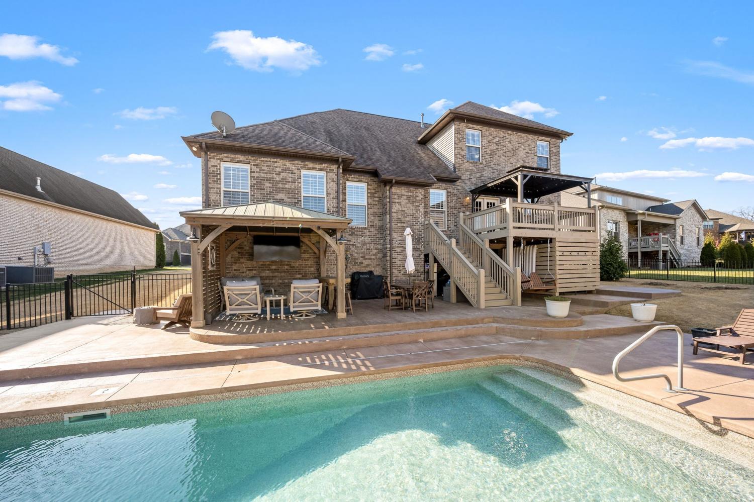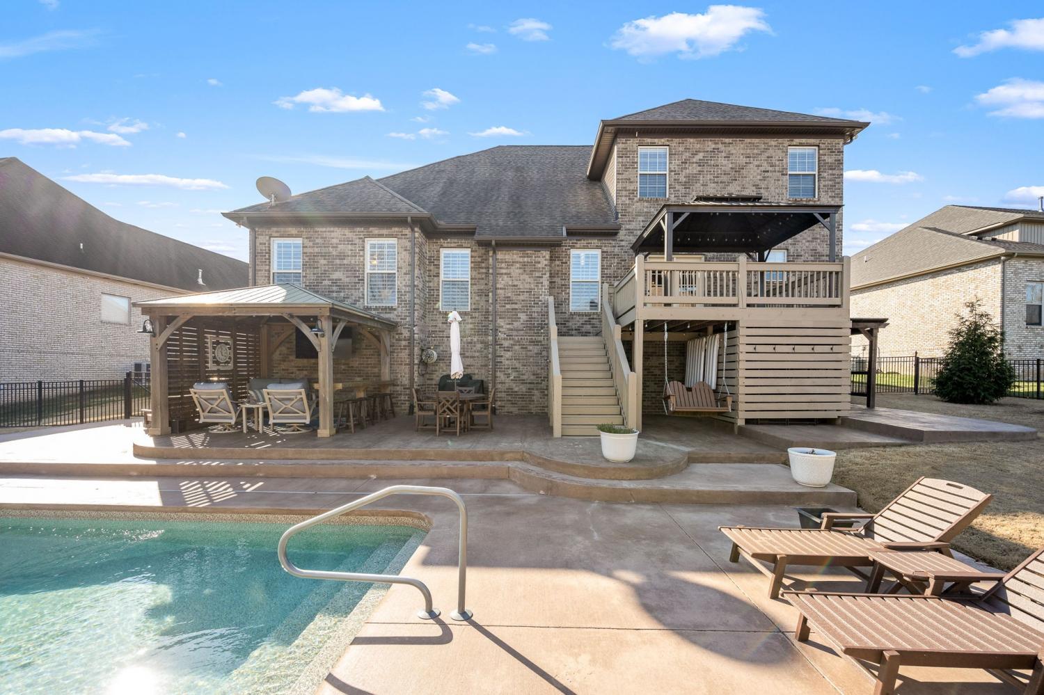Located in a highly sought-after neighborhood and zoned for top-rated schools, this home offers refined living with thoughtful design and upscale finishes throughout. The main level features two spacious bedrooms and two full baths, providing effortless one-level living, while the upper level offers two additional bedrooms, a full bath, and an expansive bonus/family room—ideal for guests, a media space, or a private retreat. The home has been freshly painted throughout and is enhanced by new plantation shutters, creating a bright, sophisticated ambiance. The kitchen is both elegant and functional, showcasing granite countertops, updated appliances, and generous prep space, seamlessly flowing into the main living areas for effortless entertaining. Step outside to a meticulously landscaped, fully fenced backyard that backs up to a serene tree line, offering exceptional privacy. The recently installed in-ground swimming pool, surrounded by expansive stamped concrete, creates a resort-style outdoor living experience—perfect for relaxing or hosting unforgettable gatherings. This exceptional property combines luxury, comfort, and privacy in a location that truly stands out. 1% Lender Incentive with Angela Kidd with Primis Mortgage. (615) 869-9120