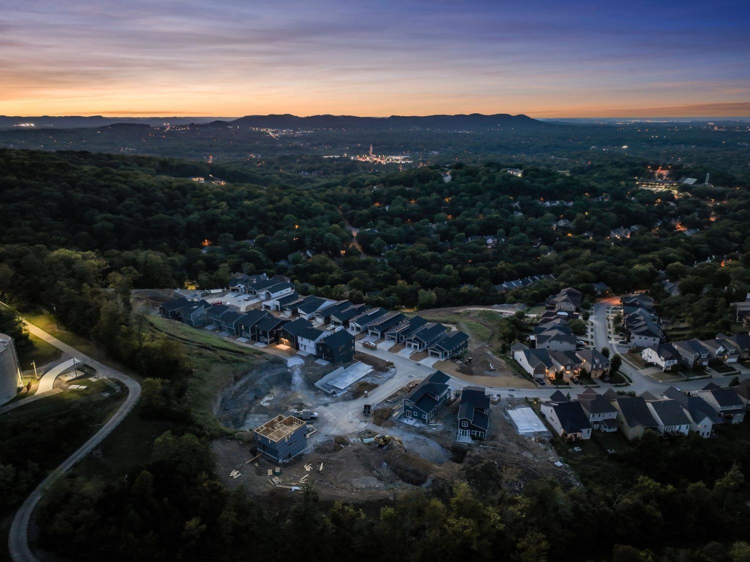 DOWNTOWN views from hillside modern homes nestled against Patterson Knob, one of the highest peaks in Davidson County. Ridge Floor Plan. Enjoy easy access to the best of city living and Williamson County, surrounded by rolling hills in a breathtaking setting. Feel the wide open spaces soaked in sunlight. Windows everywhere. Huge kitchen with gas cooktop, and wall oven/microwave are ready to entertain and take in the scenery. Custom modern fireplace tops off the living room. The Ridge Floor plan, home under construction with completion estimated November 2025. Model Open 11-3pm daily with agent on duty 1580 Boxwood Dr.