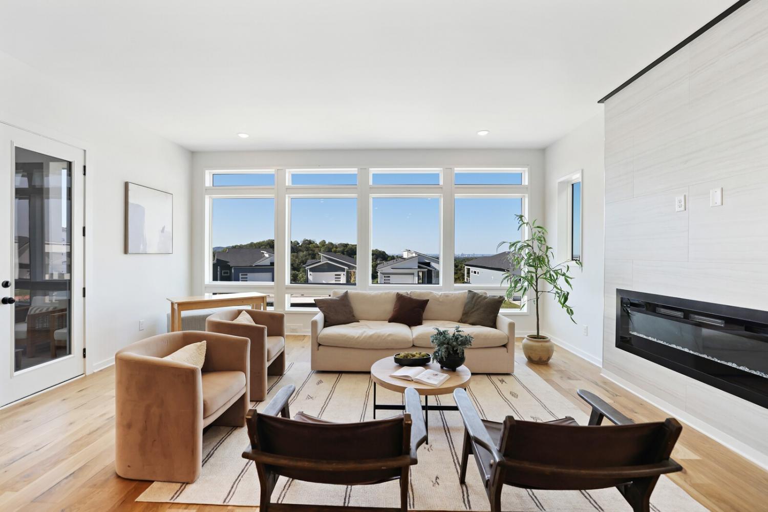 Up to 1% lender credit on the loan amount if the buyer uses the Seller's Preferred Lender. DOWNTOWN views from hillside modern homes nestled against Patterson Knob, one of the highest peaks in Davidson County. Skyline Floor Plan. Enjoy easy access to the best of city living and Williamson County, surrounded by rolling hills in a breathtaking setting. Feel the wide open spaces soaked in sunlight. Windows everywhere. Huge kitchen with gas cooktop, and wall oven/microwave are ready to entertain and take in the scenery. Custom modern fireplace tops off the living room. Views north to DOWNTOWN, west toward the Brentwood hills, and southeast overlooking Nolensville. This is the model, open daily 11-3pm this weekend.