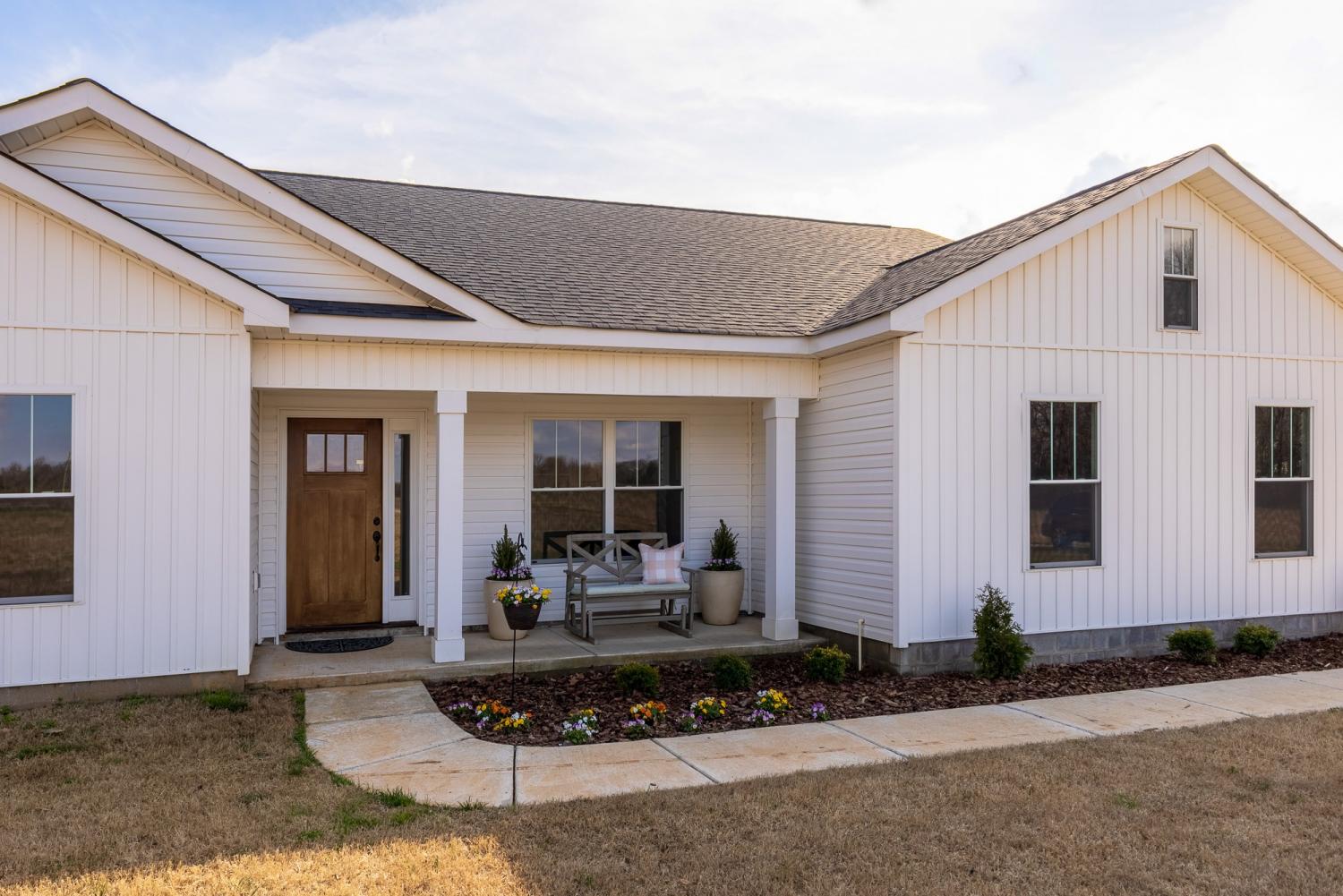 Custom White Farmhouse on 7.6 acres in Ardmore, TN. This property offers privacy, beautiful acreage, and a setting well suited for a mini-farm or homesteading. The land includes a wet-weather creek, open pasture, wooded areas, and cleared spaces beneath mature trees. The soil is ideal for farming, and the property has recently been used as a horse farm. Built in 2023, this home features 2,054 square feet, 4 bedrooms, and 3 full bathrooms with LVT flooring throughout. A wood-burning fireplace adds warmth to the main living area. An office or studio space provides flexibility for work or creative use. The kitchen includes a farmhouse sink and Vent-A-Hood, and the laundry room is equipped with a utility sink. The property also includes a custom outhouse constructed from Amish-milled lumber and an Amish-built movable chicken coop. High-speed internet is available, with convenient access to the Redstone Arsenal and Research Park, As well as I-65. Land is flat and has plenty of room to add a shop, barn, a huge garden space, so many possibilities here!