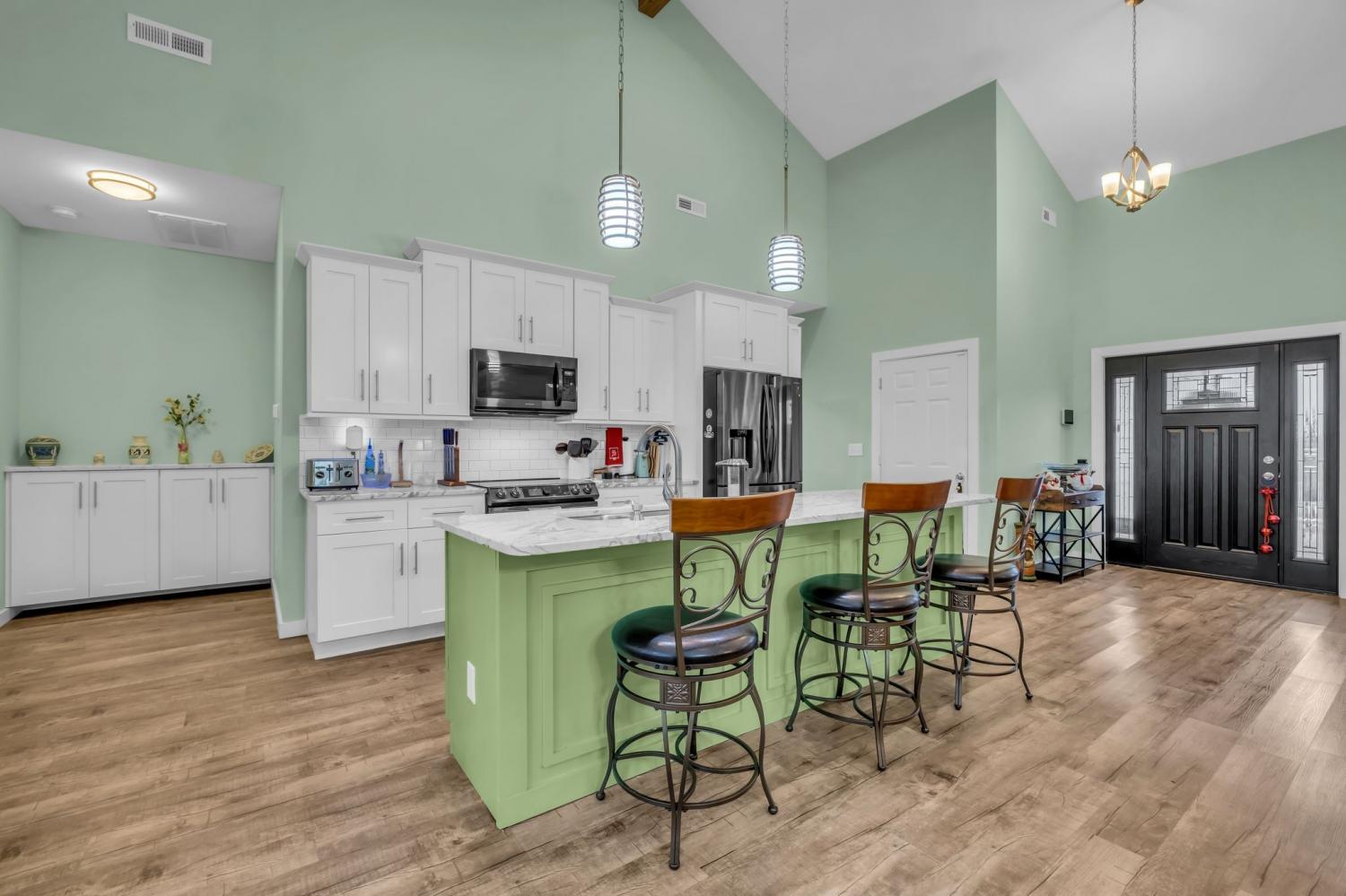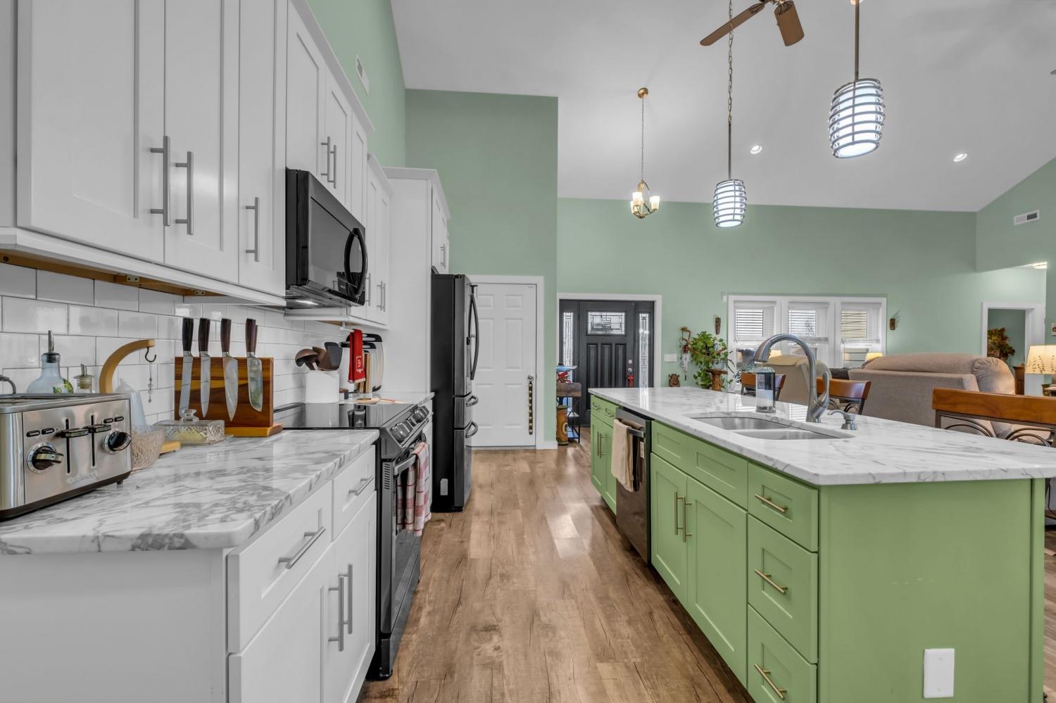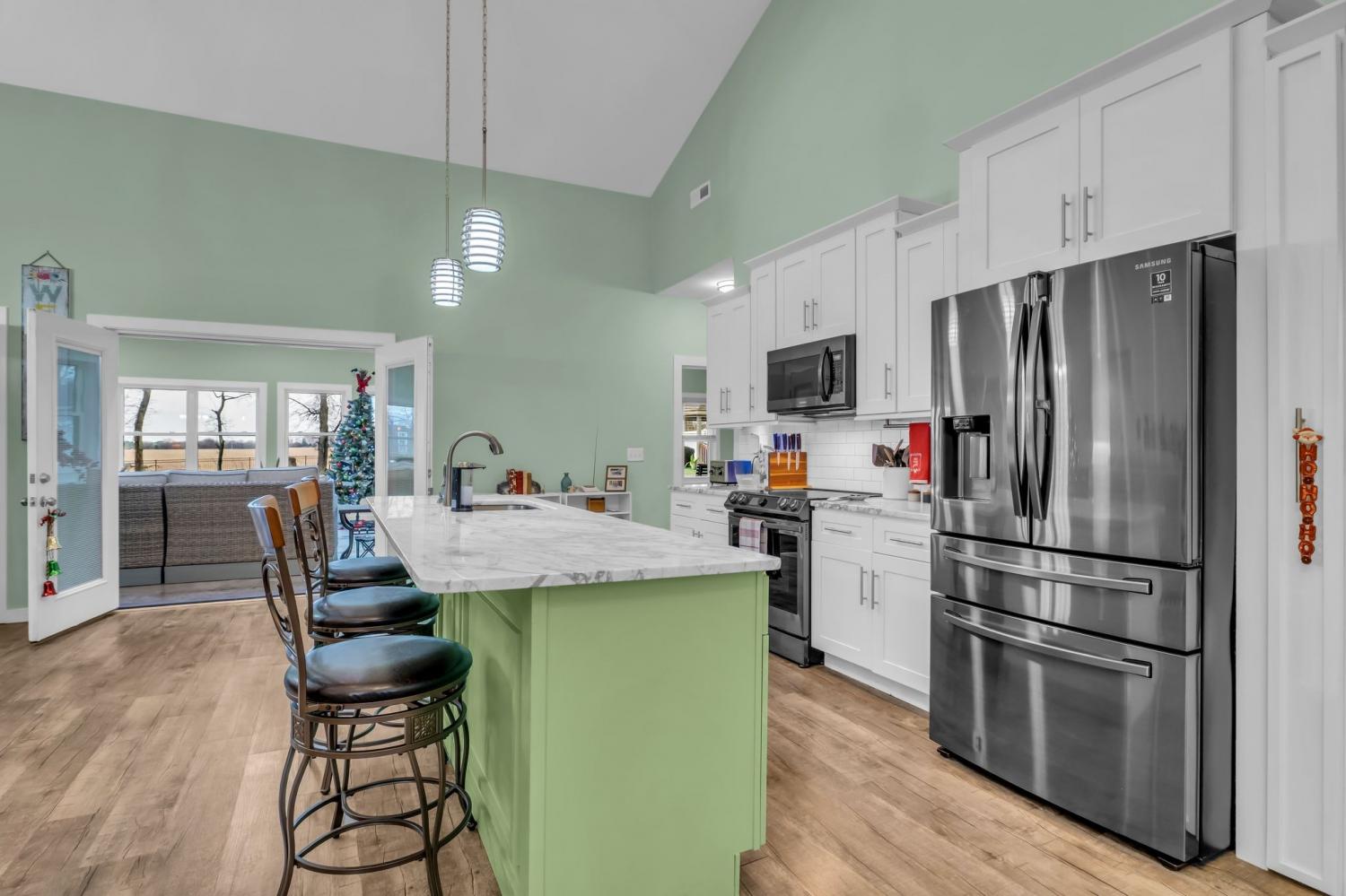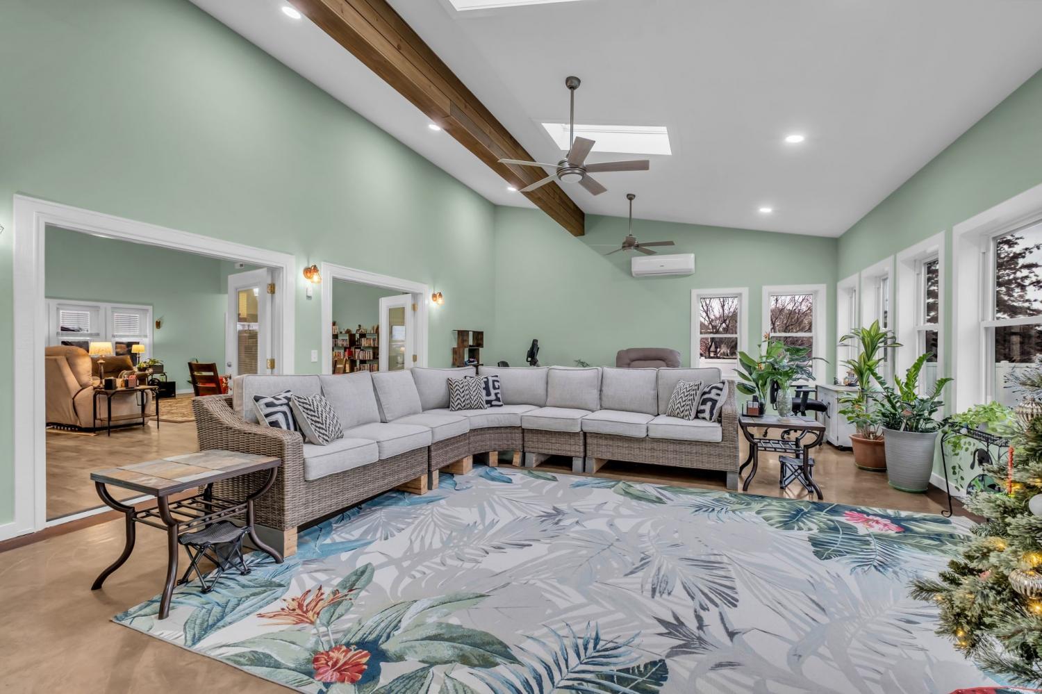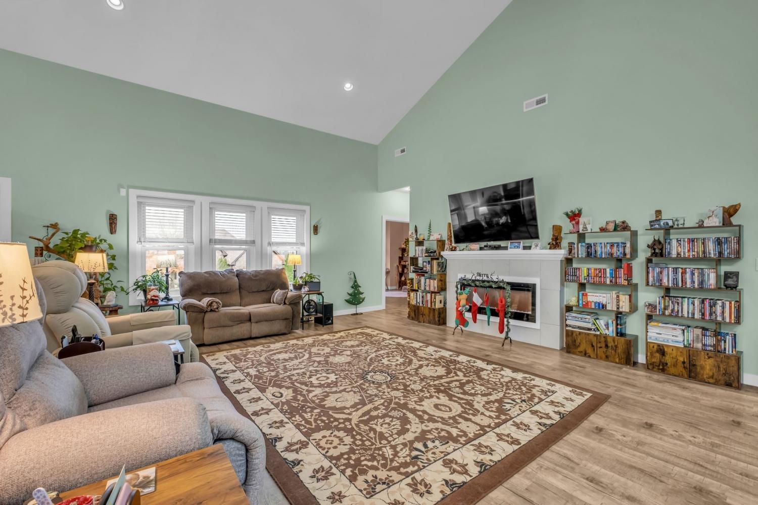 Tucked away in a small, quiet community with a low HOA, this beautifully maintained one-level home sits on nearly an acre and backs directly to a peaceful family farm—offering privacy, open views, and a true sense of retreat. Inside, the expansive great room stuns with soaring 20-foot ceilings, an electric fireplace, and durable LVP flooring throughout the entire home—no carpet anywhere. Thoughtfully designed for comfort and efficiency, the home features over 2,700 square feet of single-level living with three bedrooms, two baths, and a dedicated office. A 600+ square foot sun/rec room added in 2023 creates an incredible second living space, highlighted by a wall of energy-efficient windows overlooking the backyard. Step outside to enjoy a fully fenced yard, complete with a pergola and an exterior porch featuring an electric awning with sun screens—perfect for relaxing or entertaining in every season. Recent upgrades include all new energy-efficient windows (2023), custom blinds, a new electrical panel, newer HVAC systems (two units have 8 years left on a transferable warranty which includes parts & labor), a tankless water heater, and a one-year-old garage door. The septic system was pumped in 2025 with all filters cleaned, offering peace of mind for the next owner. The primary suite is a true retreat with a jetted tub and a spacious walk-in shower. All appliances remain, making this home truly move-in ready. With space, privacy, and extensive updates—this Gallatin gem delivers comfort, functionality, and serene surroundings just minutes from town.