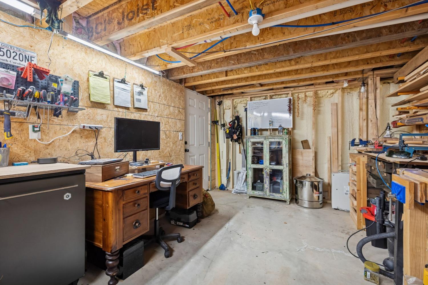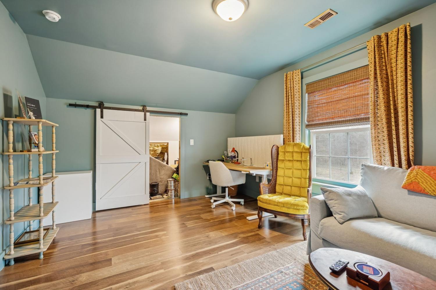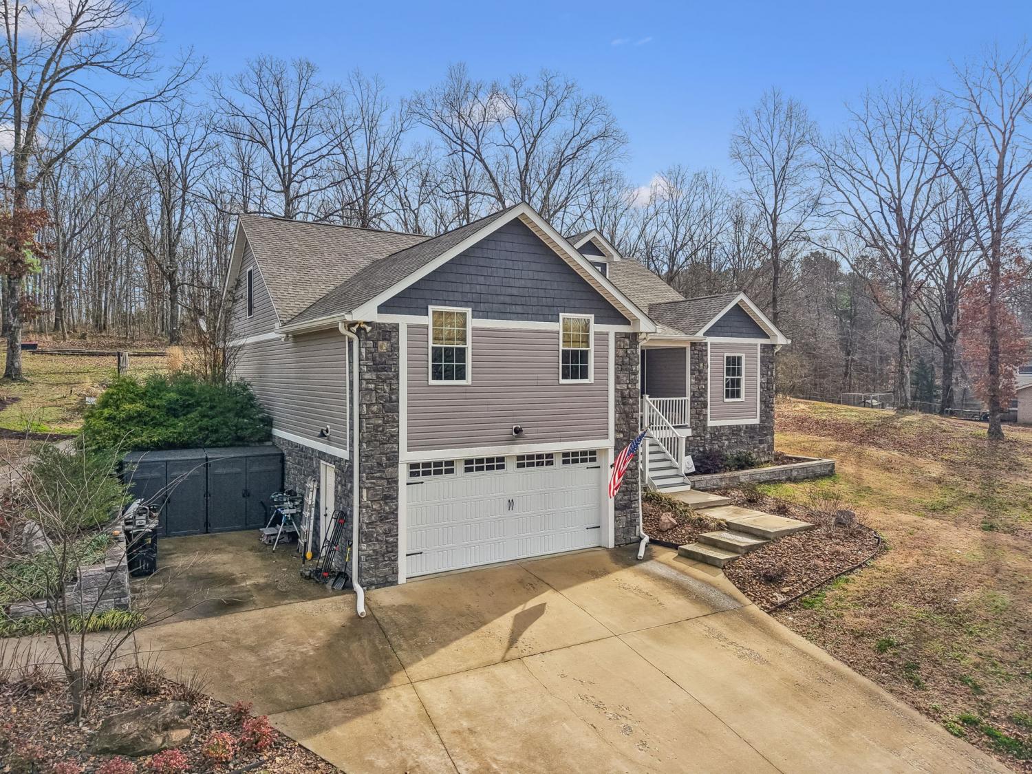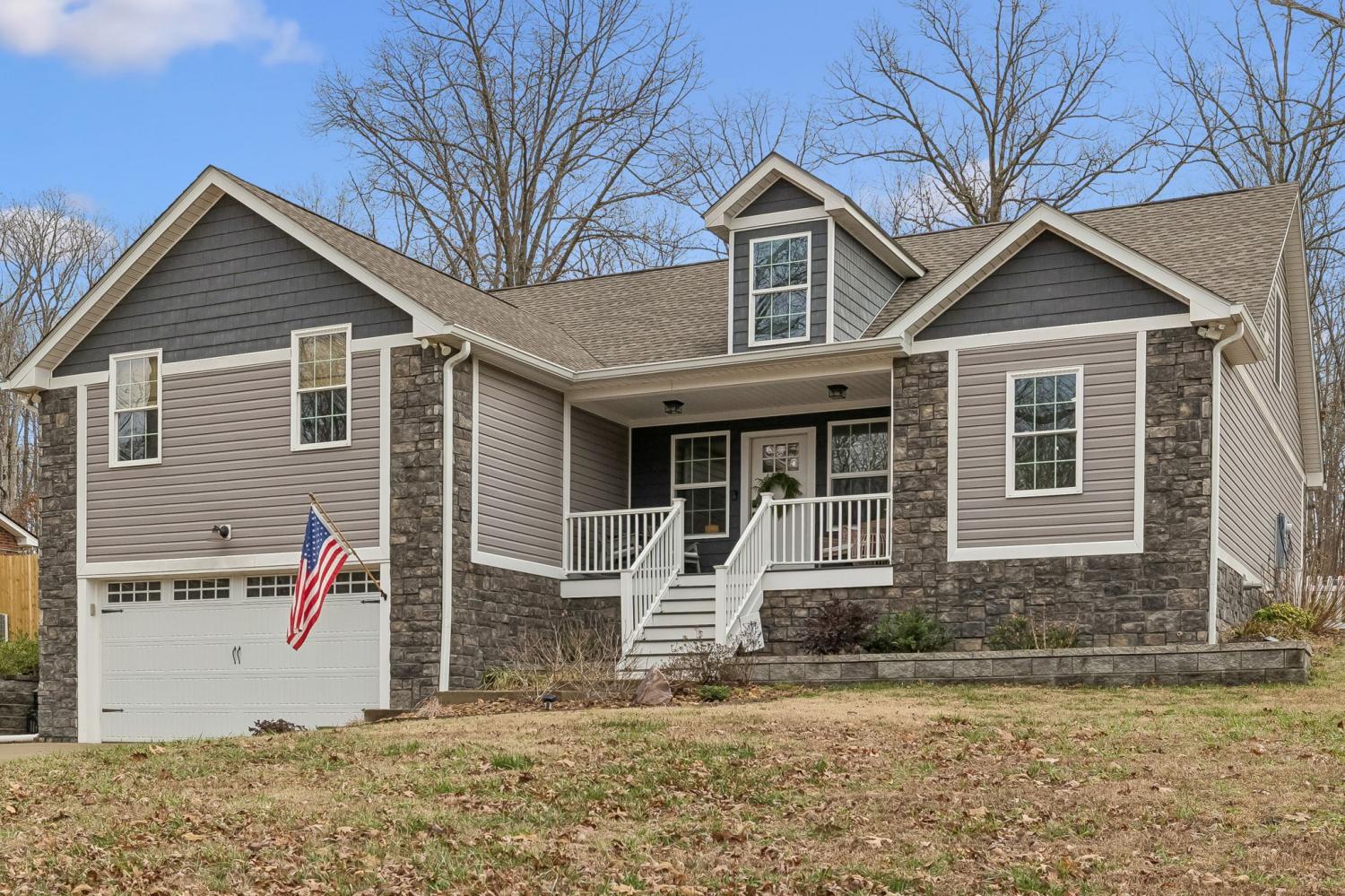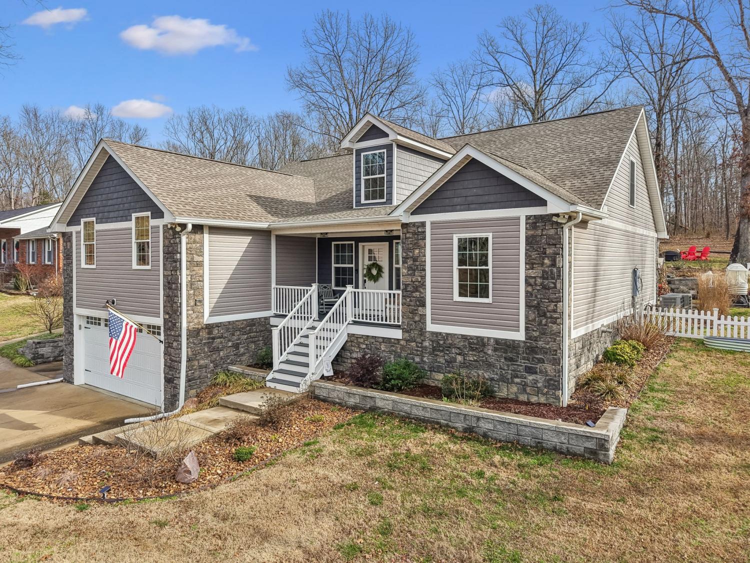 Built in 2020, this beautifully maintained home offers just over 2,900 square feet of well designed living space with 5 bedrooms and 3.5 bathrooms. Interior features include vaulted ceilings, LVT flooring, ceramic tile, and an open concept layout ideal for everyday living and entertaining. The kitchen features a large center island, stainless steel appliances, and abundant cabinetry and storage. Three bedrooms are located on the main level, including the primary suite and laundry room. A spacious flex room just off the main level provides excellent options for a bonus room, den, or additional bedroom. The upper level includes a full bathroom, living area, bedroom, and extensive storage, making it ideal for guests or an in law suite. Outdoor living is highlighted by a covered and screened back porch with cedar ceiling and decking overlooking a private wooded view. Additional upgrades include professional landscaping, a moisture controlled crawlspace, tankless water heater, mechanical room, and ample storage throughout. This home offers comfort, functionality, and quality construction in a desirable setting.