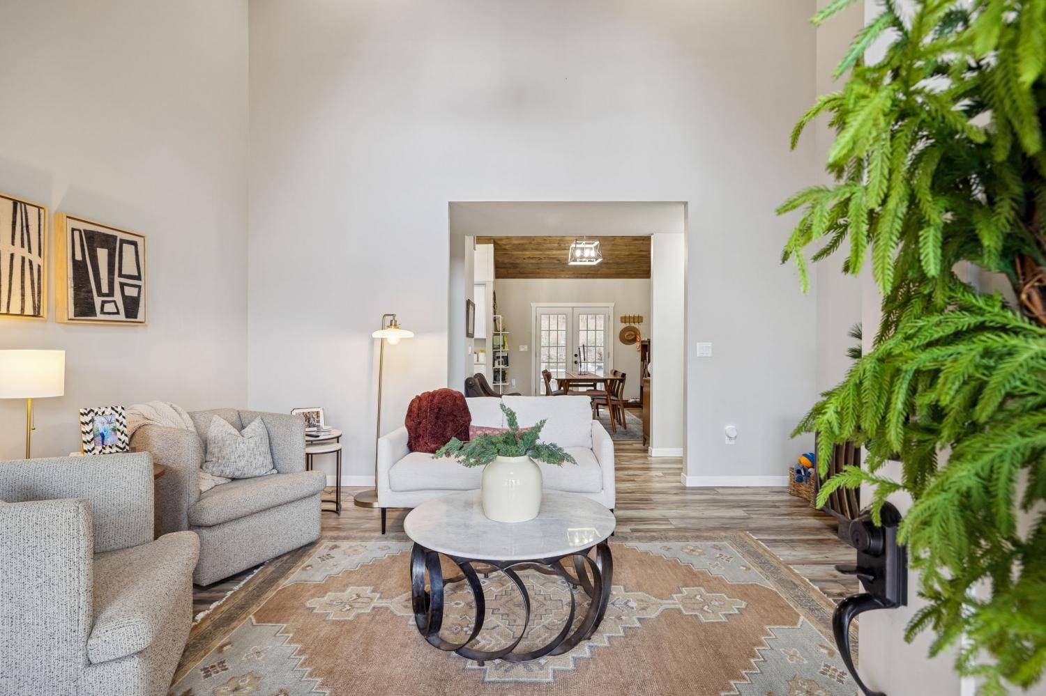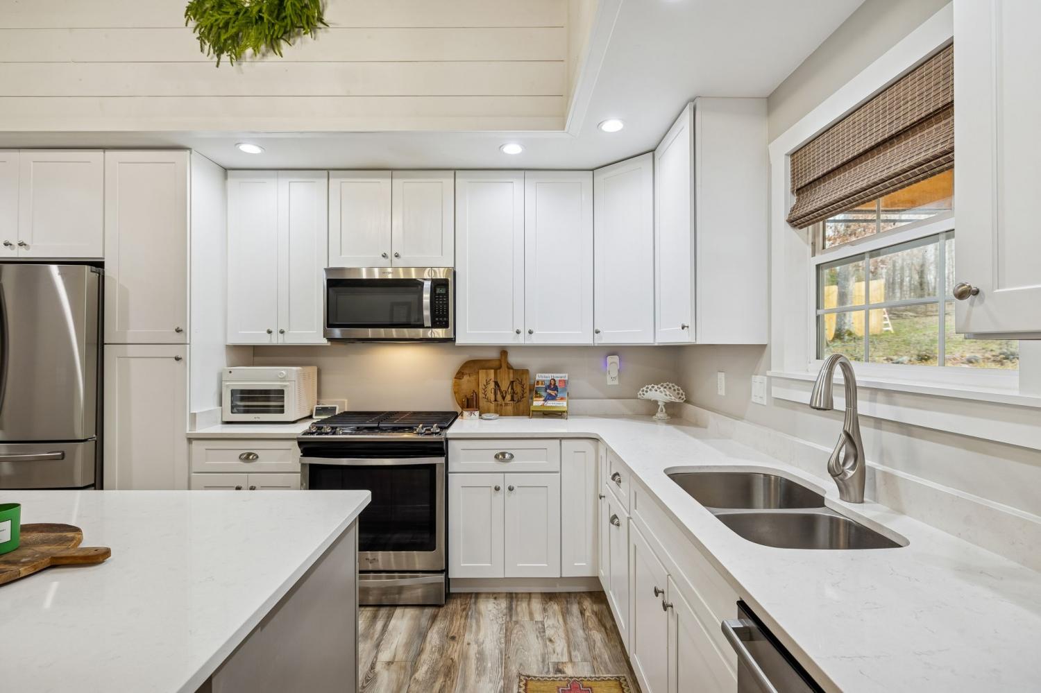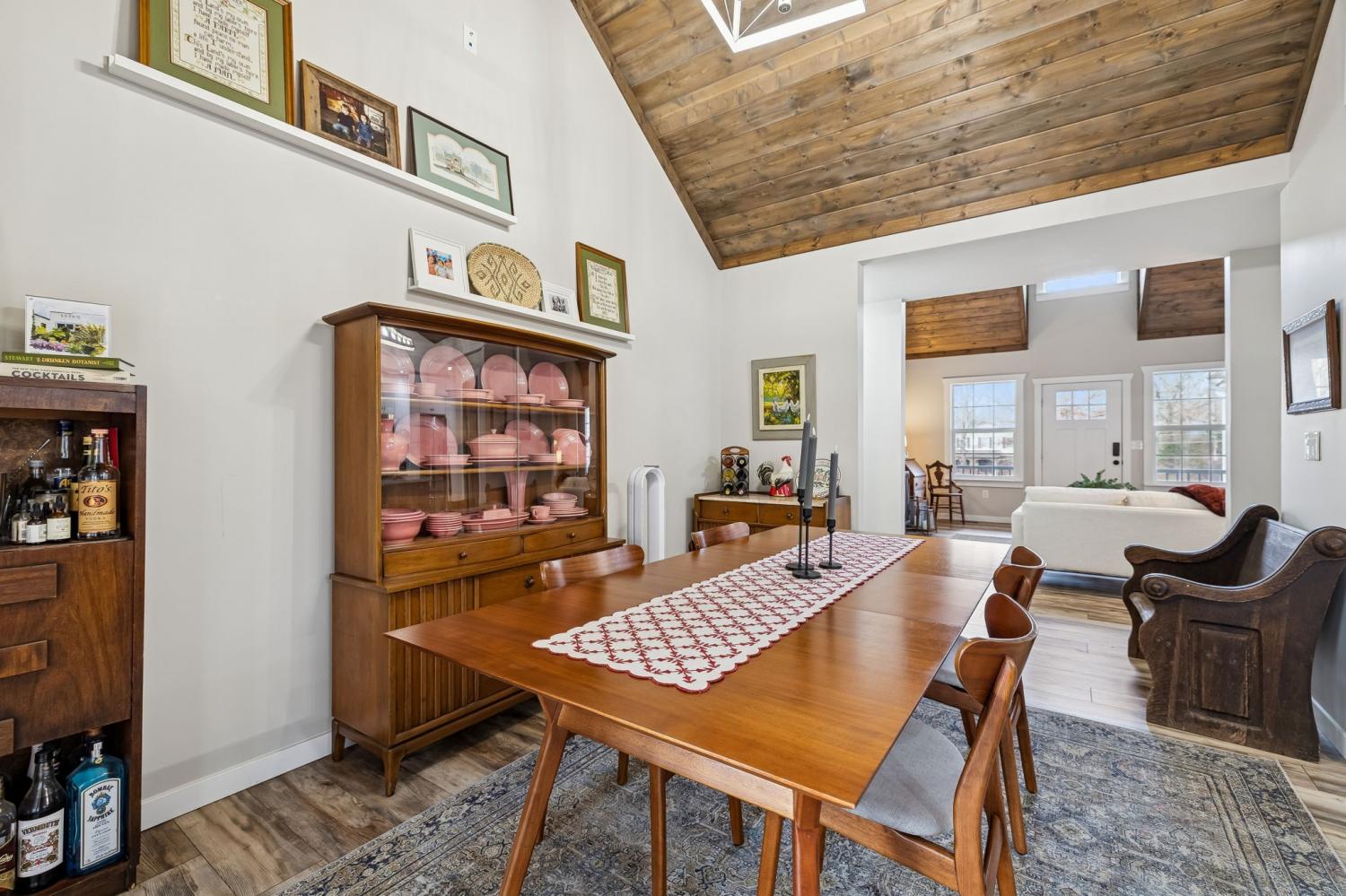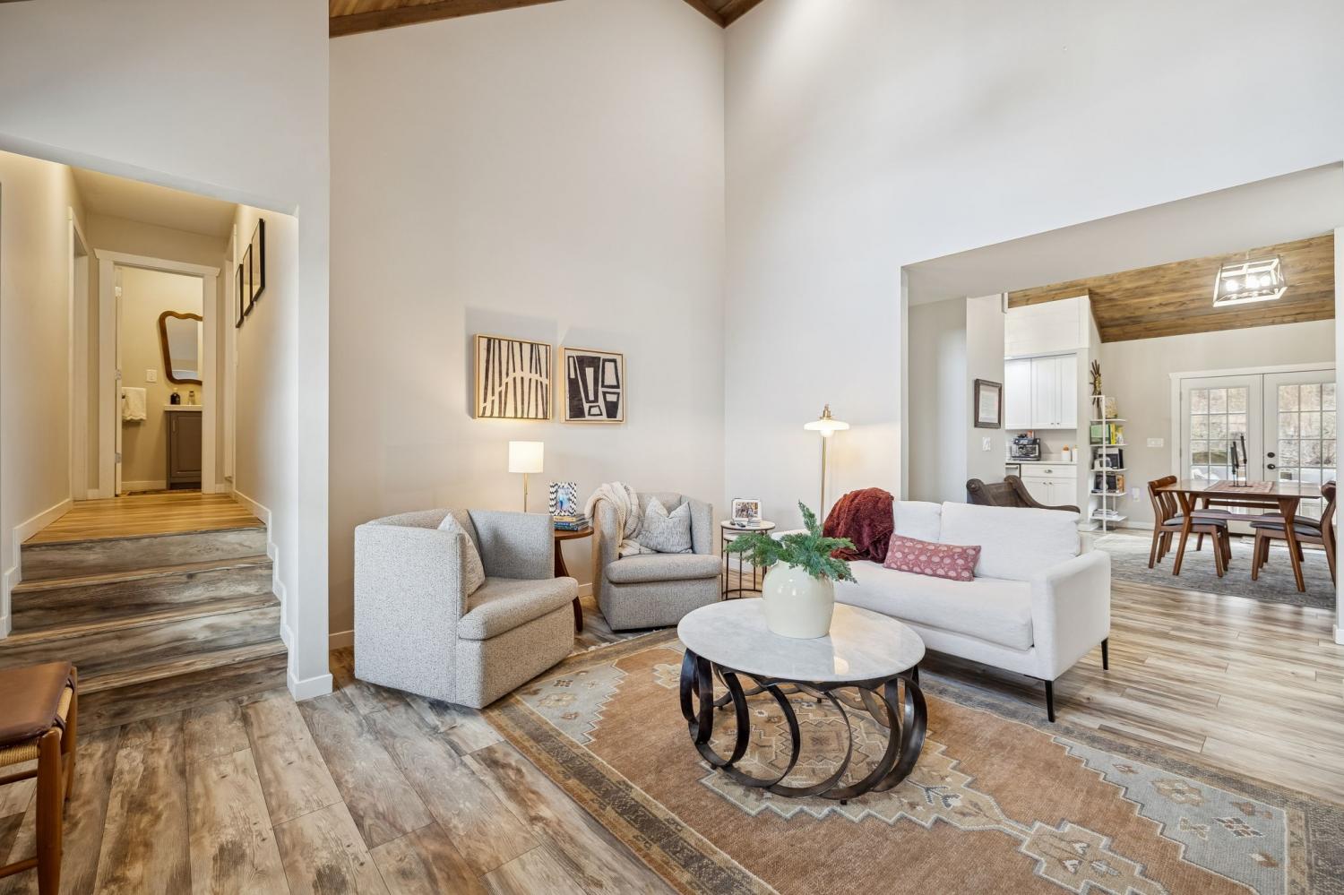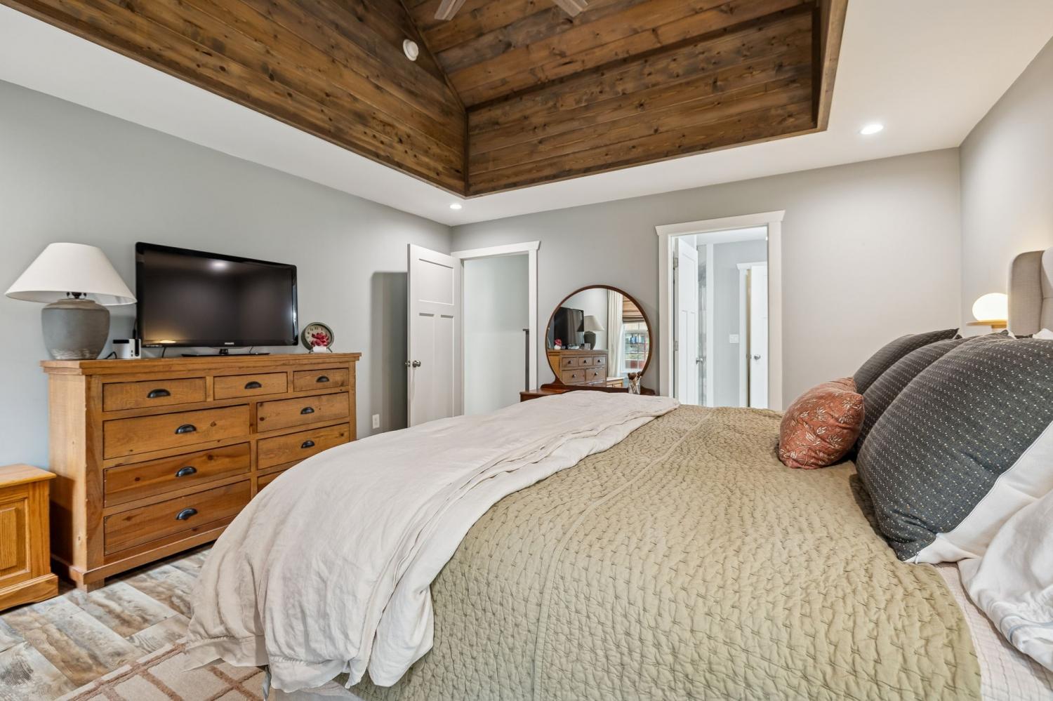 Built in 2020, this beautifully maintained home offers just over 2,900 square feet of well designed living space with 5 bedrooms and 3.5 bathrooms. Interior features include vaulted ceilings, LVT flooring, ceramic tile, and an open concept layout ideal for everyday living and entertaining. The kitchen features a large center island, stainless steel appliances, and abundant cabinetry and storage. Three bedrooms are located on the main level, including the primary suite and laundry room. A spacious flex room just off the main level provides excellent options for a bonus room, den, or additional bedroom. The upper level includes a full bathroom, living area, bedroom, and extensive storage, making it ideal for guests or an in law suite. Outdoor living is highlighted by a covered and screened back porch with cedar ceiling and decking overlooking a private wooded view. Additional upgrades include professional landscaping, a moisture controlled crawlspace, tankless water heater, mechanical room, and ample storage throughout. This home offers comfort, functionality, and quality construction in a desirable setting.
