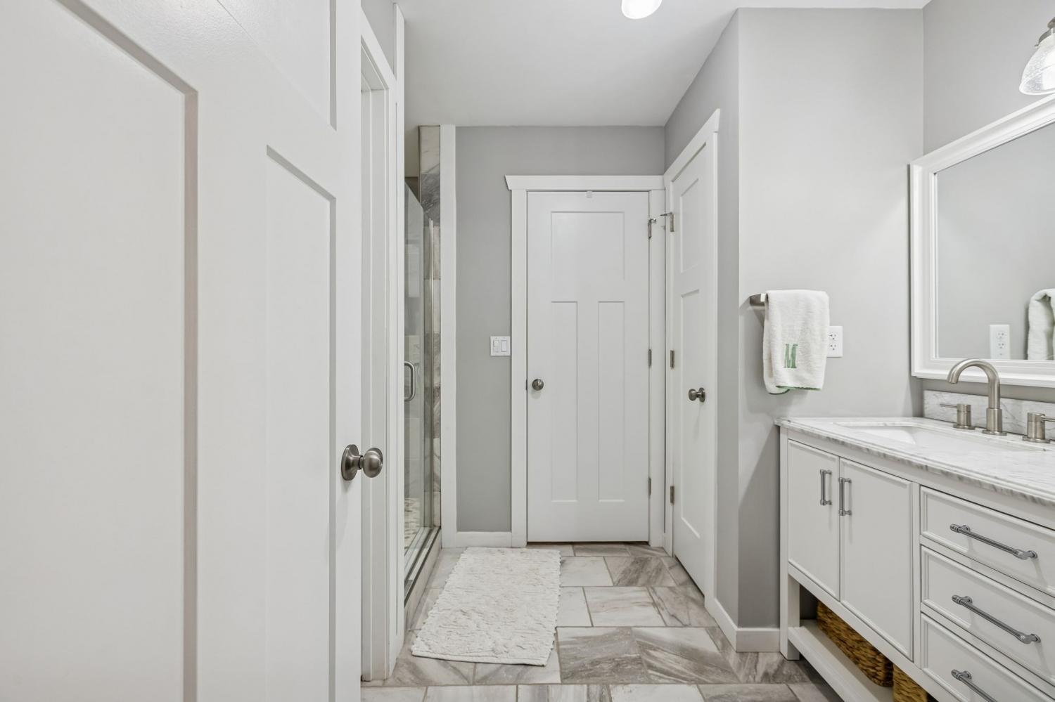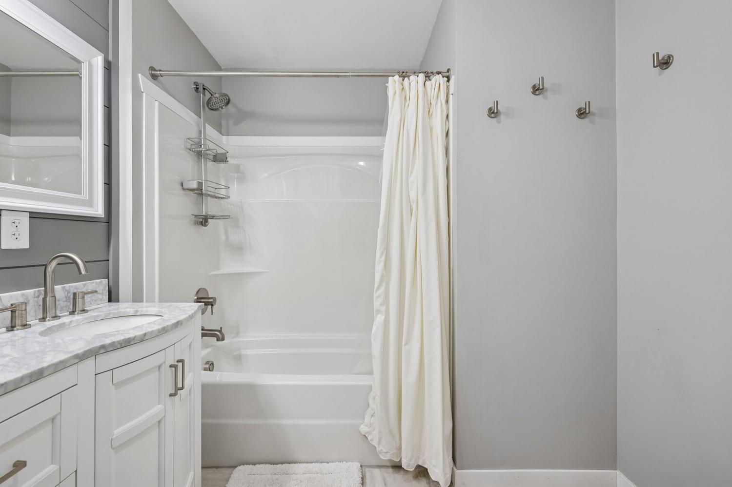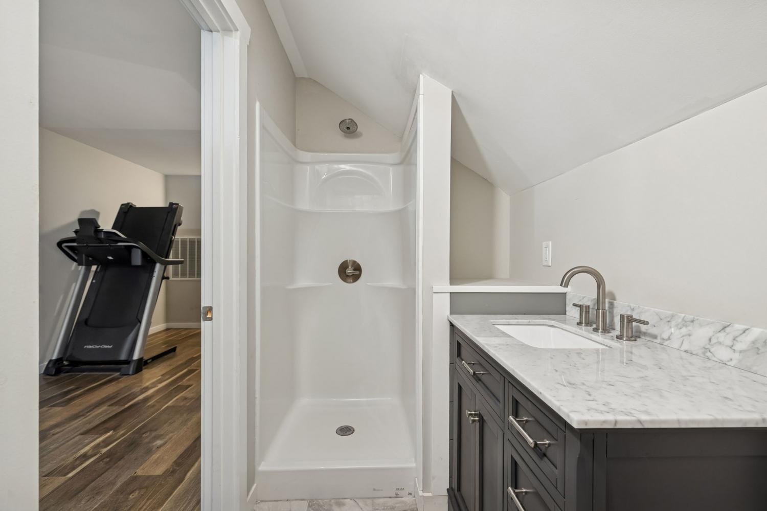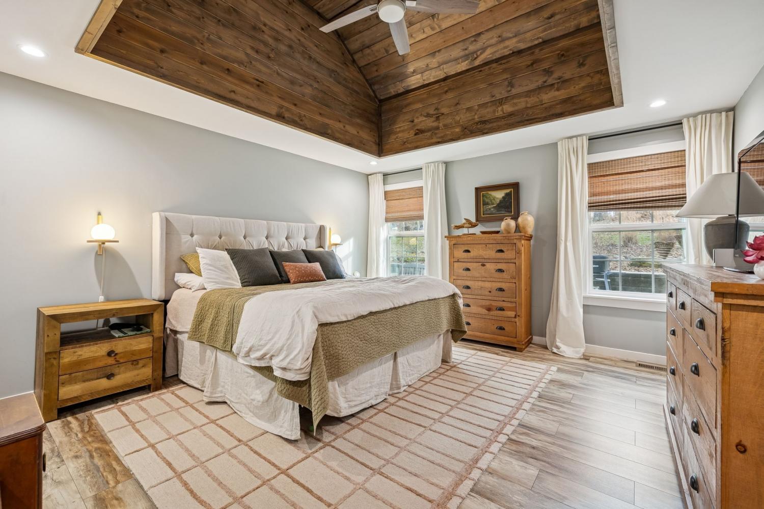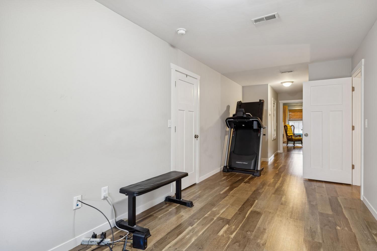 Built in 2020, this beautifully maintained home offers just over 2,900 square feet of well designed living space with 5 bedrooms and 3.5 bathrooms. Interior features include vaulted ceilings, LVT flooring, ceramic tile, and an open concept layout ideal for everyday living and entertaining. The kitchen features a large center island, stainless steel appliances, and abundant cabinetry and storage. Three bedrooms are located on the main level, including the primary suite and laundry room. A spacious flex room just off the main level provides excellent options for a bonus room, den, or additional bedroom. The upper level includes a full bathroom, living area, bedroom, and extensive storage, making it ideal for guests or an in law suite. Outdoor living is highlighted by a covered and screened back porch with cedar ceiling and decking overlooking a private wooded view. Additional upgrades include professional landscaping, a moisture controlled crawlspace, tankless water heater, mechanical room, and ample storage throughout. This home offers comfort, functionality, and quality construction in a desirable setting.
