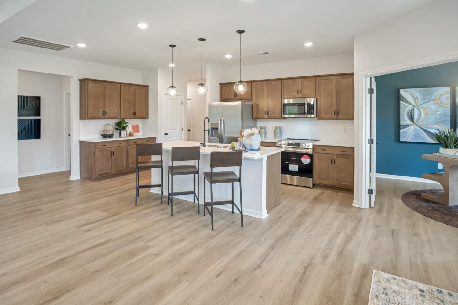 The Avondale at The Oaks by Smith Douglas homes features a welcoming home design with nice curb appeal that starts with a covered front porch. Inside you'll find this home has it all, entertaining is a breeze with a center island kitchen layout, a dining room and large family room all connected to the covered back patio. Two bedrooms and bath are in the front of the home and the owner's suite is situated privately in the back. The owner's suite offers two walk in closets and a linen closet with easy access to the laundry room. *Up to 6 months of no payments for FHA loans! This is for a limited time with seller’s preferred lender and title company! Special offer restrictions and details apply. Contact the onsite agent for details. OR *4.99% 30 Year FHA/VA FIXED rate! This is for a limited time with seller’s preferred lender and title company! Special offer restrictions and details apply. Contact the onsite agent for details. *30-Day Move-in* *Photos are not of actual home but a similar floorplan *