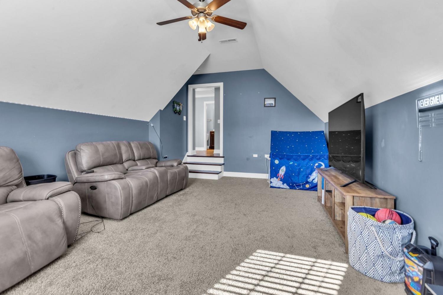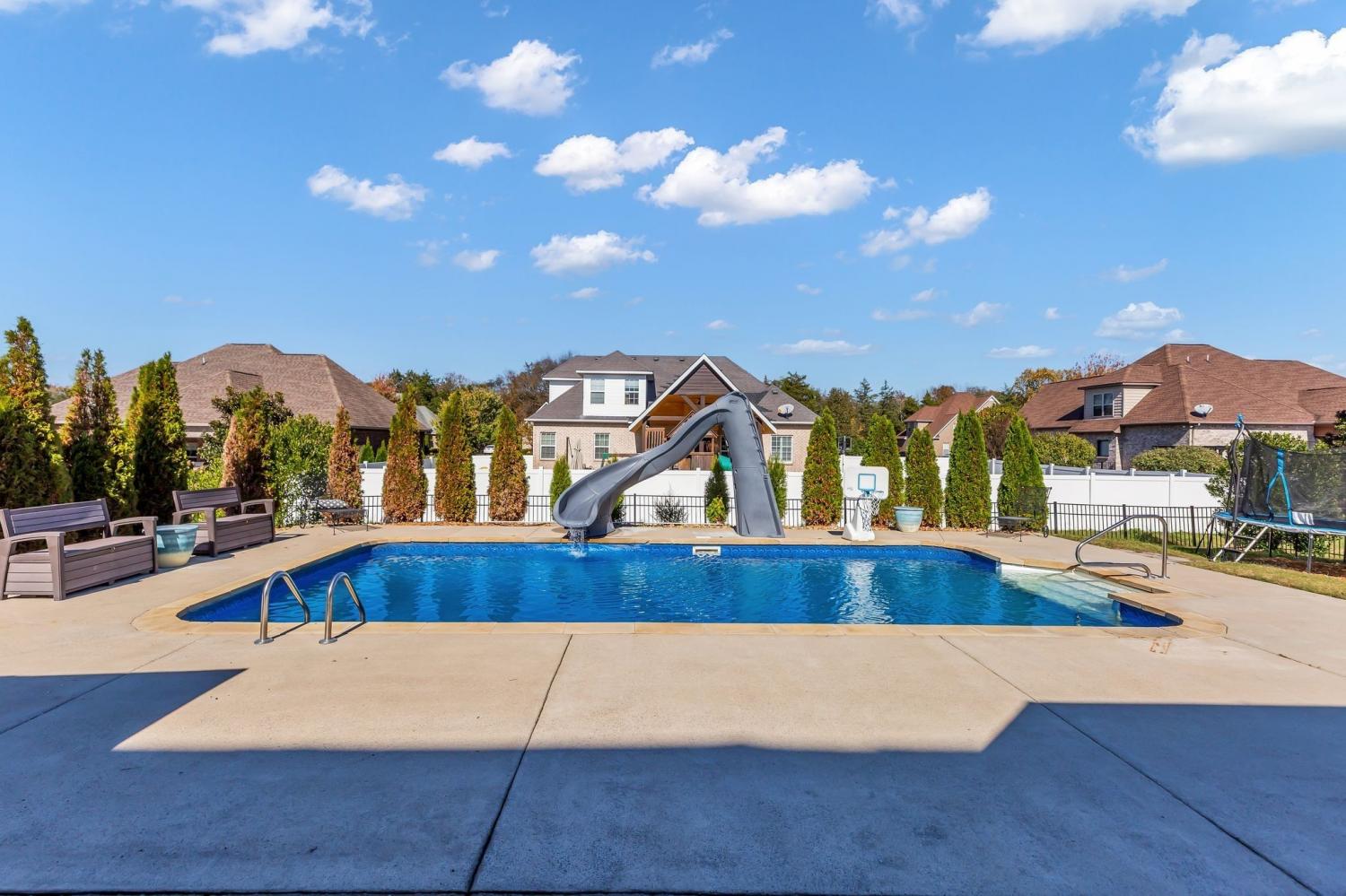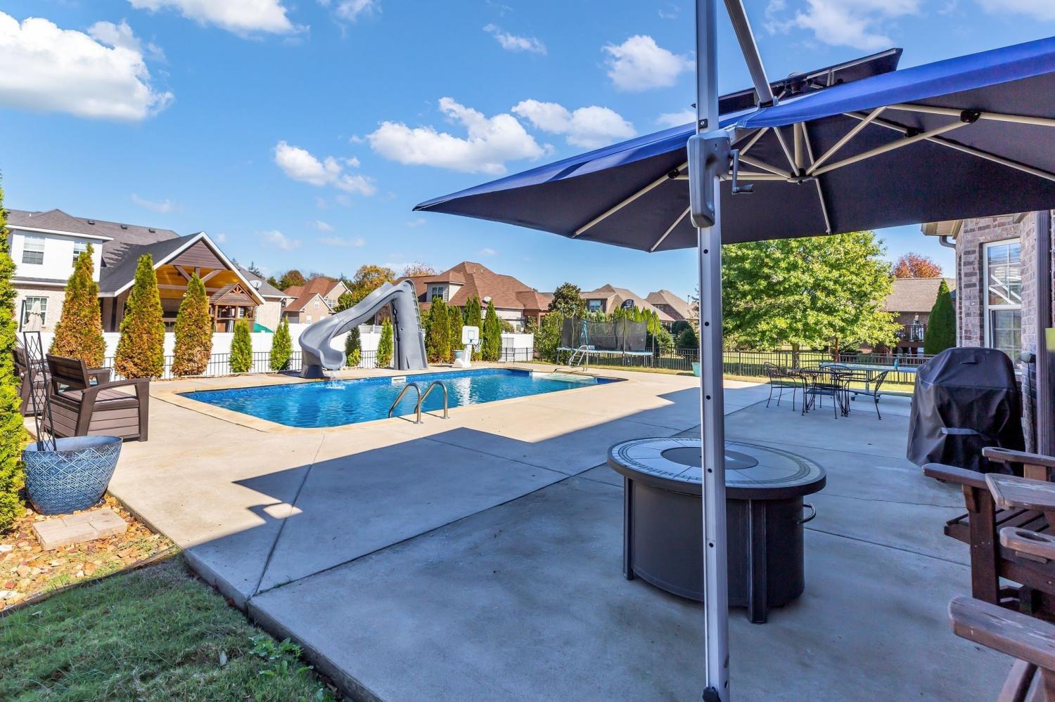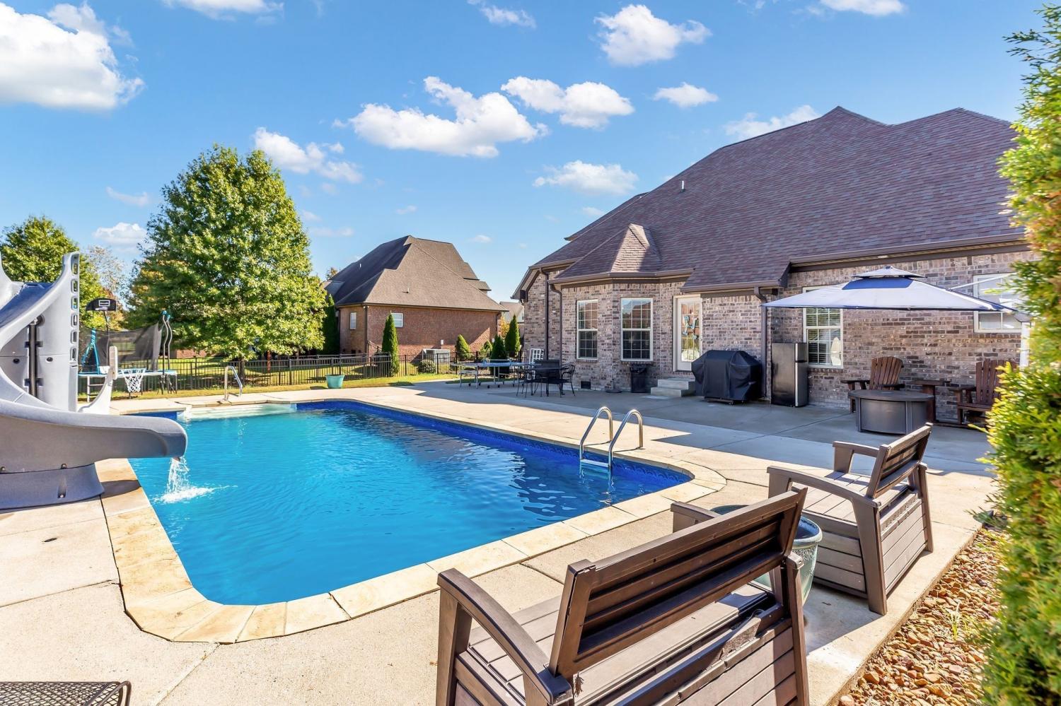 Beautiful all brick home! Inground POOL! 4 bedroom, 3 bath in the desirable Triple Crown Farms. The main-level primary suite is spacious for relaxation. Beautiful hardwood floors. The kitchen is designed for both function and style with quartz countertops, huge island, tile backsplash, and an adjoining gathering room with a cozy fireplace. Upstairs, a media room Home boast all of the right amenities with 2 bedrooms downstairs and 2 bedrooms upstairs. Wonderful outdoor space for entertaining! Salt water heated pool with slide. No city taxes. New HVAC November 12th, 2025. "Lender Credit" of 1% to go towards a lower payment, lower rate, or lower closing costs when using Preferred Lender.