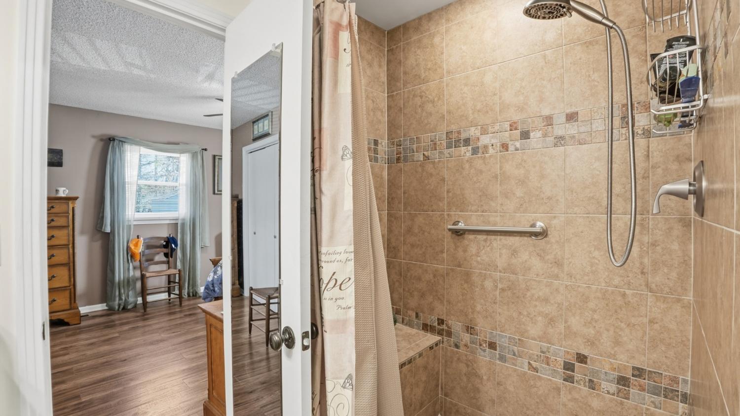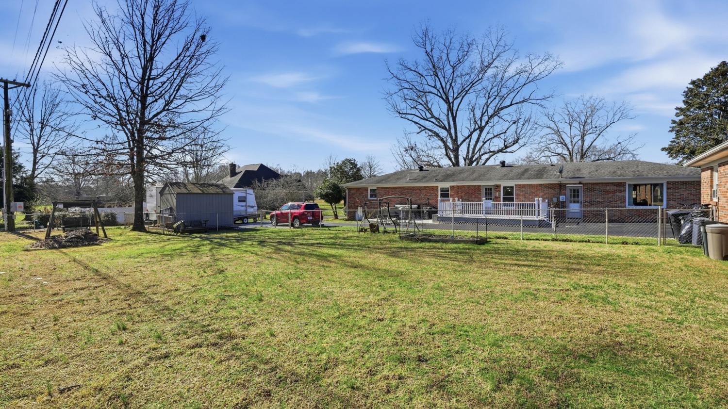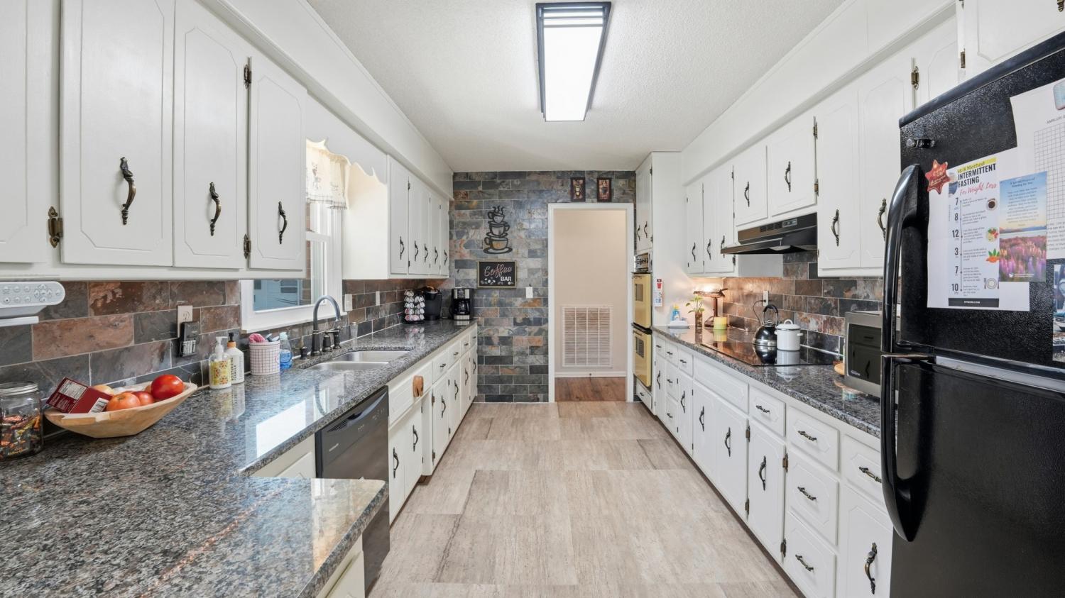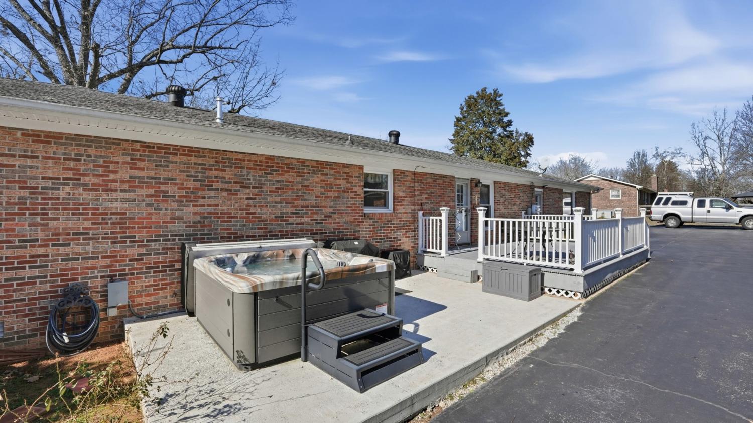 UNDER CONTRACT with a 72 hour right of refusal due to a home sale contingency. — Nestled in the original section of the subdivision, this charming 3-bedroom, 3-bath ranch style brick home offers a rare blend of character, comfort, and modern updates. Set on a generously sized lot surrounded by mature trees, including one of the oldest-growth oaks in the neighborhood, this property delivers both beauty and privacy in a serene, peaceful setting. Inside, you'll find a thoughtful layout perfect for both everyday living and entertaining. Each bedroom features its own bath, offering ultimate convenience and privacy for family and guests. The spacious den is ideal for gathering and flows seamlessly into the kitchen and dining areas, with a centrally located restroom for added ease during get-togethers. Luxury plank flooring runs throughout the main living spaces, while the wet areas are finished with durable vinyl tile. The home has seen tasteful updates over the years, maintaining its original charm while adding the modern touches that make life easy. Step outside and enjoy your own private retreat: a composite porch lends to a patio with an 8-person hot tub that is perfect for unwinding under the stars. The backyard offers a fenced space to roam or garden, and the property includes a 30 Amp RV plug—ideal for storing your camper right at home. The detached garage is perfect for two vehicles and boasts an attached workshop that is cooled for those summer projects. Two outbuildings with electricity provide additional flexibility for hobbies, storage, or workshop use. The sellers have treasured the peaceful, safe feeling of the neighborhood, the spacious bedrooms, and the unbeatable location—just minutes from shopping, dining, and everything “town” has to offer. Don’t miss your chance to own this unique gem in a truly special setting.