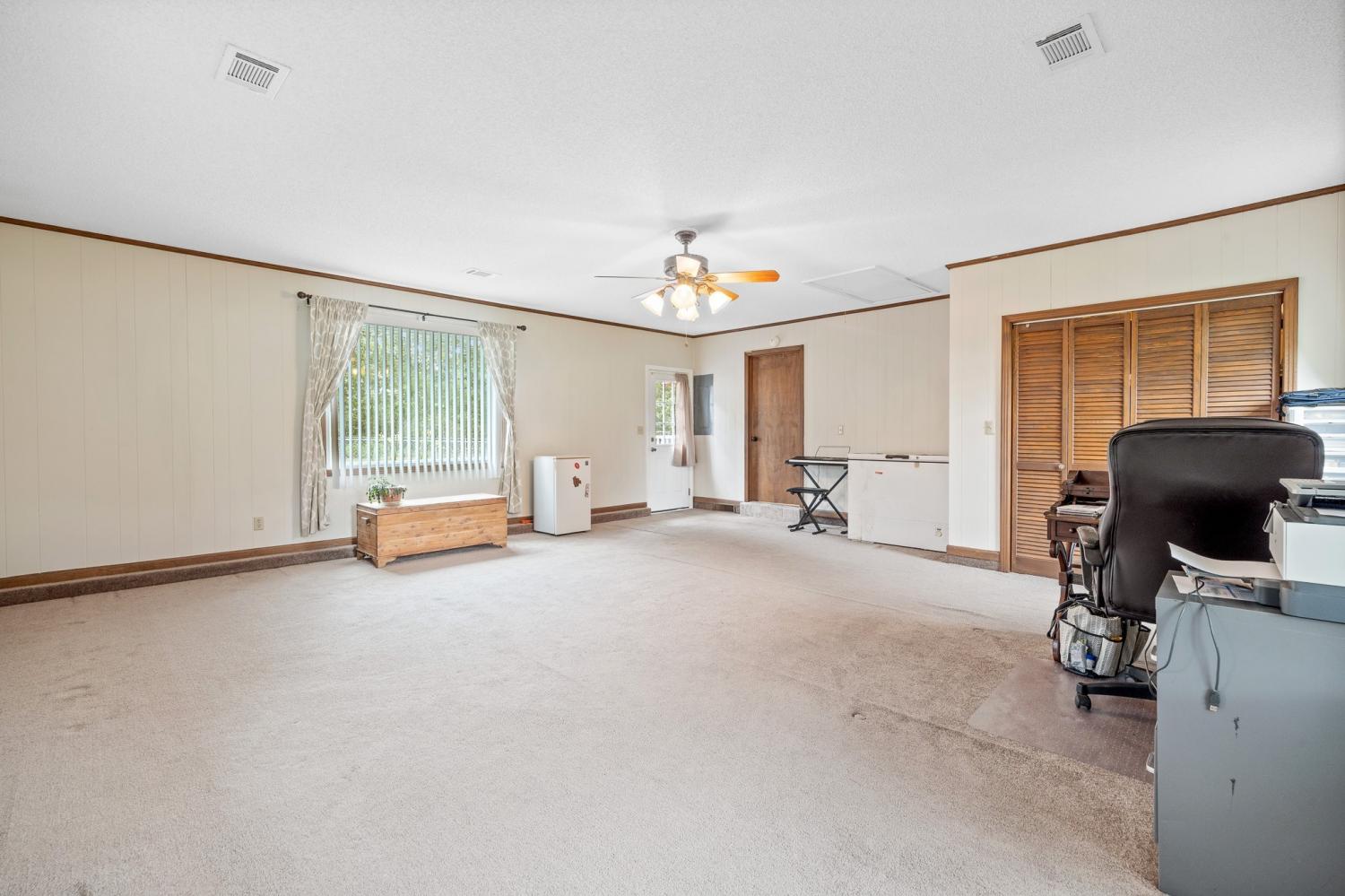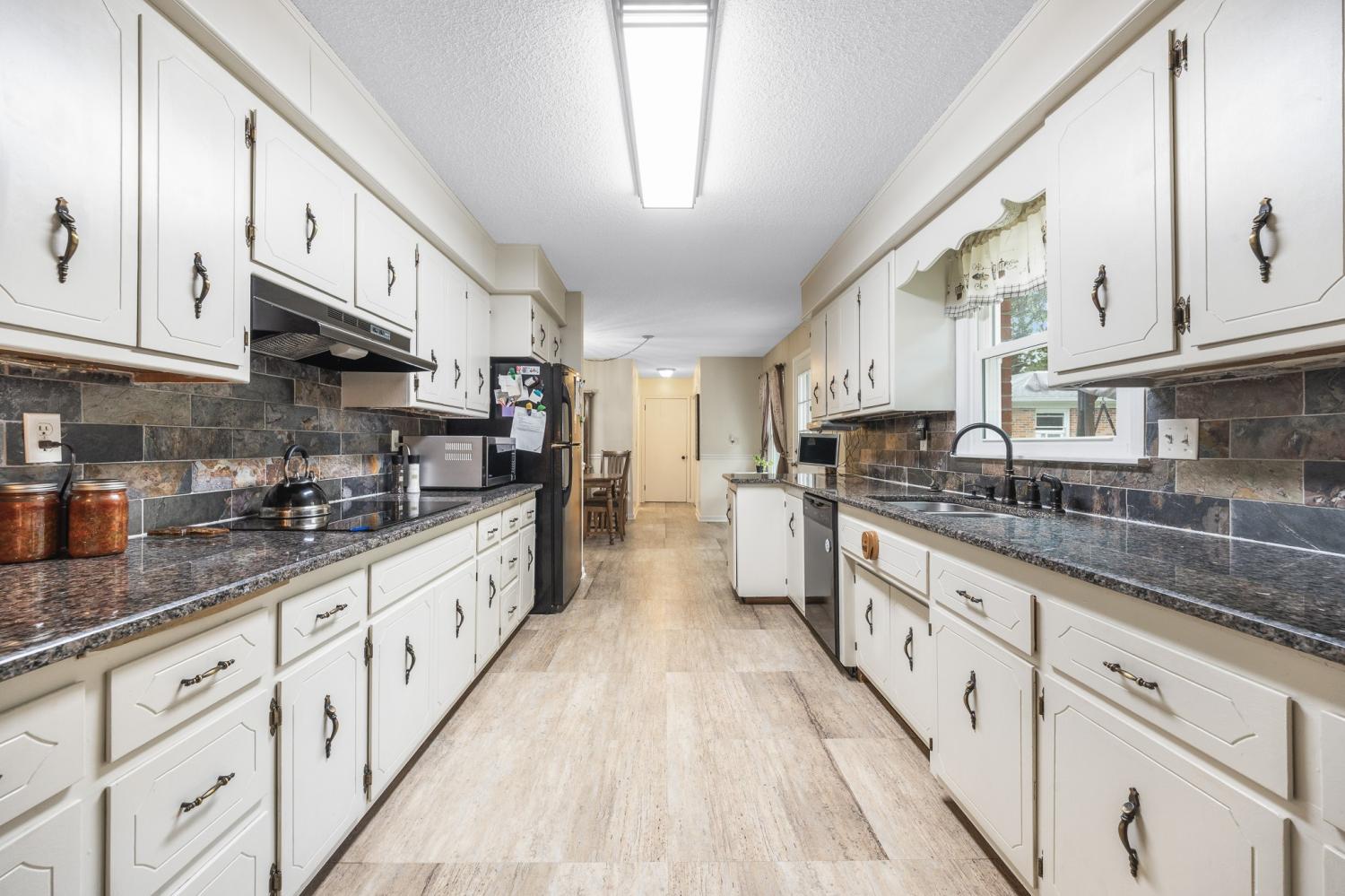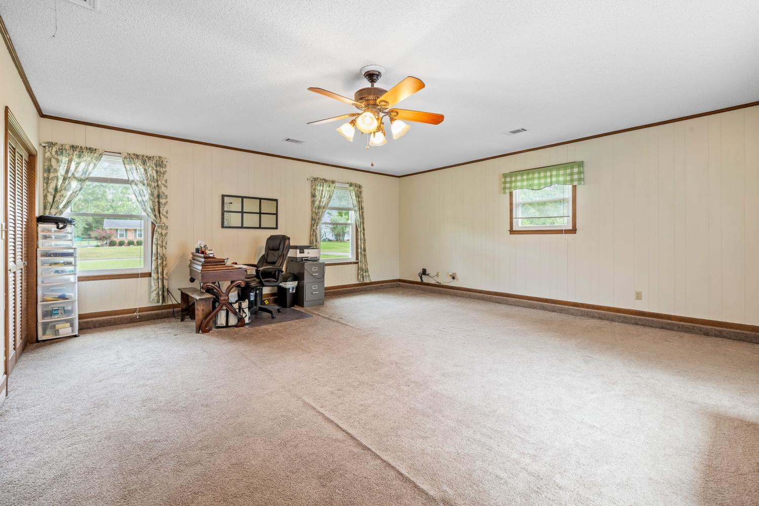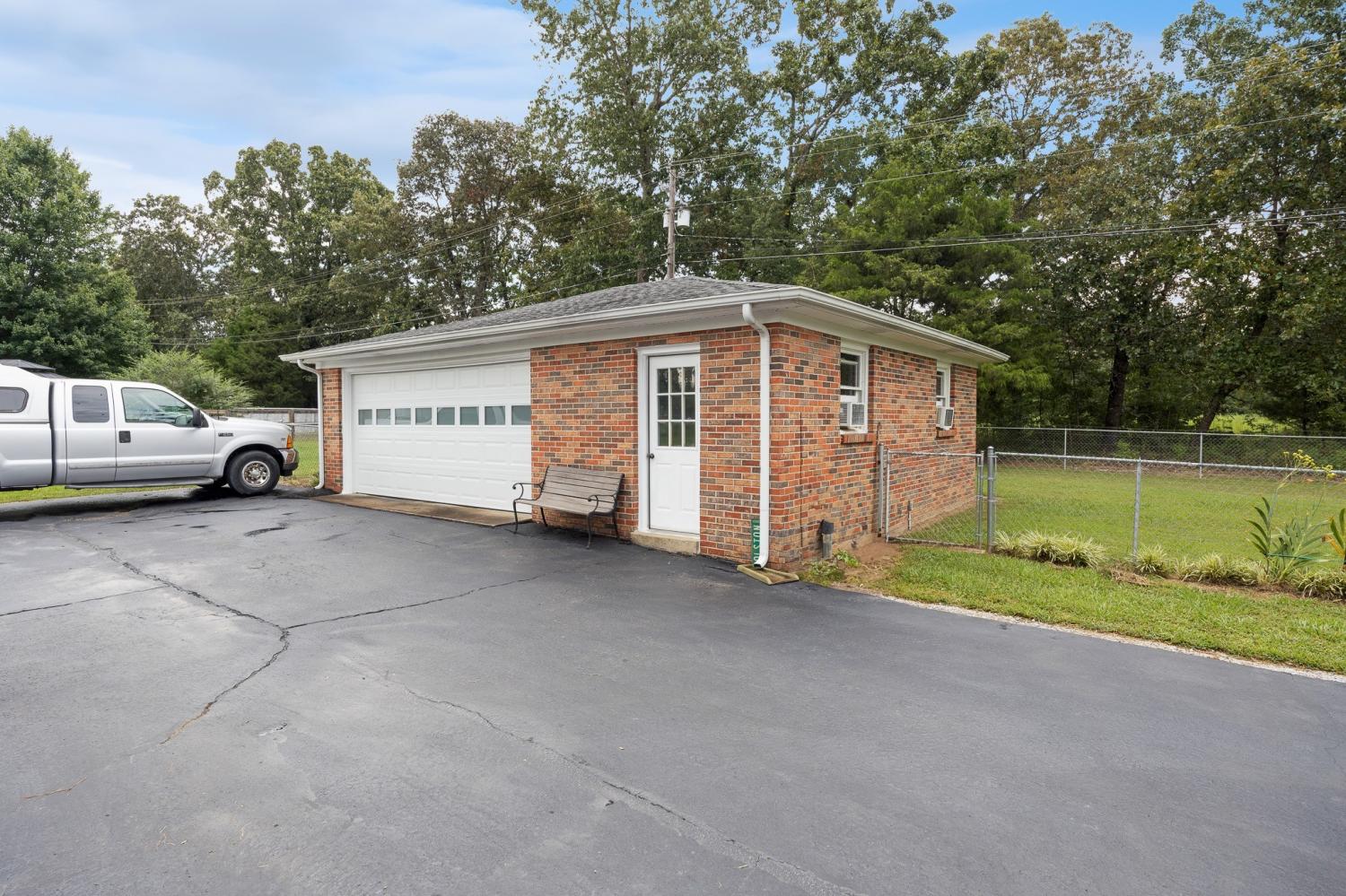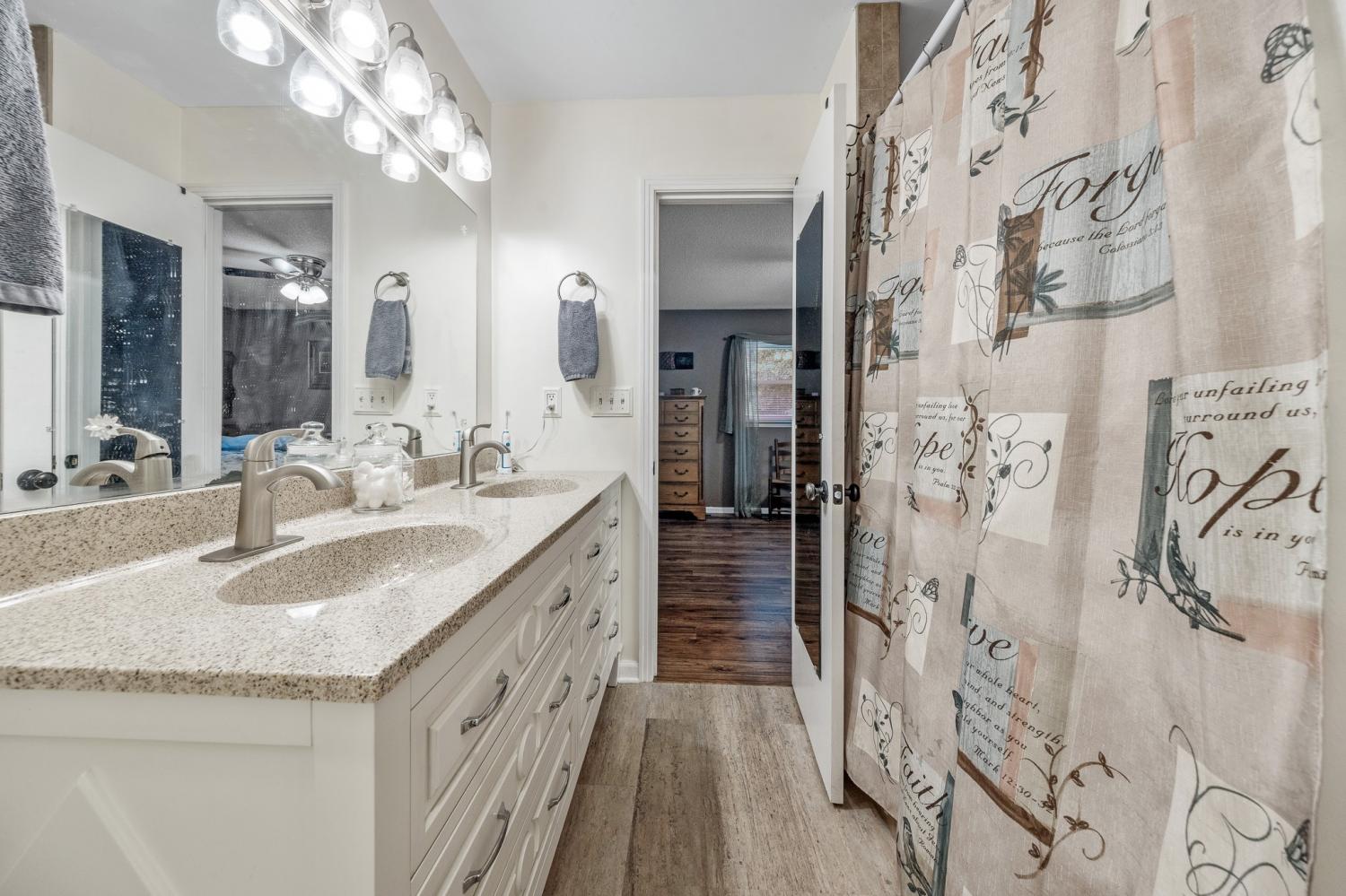 Nestled in the original section of the subdivision, this charming 3-bedroom, 3-bath ranch style brick home offers a rare blend of character, comfort, and modern updates. Set on a generously sized lot surrounded by mature trees, including one of the oldest-growth oaks in the neighborhood, this property delivers both beauty and privacy in a serene, peaceful setting. Inside, you'll find a thoughtful layout perfect for both everyday living and entertaining. Each bedroom features its own bath, offering ultimate convenience and privacy for family and guests. The spacious den is ideal for gathering and flows seamlessly into the kitchen and dining areas, with a centrally located restroom for added ease during get-togethers. Luxury plank flooring runs throughout the main living spaces, while the wet areas are finished with durable vinyl tile. The home has seen tasteful updates over the years, maintaining its original charm while adding the modern touches that make life easy. Step outside and enjoy your own private retreat: a composite porch lends to a patio with an 8-person hot tub that is perfect for unwinding under the stars. The backyard offers a fenced space to roam or garden, and the property includes a 30 Amp RV plug—ideal for storing your camper right at home. The detached garage is perfect for two vehicles and boasts an attached workshop that is cooled for those summer projects. Two outbuildings with electricity provide additional flexibility for hobbies, storage, or workshop use. The sellers have treasured the peaceful, safe feeling of the neighborhood, the spacious bedrooms, and the unbeatable location—just minutes from shopping, dining, and everything “town” has to offer. Don’t miss your chance to own this unique gem in a truly special setting.