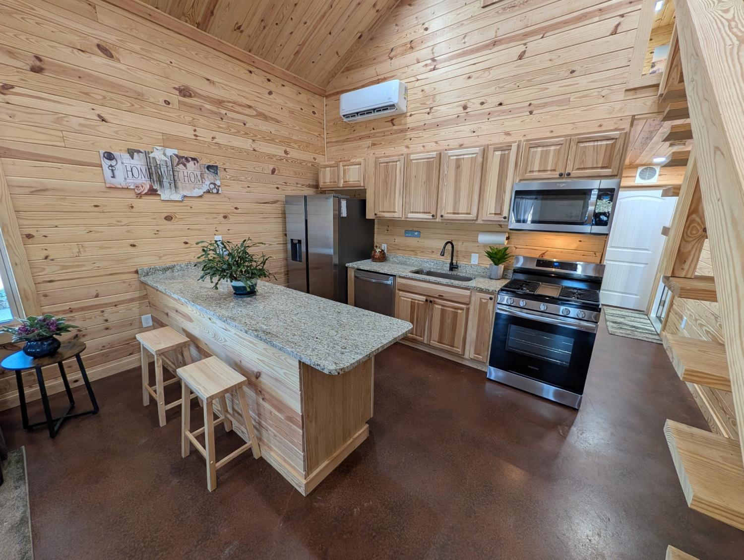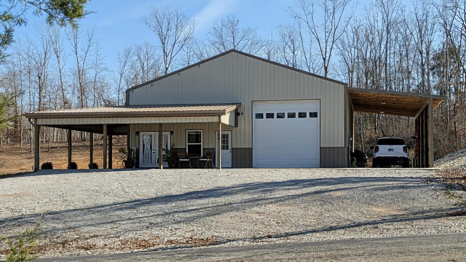 1Bedroom, 2 bath with loft Barndominium offering additional guest space on 1.32 acres just seconds from the Tennessee River, located outside the flood zone. Built in 2023, this 1,600 sq ft barndominium comes fully furnished and features granite countertops, stainless steel appliances, and high-speed internet. Finished and insulated garage/workshop with mini-split HVAC and natural gas backup heat. Well-lit attached lean-to provides covered parking and storage for boats, vehicles, or ATVs. Pad in place for future home, shop, or expansion. Quick access to a private boat ramp. Ideal for full-time living, weekend retreat, or investment.
