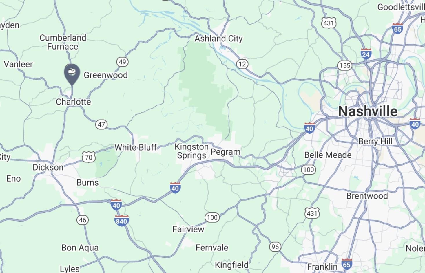From I-40 Exit 172, take TN-46 S toward Dickson/Charlotte. Continue approx. 10 miles through Charlotte; TN-46 becomes Hwy 48 N. Continue about 1 mile past downtown Charlotte. Home at 4326 Hwy 48 N will be on the right.