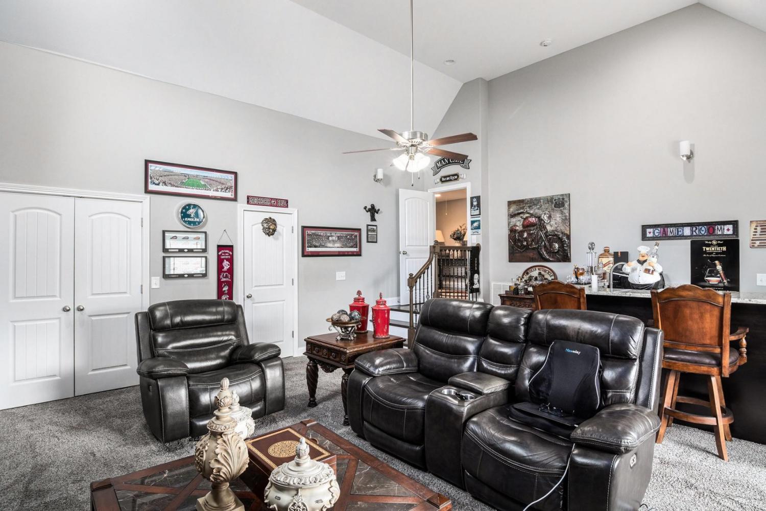 IMMACULATE "MINI-MANSION" WITH LUXURY UPGRADES & 3-CAR GARAGE – PREMIER CLARKSVILLE LOCATION! Welcome to 2976 Hartley Dr, a stunning 2018 custom-feel home that radiates "mini-mansion" elegance. Situated on a sprawling half-acre lot with a classic split-rail fenced backyard, this home offers 3 bedrooms, 2 full baths, and 2 half baths, showcasing immaculately maintained living space just minutes from I-24. Step through the grand foyer into a main living area defined by soaring raised ceilings, premium upgraded hardwood floors, custom light fixtures, and a cozy gas fireplace. The heart of the home is the chef’s kitchen, boasting granite slab countertops, a custom backsplash, double ovens, a breakfast nook, and premium gas appliances. Whether entertaining at the bar or in the formal dining room with its adjacent flex room, this floor plan flows perfectly for modern living. Retreat to the main-level luxury of the first-floor primary suite, featuring a spa-inspired ensuite with an oversized walk-in shower, Jacuzzi tub, dual granite vanities, and custom tile work. Convenience is key with a first-floor utility room that includes a built-in vanity and sink. Upstairs features a grand bonus room that rivals any luxury estate, complete with a fully plumbed wet bar, storage closet, and its own half bath—perfect for a media room or man cave. Comfort is ensured year-round with a gas tankless water heater and ceramic tile in all wet areas. The exterior is just as impressive as the interior, starting with upgraded landscaping, a three-car garage, and a custom concrete driveway and walkways. The sellers have invested heavily in creating an outdoor oasis, highlighted by a $15,000 expanded screened-in deck wired for TV and accented with café lighting. The backyard features custom sidewalks leading to a dedicated concrete pad for outdoor cooking. This home offers a rare combination of luxury, comfort, and immaculate condition in one of Clarksville's nicest neighborhoods.