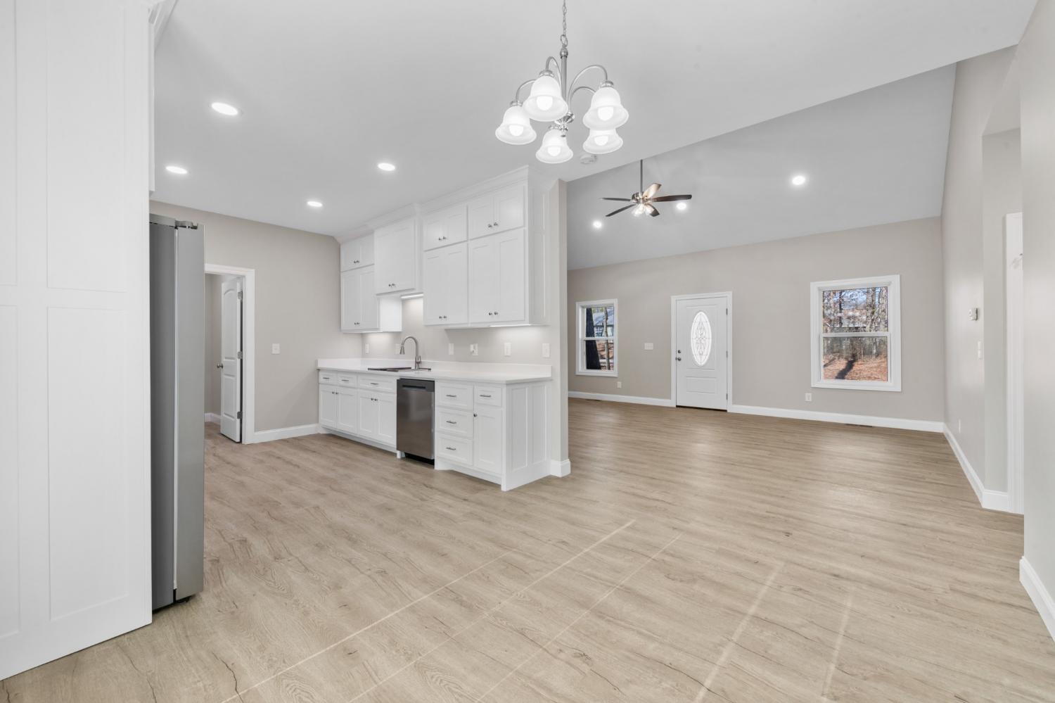 Discover the perfect blend of peaceful, private living and urban convenience in this brand-new, beautifully designed home. Nestled on a spacious 0.800 wooded acre lot, this property offers a serene natural setting while being just a short, 7-minute drive from the heart of downtown Lawrenceburg. This home has 3 comfortable bedrooms and 2 full bathrooms, encompassing a functional 1,480 sq. ft. layout featuring LVP flooring and granite countertops throughout. Benefit from the energy efficient value of new construction, and one year builder warranty. Additional 1.02 acre adjacent lot available.