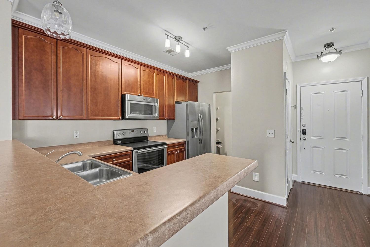 Spacious and light-filled second-story condo in the heart of Lenox Village. This 2-bedroom, 2-bath home features an open-concept living area, eat-in kitchen, and private balcony. Both bedrooms offer walk-in closets, with the primary suite including balcony access and an oversized soaking tub. Washer, dryer, and all kitchen appliances included. Enjoy easy access to walking trails, parks, restaurants, and shopping.