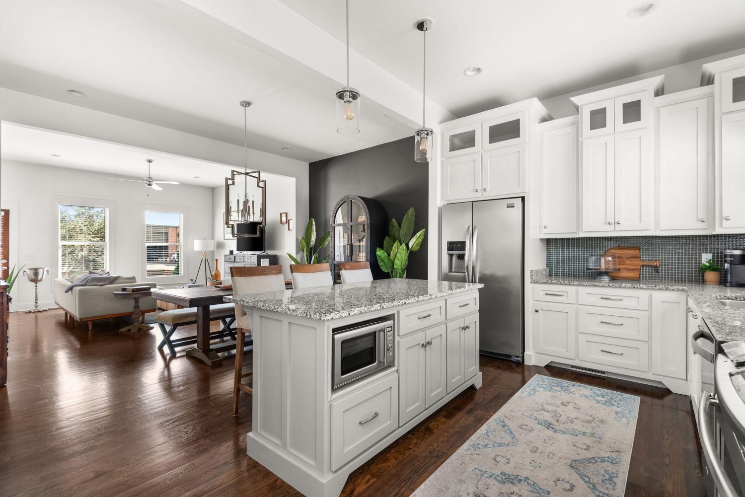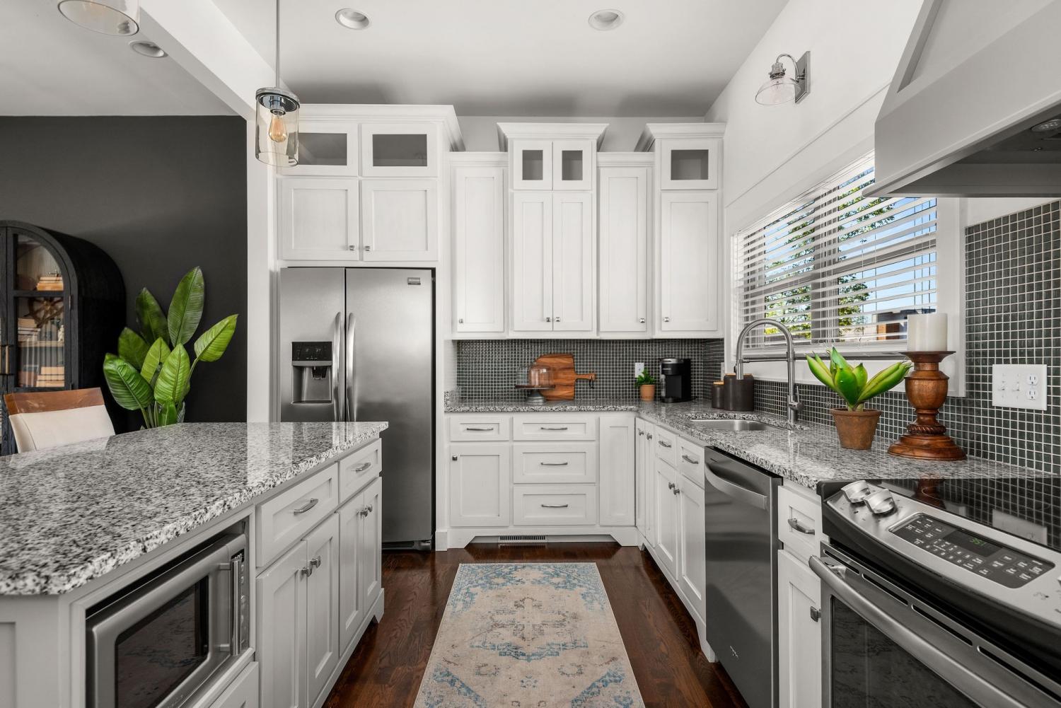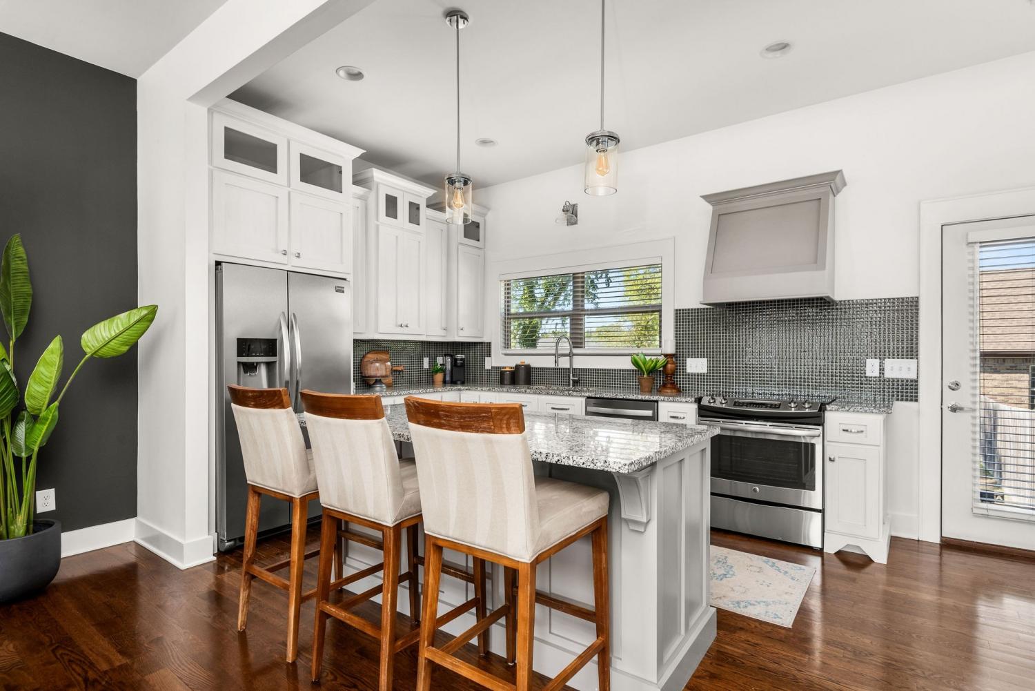 Just steps from Germantown's restaurants, retail, parks and the Neuhoff district, this all brick, turnkey home features a 2 car garage, fully-fenced front and back yards, Downtown views and no HOA all at a rare price point for this elite location. The 1st floor, with spacious living and dining spaces, makes for both an incredible hosting space and a quiet retreat for cozy nights in. The kitchen features a deep pantry, new appliances, mudroom and its green glass backsplash carries a story as rich as its color. Made from reclaimed glass once used in Germantown’s historic German breweries, which flourished in the 1800’s, this backsplash ties the home directly to the neighborhood’s history. The 2nd floor features two guest-rooms. Each has its own walk-in closet and full bath, providing maximum privacy and great rental income potential. The 3rd floor presents the magnificent primary suite, equipped with a wet bar, balcony, vaulted ceiling, 2 closets and unobstructed downtown views. The home’s front and back yards are HUGE by Germantown standards w/ fresh landscaping and space for pets and play. A 2 car garage provides safe, secure parking and storage. Preferred lender, Ben Zoeller with Cornerstone First Mortgage, offering 1% toward buyer closing costs if buyer uses him (Buyer can use their own lender if preferred).