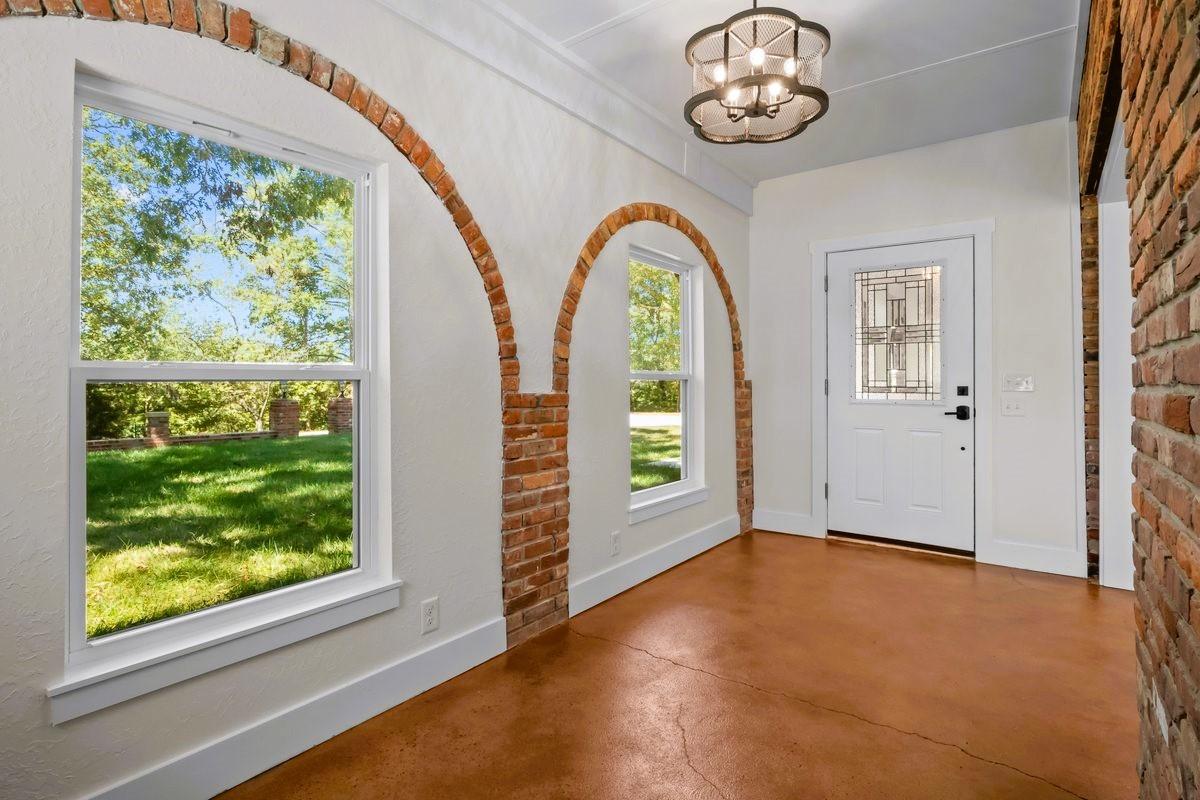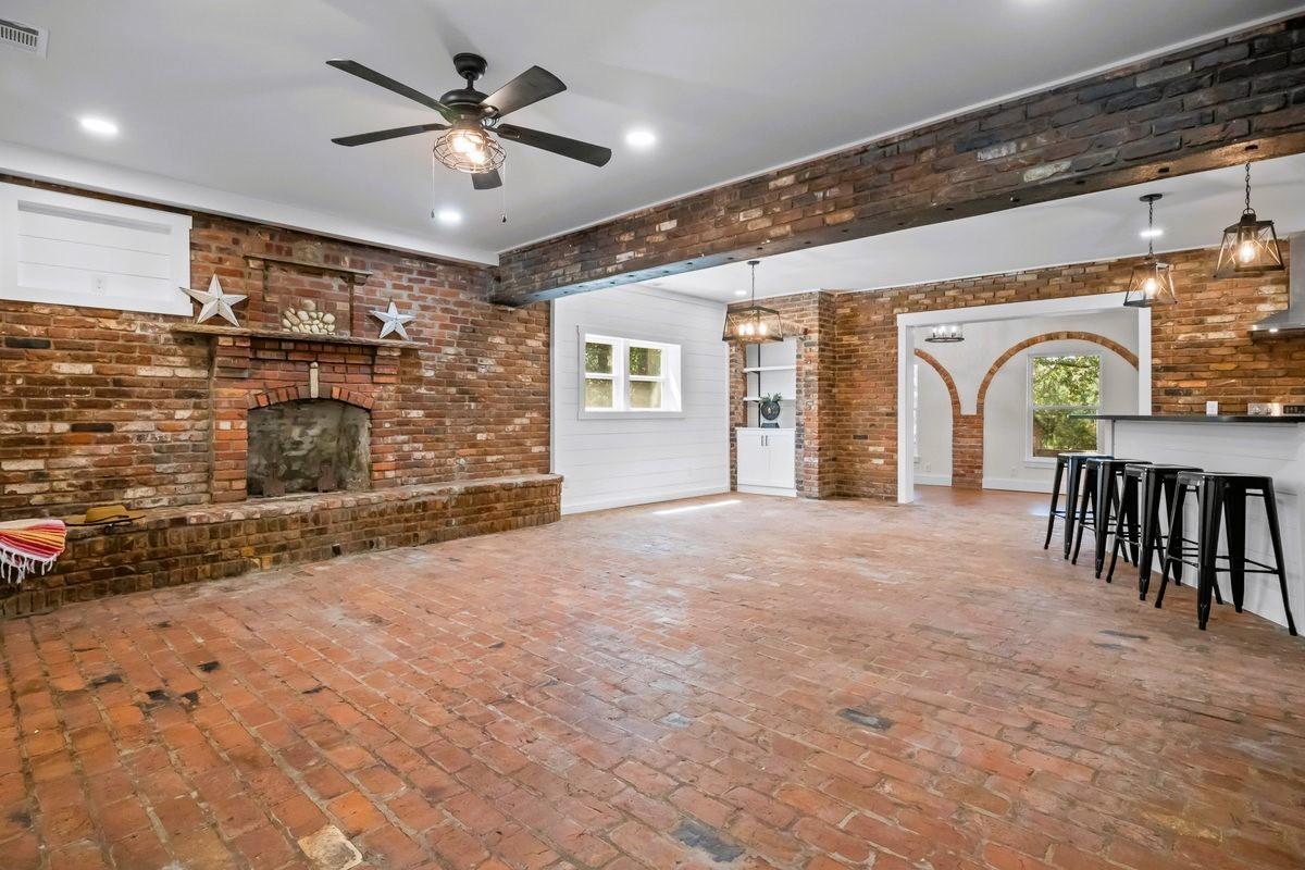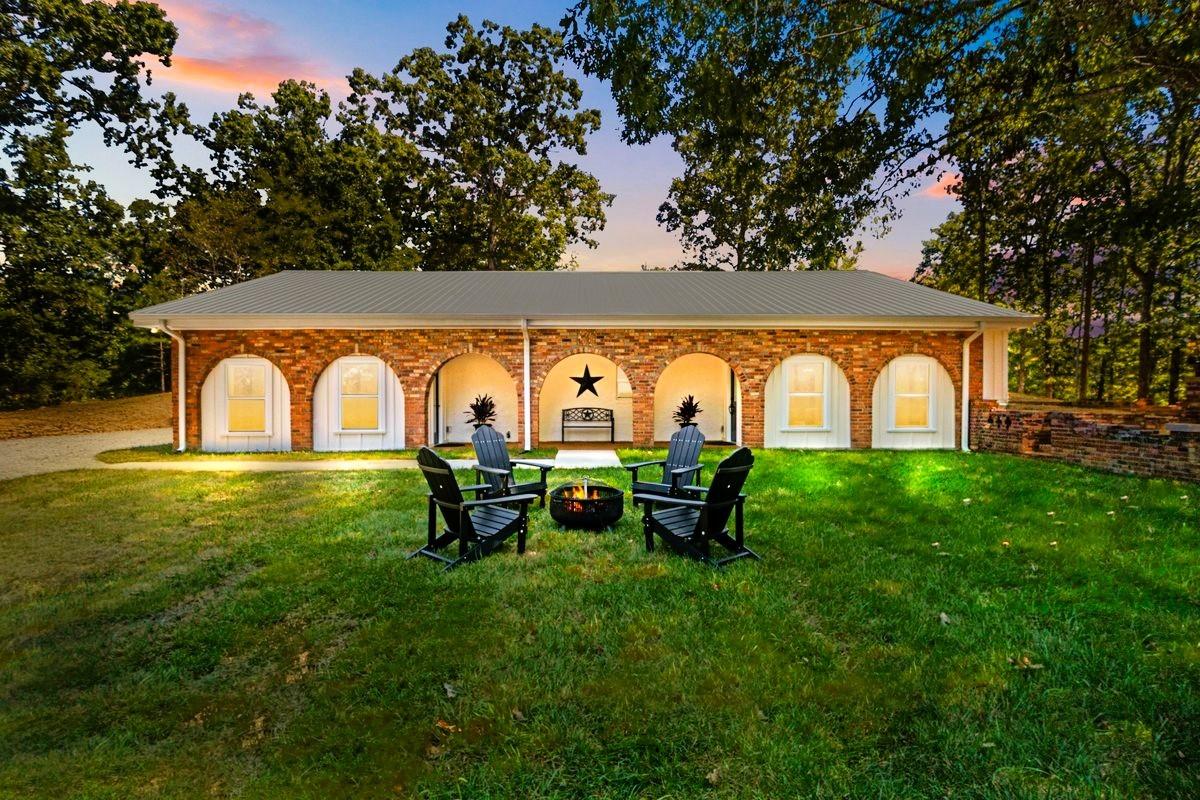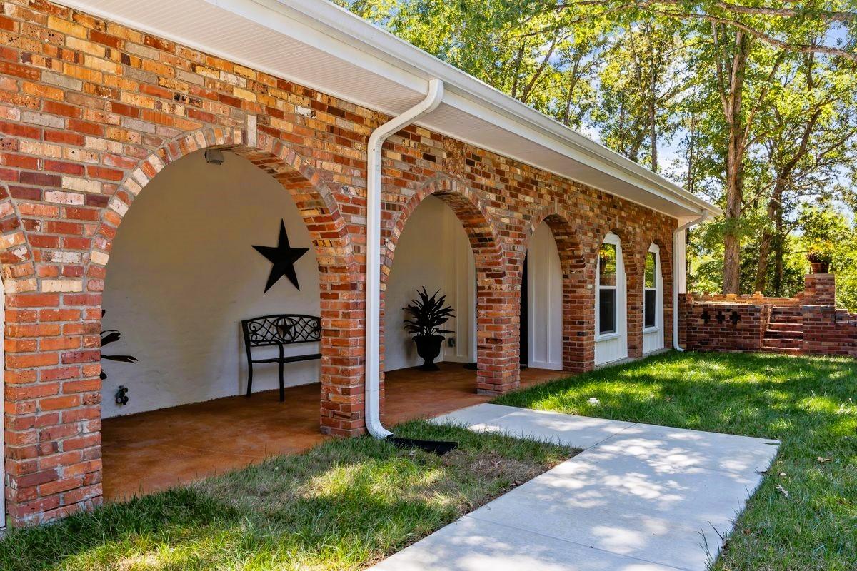 Escape to your own private oasis in the country. This exquisite, fully renovated Spanish-style retreat is nestled on a secluded, wooded lot, offering unparalleled tranquility and privacy. The home masterfully blends authentic, old-world character with modern luxury, featuring original exposed brick details that add warmth and a touch of history. Step inside through elegant arched openings to discover stunning, sun-drenched brick floors that flow seamlessly throughout the living spaces. The heart of the home is an inviting living area centered around a charming, wood-burning fireplace, perfect for cozy evenings. The seamless indoor-outdoor living is enhanced by a serene, grassy courtyard, an idyllic space for gathering or quiet contemplation. Every inch of this captivating home has been meticulously updated from the ground up, offering a truly move-in-ready experience without compromising its unique, enchanting character. Spectrum fiber optic high speed internet.