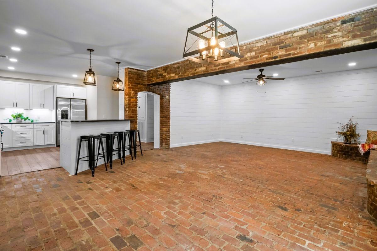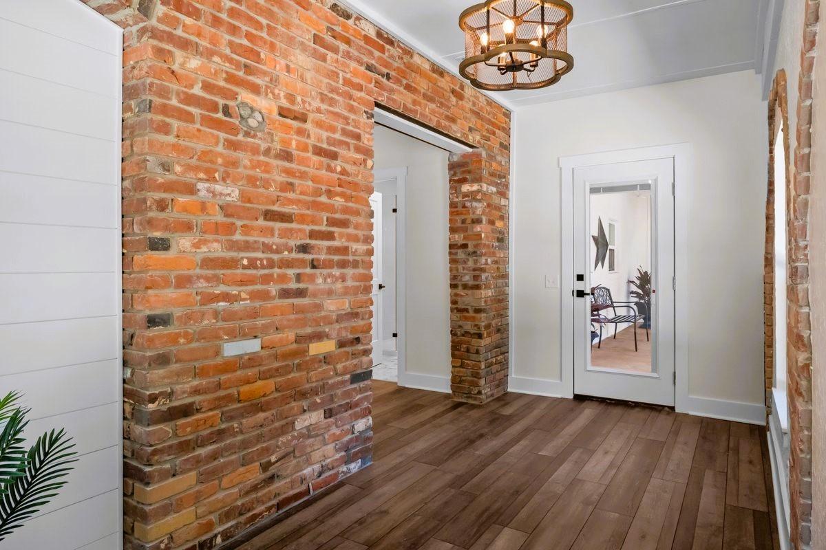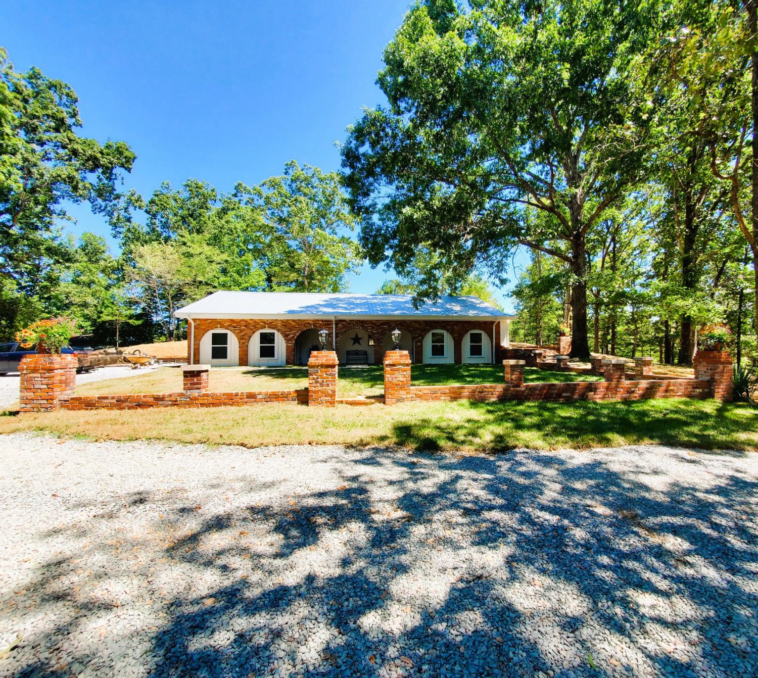 Escape to your own private oasis in the country. This exquisite, fully renovated Spanish-style retreat is nestled on a secluded, wooded lot, offering unparalleled tranquility and privacy. The home masterfully blends authentic, old-world character with modern luxury, featuring original exposed brick details that add warmth and a touch of history. Step inside through elegant arched openings to discover stunning, sun-drenched brick floors that flow seamlessly throughout the living spaces. The heart of the home is an inviting living area centered around a charming, wood-burning fireplace, perfect for cozy evenings. The seamless indoor-outdoor living is enhanced by a serene, grassy courtyard, an idyllic space for gathering or quiet contemplation. Every inch of this captivating home has been meticulously updated from the ground up, offering a truly move-in-ready experience without compromising its unique, enchanting character. Spectrum fiber optic high speed internet.