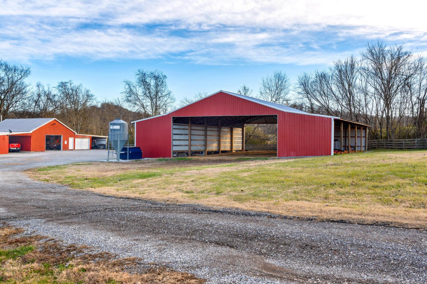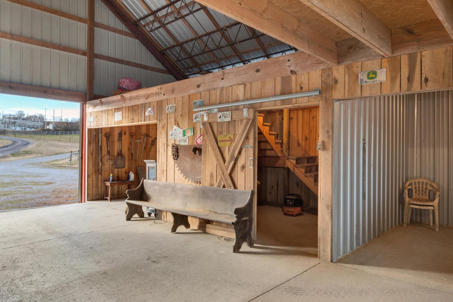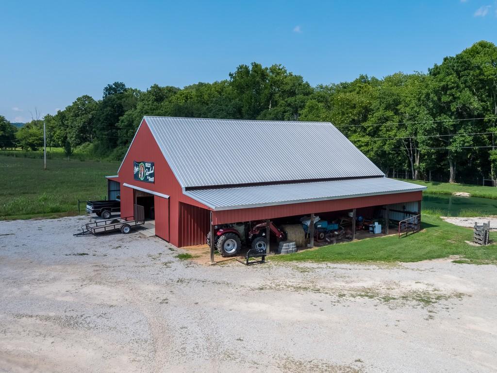 Purpose-built, turnkey equestrian property set well off the road for privacy, this 24.8-acre Santa Fe farm offers a rare combination of durability, functionality, and classic Middle Tennessee beauty. Extensive clearing, grading, and site work created predominantly flat, fully usable pastureland—an increasingly scarce feature in the area. Conveniently located near Leiper’s Fork, Columbia, and Spring Hill, the property balances privacy with accessibility. Designed for serious equestrian and livestock use, the property features a steel-framed horse barn constructed for long-term performance with metal roofing and premium materials throughout. Six fenced pastures with water to all, quality footing, a year-round stream through the pasture area, and a pond with fountain positioned just behind the barn create a complete, ready-to-use setup that would be cost-prohibitive to replicate today. The professional barn includes five stalls, tack room, feed area, grooming stalls, and expansive walk-through hay storage. An insulated, powered shop and a newer hay barn—both with full-length sheds—offer abundant covered space, with the hay barn providing potential for a small indoor arena, expanded barn use, or flexible storage. The all-brick, single-level home features new flooring throughout, a spacious great room, dedicated office, mudroom, and a private primary suite. Two additional bedrooms share a Jack-and-Jill bath, with a half bath off the foyer. Full-length covered front and rear porches provide daily sunset views, open pasture outlooks, and seamless indoor-outdoor living. Premium standing-seam metal roofing, spray foam insulation and reinforced hurricane strapping. Private, well-equipped, and thoughtfully built, this property delivers authentic Tennessee farm living for those who value land that truly works. Greenbelt Tax benefit.