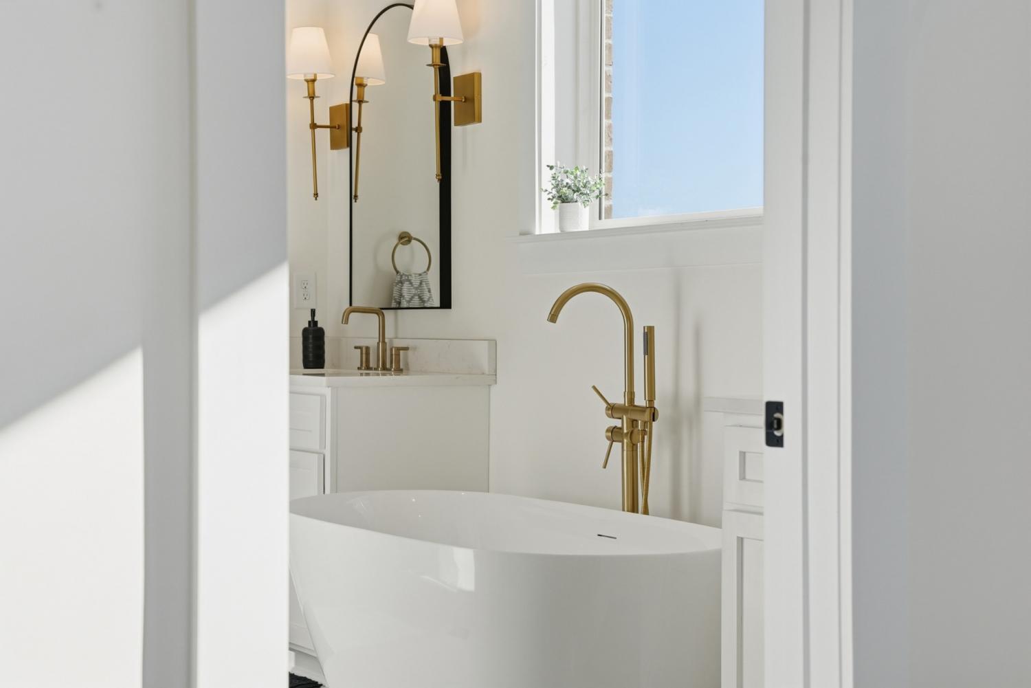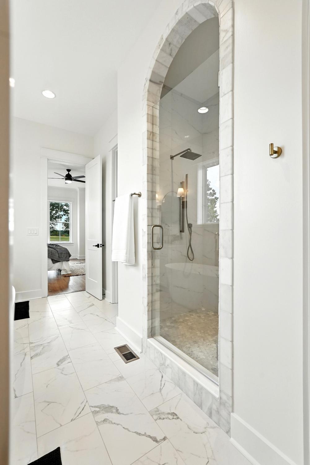 IF EVER YOU WANTED IT ALL~~~THIS HOME HAS IT! New Construction in a GATED SUBDIVISION backing up to Henslee Park~~~ miles of walking trails, splash pad and all the sights and sounds of nature within walking distance of downtown! This home feels more spacious because the park functions like an extension of the yard, green space without upkeep * this home has a timeless and classic all brick exterior, brick pillars at driveway entrance and winding aggregate driveway traced by wrought iron fencing * a CHEF'S KITCHEN with 48" commercial GAS stove top and DOUBLE OVENS, custom hood, pot filler, quartz counter tops, custom cabinets, professional grade Kitchen Aid Dishwasher, Kitchen Aid DRAWER MICROWAVE built in, large island, tile straight herringbone pattern backsplash, glass front cabinet doors and a butler's pantry with shelving and cabinet storage * joining the chef's kitchen is a DINING ROOM with tall COFFERED CEILINGS and beautiful recessed panel wainscoting* oversized entry ways into dining allow for easy access and flow when entertaining, PRIVATE OFFICE with glass pane doors * OPEN FLOOR PLAN LIVING SPACE with LEATHERED GRANITE FIREPLACE SURROUND * the PRIMARY SUITE has a SPA INSPIRED BATHROOM with gold and black hardware, SCONCE LIGHTING, double vanitites, free standing tub and an arched shower with marble entry tile and ceramic tile interior, seamless glass door and a rainfall shower head, private toilet closet and LARGE WALK-IN CLOSET ~wood shelving * solid stair newel posts, plant ledge window sills, CUSTOM QUARTZ COUNTER TOP IN 1/2 BATH WITH CUSTOM SHAPED BACKSPLASH~TANKLESS WATER HEATER~~~EVERYTHING YOU NEED ON THE GROUND LEVEL but so much FLEX SPACE UPSTAIRS AND DOWNSTAIRS * OVER 1110 SQ FT OF STORAGE/STORM SHELTER SPACE