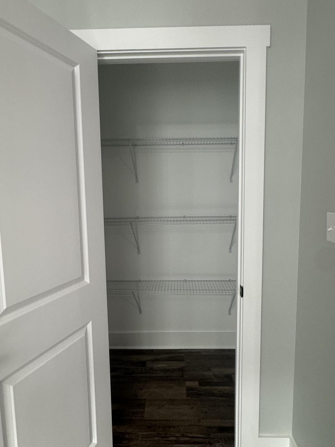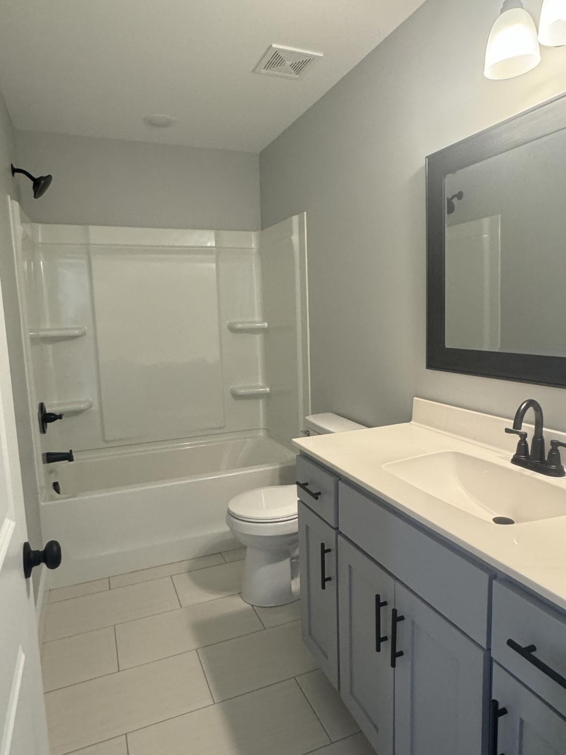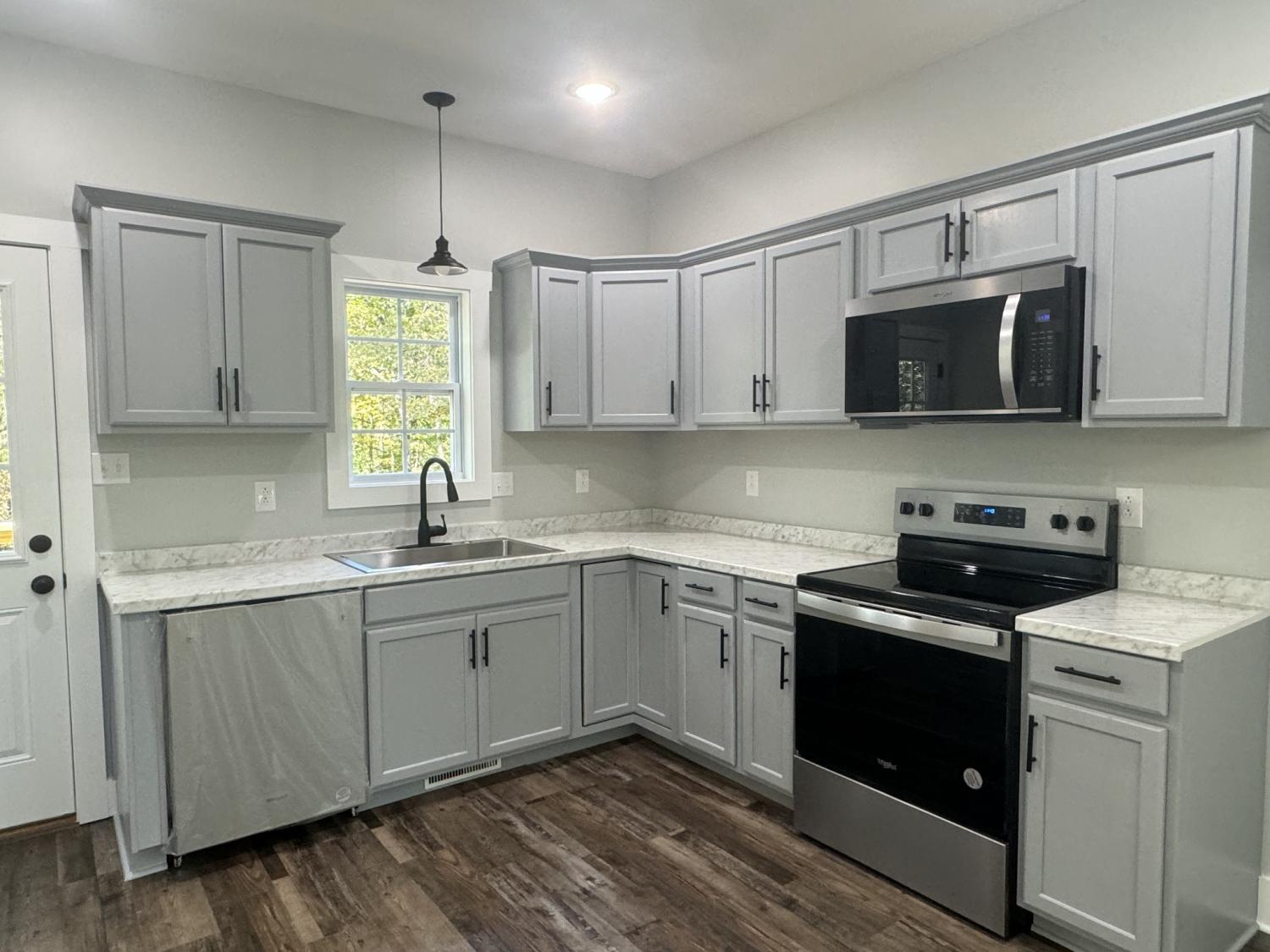 Embrace versatility in this 4-bedroom, 2.5-bath home. With one bedroom on the main level offers the perfect space for a home office or guest room, while the upper-level houses three bedrooms, including the spacious primary suite. This thoughtful layout balances privacy and functionality, catering to all your needs. Take a look at the heart of this home where the combination kitchen, living room, and dining room form an expansive, open concept space and spacious pantry, was perfectly designed to maximize storage and accessibility. The seamless transition between luxury vinyl plank (LVP) flooring and elegant tile creates a visually stunning effect and offers durability in high-traffic areas. The backyard, lined with trees, offers a serene and private outdoor space.