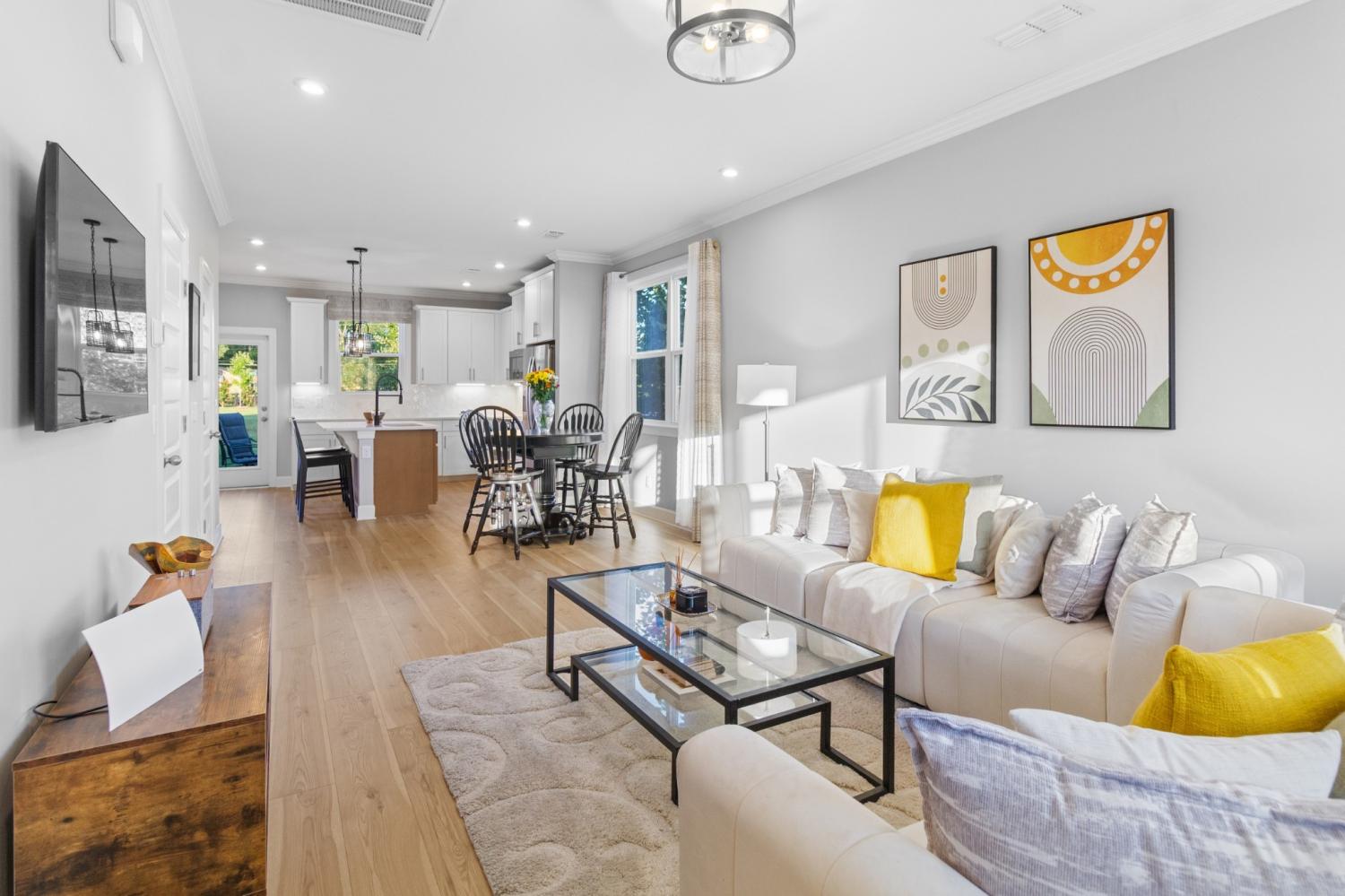 ONE OF A KIND HOME. $10,000 in closing costs and a 1-year home warranty with acceptable offer. This stunning former model home in New Hope Village is in a class by itself. Nestled in a boutique community of just 42 homes, this end unit sits on the best lot in the neighborhood with a private patio and a large, level green space right out back. Thoughtfully designed with over $42,484 in upgrades, this residence combines style, function, and comfort in every detail. Inside, you’ll find an open-concept great room, dining area, and upgraded kitchen filled with natural light from additional windows. The kitchen features quartz countertops, designer backsplash, upgraded cabinets, and a premium appliance package. Hardwood floors, iron railings, oak tread stairs, and designer lighting add a refined touch throughout. Both bedrooms are ensuite with spacious walk-in closets, and the primary suite offers a spa-like bath with frameless glass shower, dual vanities, and custom tile. Other highlights include a built-in office space, shiplap accent wall, valet bench, and a premium security system with multiple cameras. Energy Star certification ensures efficiency and low utility costs. Located less than 11 miles to Downtown Nashville, 5.5 miles to BNA, and only minutes to Percy Priest Lake, Mt. Juliet, shopping, dining, and greenways, the convenience is unmatched. 2.5 miles to the only Commuter Train Service to Downtown Nashville. With an acceptable offer, the seller is including $10,000 in closing costs and a 1-year home warranty—making this exceptional home an even greater value.