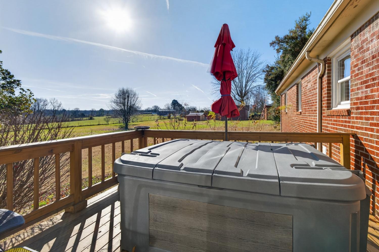 This beautifully maintained 3-bedroom, 2-bath home is truly in pristine condition and loaded with thoughtful upgrades throughout. Both bathrooms have been completely remodeled, while the updated kitchen features soft-close cabinets and drawers, a new gas stove, and new oven, making it both stylish and functional. Major improvements include new electrical and plumbing throughout, new flooring, a larger water line, an Asana whole-home water filtration system, and an encapsulated crawl space with dehumidifier for added peace of mind. Car port large enough for two vehicles next to separate storage and laundry room. Newly built back deck attached to existing sunroom that is perfect for a hot tub. The detached building offers an additional bonus room, perfect for a man cave, hobby space, or extra storage and a space to park motorcycles, lawnmower, etc and a steel storm shelter. Outdoors, enjoy extensive landscaping and a productive backyard oasis with peach, fig, apple, and pear trees plus blueberry bushes. Ideally positioned just over the state line, this home offers the perfect balance of country charm and convenience, with easy access to both Fayetteville and Huntsville.