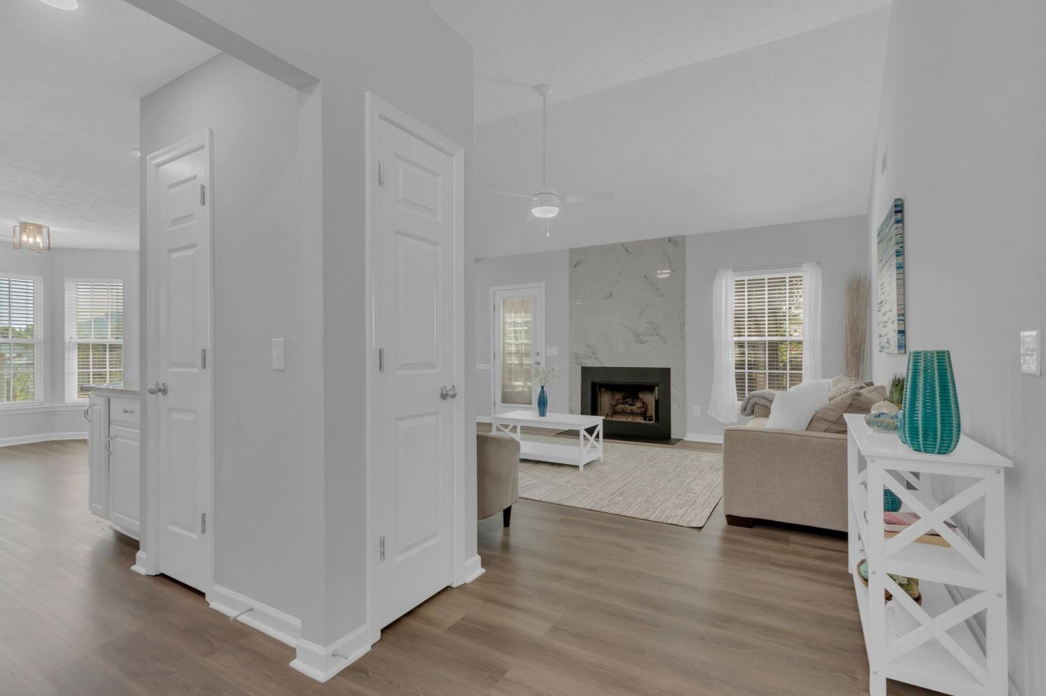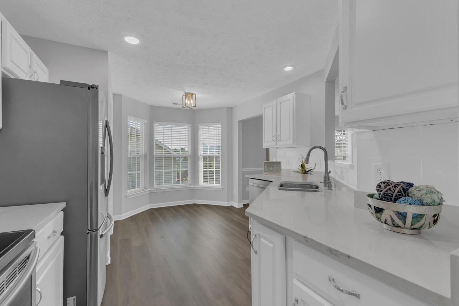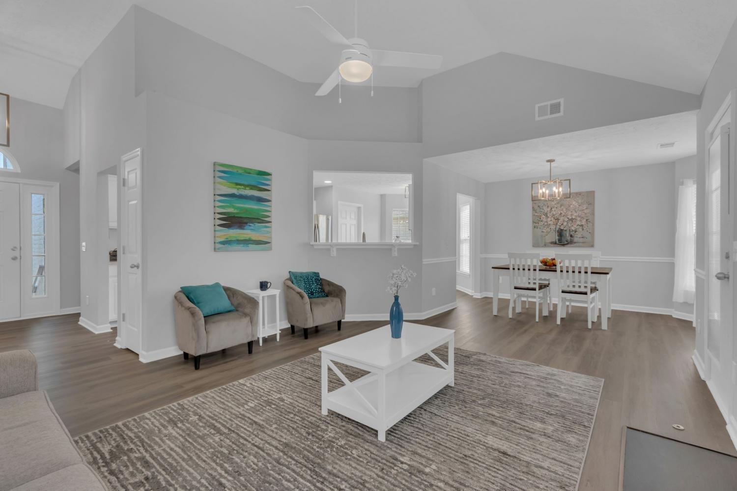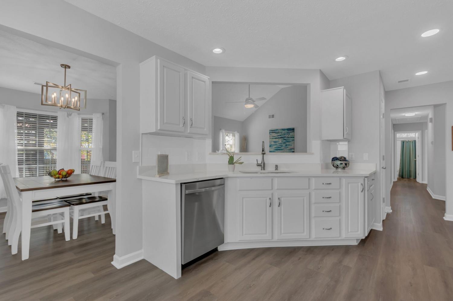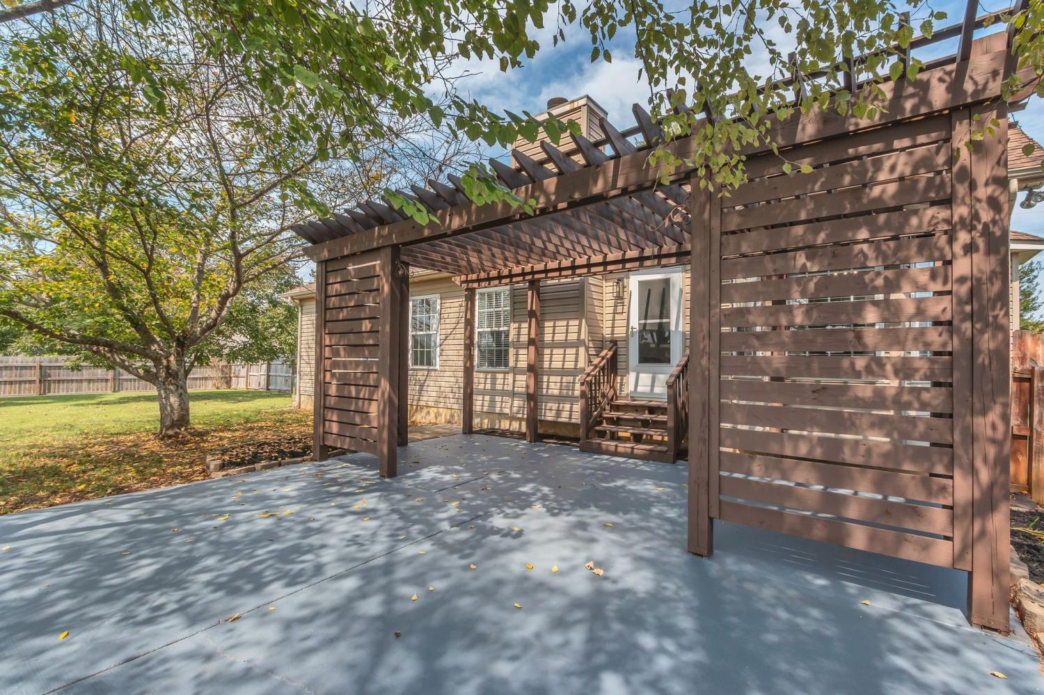 ~NEWLY RENOVATED & ALL MAIN LEVEL LIVING in highly sought after Williamson county schools~Renovations include; fresh paint, LED lighting, luxury vinyl plank flooring throughout, porcelain tiled primary shower with resurfaced vanity cabinet, white Calcutta quartz, and plumbing fixtures~Stainless steel appliances and a new vent hood highlight a Chef's kitchen with white resurfaced cabinets and Calcutta white quartz countertops, plumbing fixtures, and garbage disposal~Living room has high vaulted ceilings and a new porcelain tiled GAS FIREPLACE~Primary bedroom has tray ceiling, crown moulding, and a large walk-in closet~There is a huge bonus room over the garage with new carpet perfect for a play-room, rec room, theater room, or home gym~RESORT LIKE FULLY FENCED backyard with a massive back patio covered with a gorgeous and arching PERGOLA, mature trees, garden area, and SHED perfect for hosting, entertaining, grilling, and gathering~There is never a shortage of possibilities living less than an hour from the vibrant energy of Nashville & the innovation hub of Huntsville~This beautiful property offers the best of both worlds with easy access to I-65, Spring Hill shopping, restaurants, & the new June Lake development~