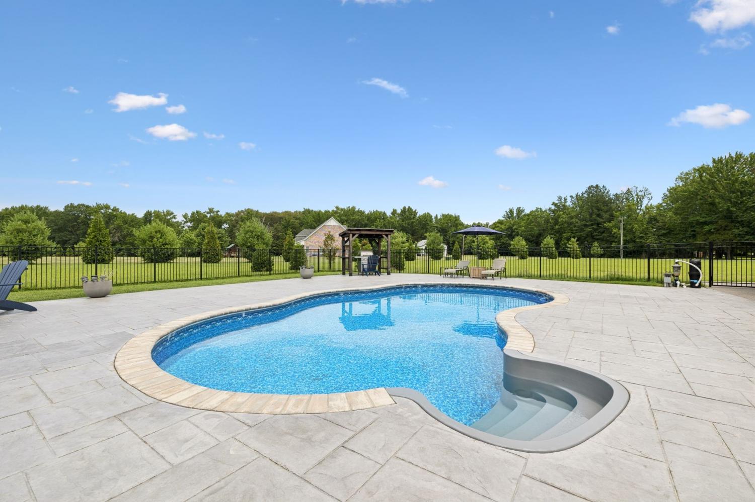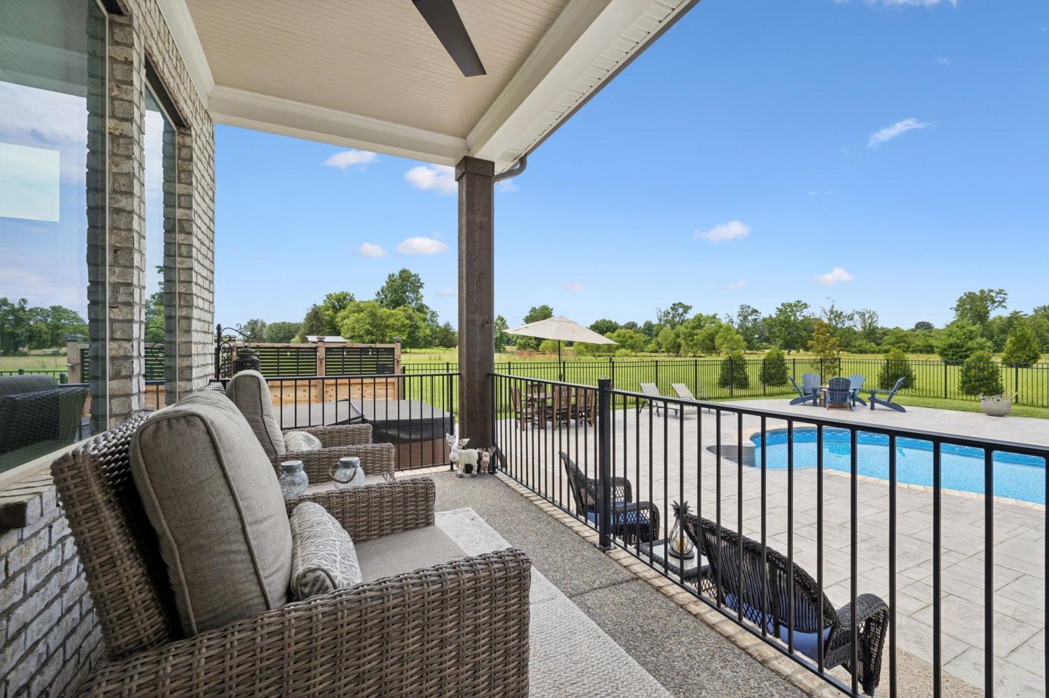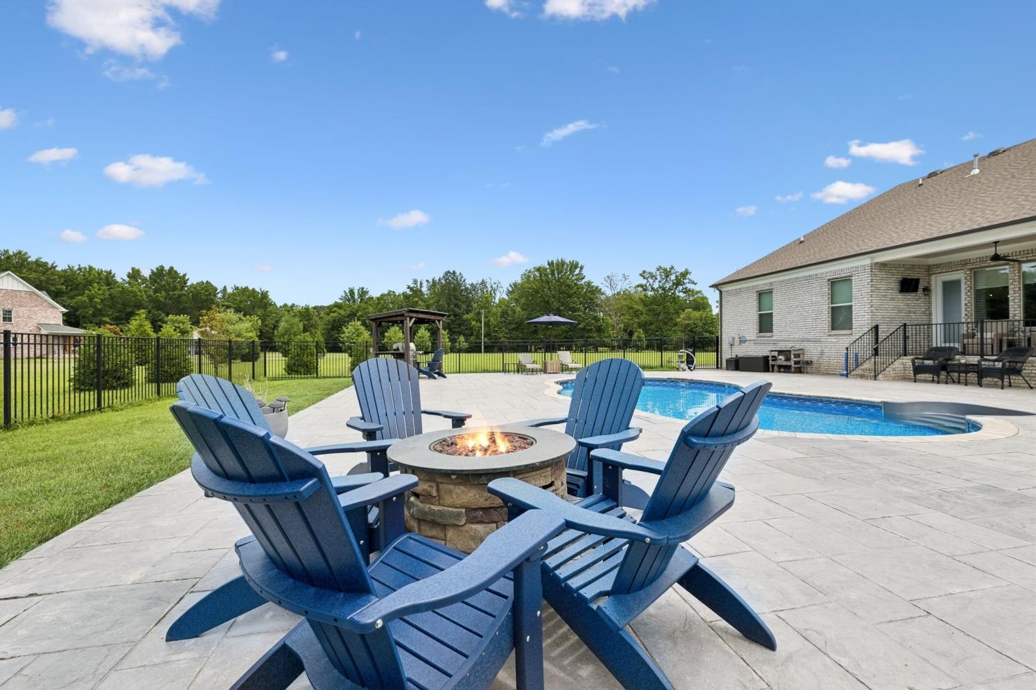 This 2-story brick home set on over 3 acres invites you to breathe deeply the moment you arrive. Step through the grand Iron Lion front door into a bright foyer with high ceilings that lift your gaze. Each space is composed with intention, leading to the heart of the home an unparalleled open concept center. It is the perfect space for everything from warm family gatherings to an entertainer's dream with laughter and shared toasts! Start the morning with an espresso from the coffee bar adjacent to the kitchen. The kitchen features a double oven, gas cooktop, stainless steel appliances with included refrigerator, a spacious island with a ceramic farmhouse sink. The primary main floor suite features a large walk-in dressing room style closet, double vanities, and an oversized tiled shower. The utility area which consists of the laundry, featuring a stackable washer and dryer, and a family foyer leading to the garages. Behind sliding barn doors is a serene study/home office with a coffered ceiling. An additional bedroom and full bath complete the main level living area. Upstairs offers a continuation of warmth and fun for family and friends. A large, but cozy media room is ready for gaming, music, movies, reading or other hobbies. Additionally, another vast recreation area has room enough for features such as a 9-foot pool table, ping pong table, pinball/arcade machine, or any number of other pursuits. Two more bedrooms and a full bath complete the second level living area. Outside, a symphony of serenity awaits: a covered porch overlooks a spa-like pool glistening under Tennessee skies, a hot tub with privacy fencing beckons and a firepit casts flickering shadows as stars rise above. The carriage garage provides storage for a boat, camper, etc. Country living w/ city conveniences minutes away.