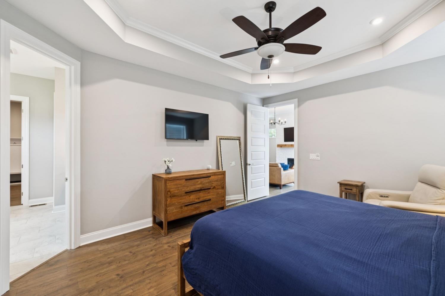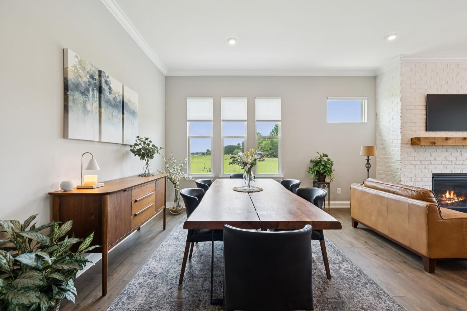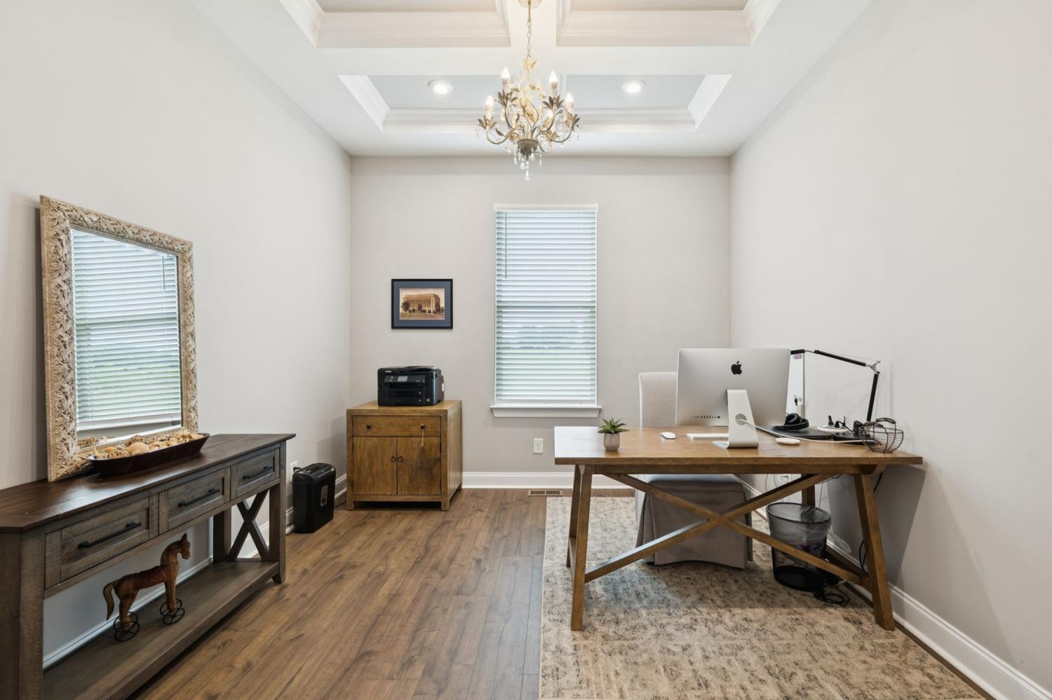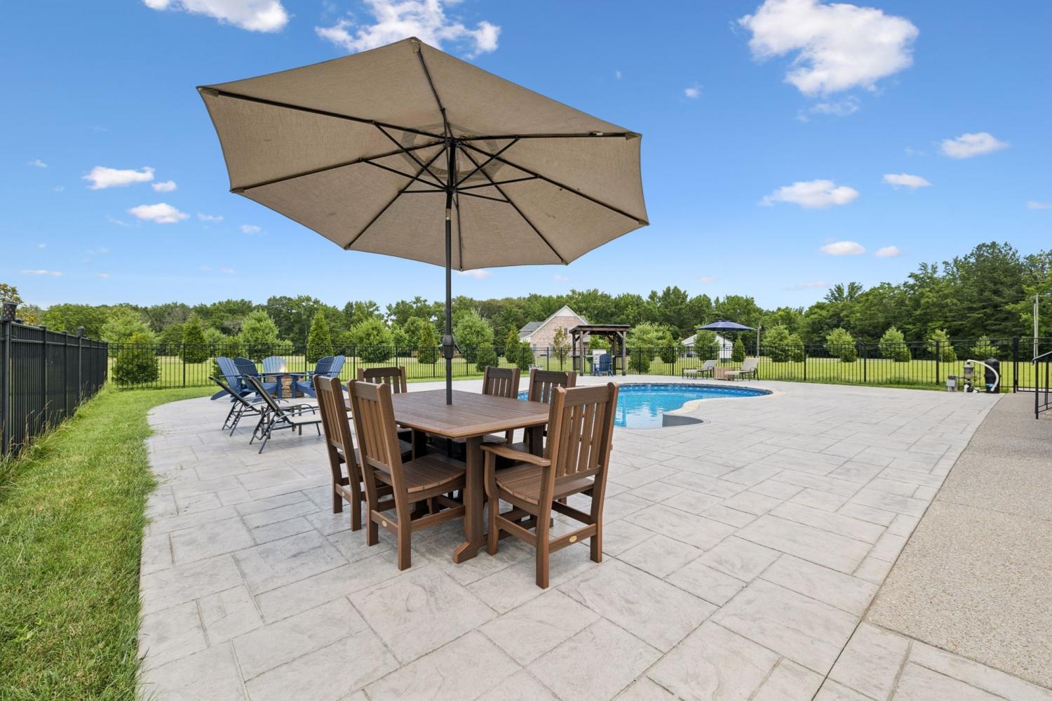 This 2-story brick home set on over 3 acres invites you to breathe deeply the moment you arrive. Step through the grand Iron Lion front door into a bright foyer with high ceilings that lift your gaze. Each space is composed with intention, leading to the heart of the home an unparalleled open concept center. It is the perfect space for everything from warm family gatherings to an entertainer's dream with laughter and shared toasts! Start the morning with an espresso from the coffee bar adjacent to the kitchen. The kitchen features a double oven, gas cooktop, stainless steel appliances with included refrigerator, a spacious island with a ceramic farmhouse sink. The primary main floor suite features a large walk-in dressing room style closet, double vanities, and an oversized tiled shower. The utility area which consists of the laundry, featuring a stackable washer and dryer, and a family foyer leading to the garages. Behind sliding barn doors is a serene study/home office with a coffered ceiling. An additional bedroom and full bath complete the main level living area. Upstairs offers a continuation of warmth and fun for family and friends. A large, but cozy media room is ready for gaming, music, movies, reading or other hobbies. Additionally, another vast recreation area has room enough for features such as a 9-foot pool table, ping pong table, pinball/arcade machine, or any number of other pursuits. Two more bedrooms and a full bath complete the second level living area. Outside, a symphony of serenity awaits: a covered porch overlooks a spa-like pool glistening under Tennessee skies, a hot tub with privacy fencing beckons and a firepit casts flickering shadows as stars rise above. The carriage garage provides storage for a boat, camper, etc. Country living w/ city conveniences minutes away.