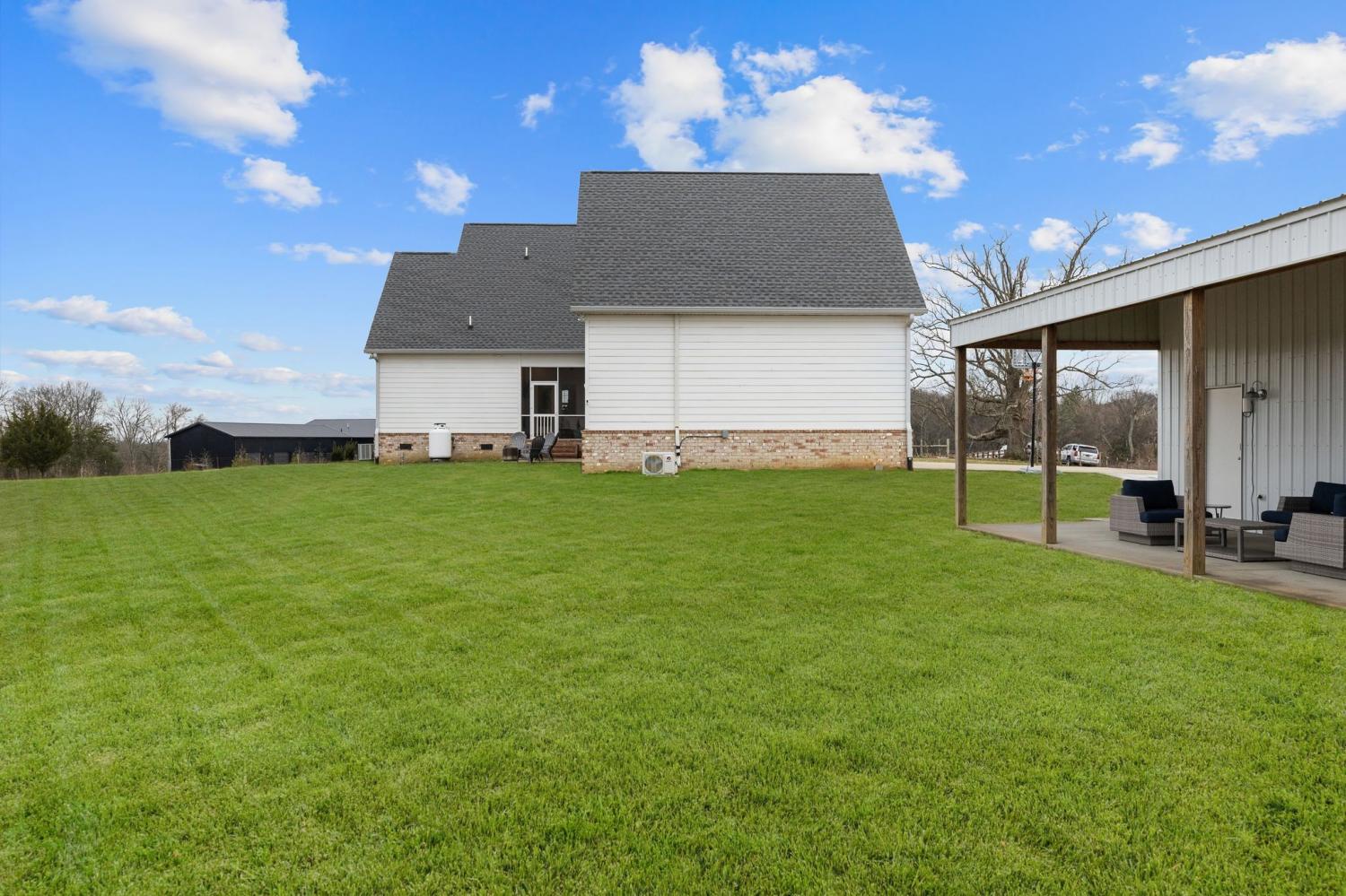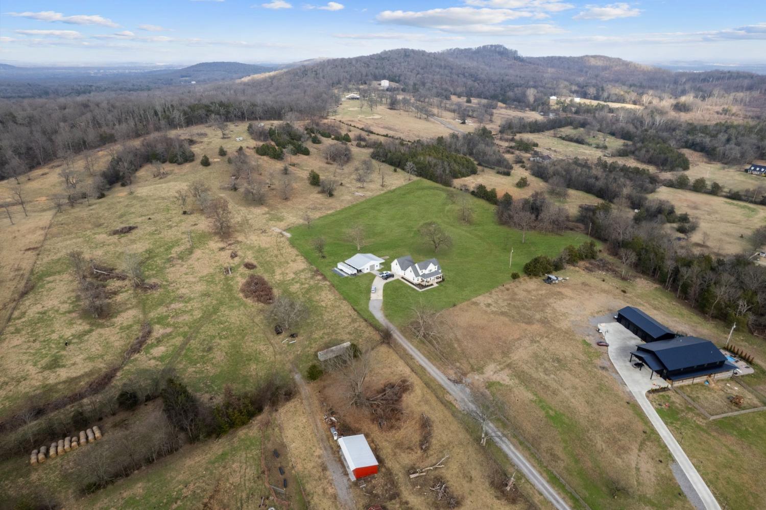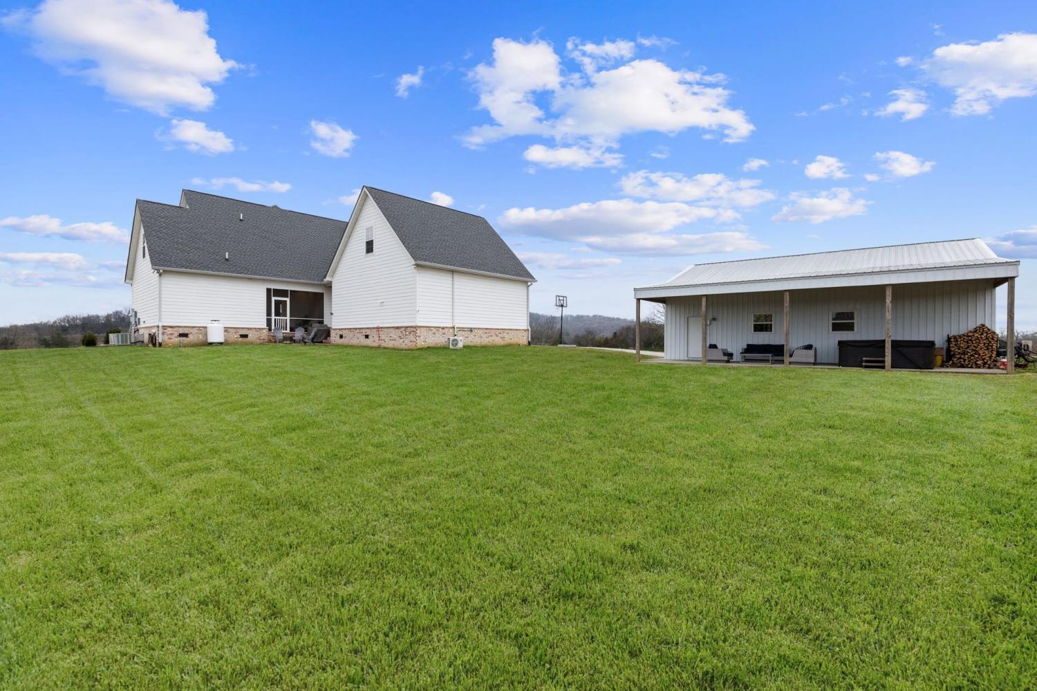 Farmhouse living with gorgeous sunsets awaits you. This custom-built 2022 home sits on 7.65 scenic acres and offers the perfect blend of privacy and convenience. Light and bright throughout, the home features soaring ceilings, wide welcoming porches, and a screened back porch ideal for taking in the views for miles. The main floor offers a private primary suite, while the second floor boasts generously sized bedrooms, each with its own bathroom, providing plenty of space for family and guests. The large kitchen island is the heart of the home, perfect for gathering and entertaining, and plantation shutters add timeless style throughout. Outside, you’ll love the 30' x 40' customized detached building ideal for a workshop, storage, hobbies, or equipment. With high-speed internet, this property supports work-from-home living without giving up country serenity. Bring your horses, four-wheelers, or simply your desire for space and quiet, this modern farmhouse offers it all. Home is zoned for the highly desirable Rockvale Schools.