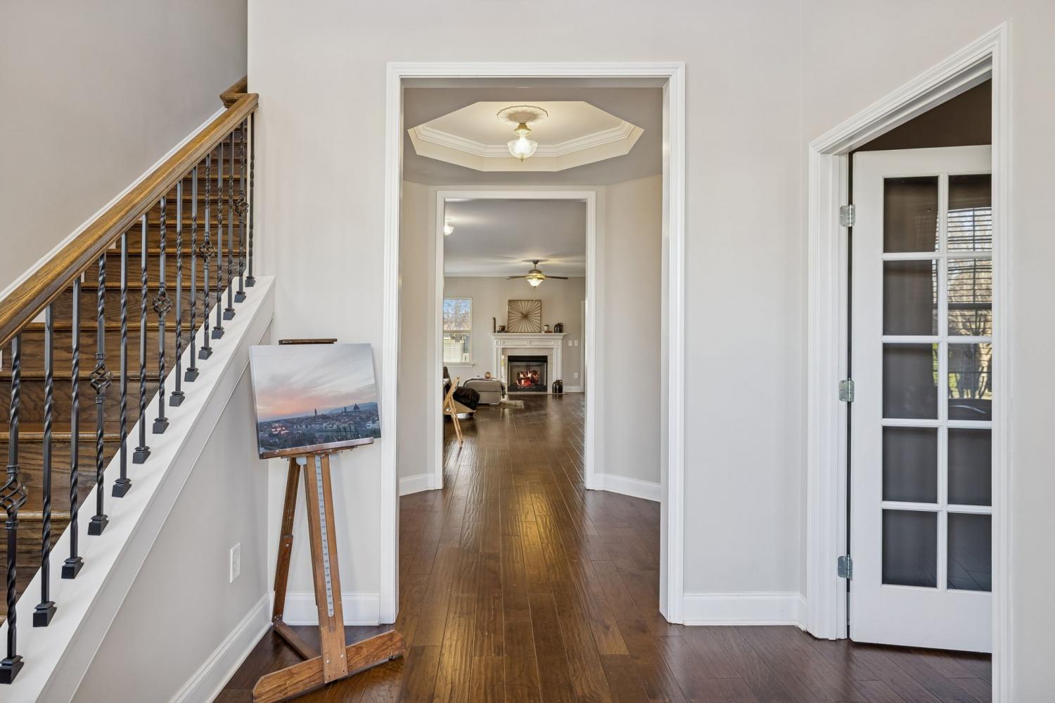 This beautifully maintained all-brick 4-bedroom home sits on a desirable corner lot with a fully fenced backyard and a spacious covered back porch, perfect for outdoor living. Located in the highly sought-after Franklin Special District School System, the neighborhood offers sidewalks, green spaces, and a scenic walking path leading to the historic Harpeth River. Inside, the home welcomes you with a two-story foyer filled with natural light, complemented by hardwood floors, granite countertops, crown molding, and enhanced trim work throughout. The flexible floor plan includes 3.5 bathrooms and the potential for a 5th bedroom, as the downstairs office includes a closet This home features two primary suites—one conveniently located on the main level and another upstairs. The primary bath boasts granite countertops, a jetted tub, and a walk-in shower. Upstairs, you’ll find a loft area, two additional full baths, and a large bonus room ideal for a media or recreation space, with two oversized attic storage areas on either side. Recent updates include fresh paint on all wood trim and select rooms, adding to the home’s move-in-ready appeal. A rare combination of space, flexibility, and location—this home offers comfort, style, and exceptional neighborhood amenities.