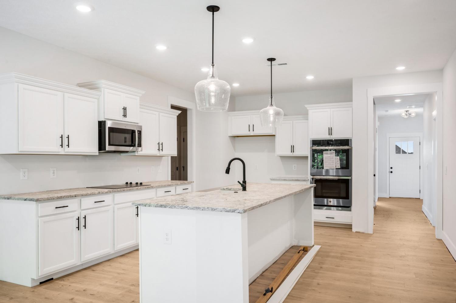 EVERYTHING YOU NEED IS INCLUDED! Backyard Fence, Window Blinds, French Door Refrigerator, Washer + Dryer, Solid Local Builder’s Warranty, Seller paid-costs + fixed rate buy-down (rates in the 5% range for qualified Buyers when using builder’s preferred lender). As a proud second-generation builder rooted in Clarksville, Grant Construction’s mission goes beyond building homes—they’re building community. With a strong commitment to supporting the military, including a veteran on staff, they proudly serve those who serve. Above all, they support their customers and stand behind every project with a reliable warranty you can trust. Grant Construction Homes are Built for Life! This stunning home offers a layout that’s hard to find — four bedrooms and two full bathrooms on the main level, perfectly designed for ease and comfort. Tucked away on a quiet cul-de-sac with NO REAR NEIGHBORS, it delivers the privacy and peaceful setting you've been searching for. Step into the heart of the home and enjoy an open-concept kitchen that truly impresses. An oversized island provides the ideal space for casual meals or entertaining, while sleek stainless steel appliances, double ovens, and a spacious pantry cater to every culinary need. From the kitchen, take in the seamless view into the cozy living room, where a shiplap fireplace with LED firescape creates a warm and stylish atmosphere. The primary suite is a true retreat, complete with laminate flooring, a large walk-in closet, and a spa-like bathroom featuring double vanities, a freestanding soaking tub, and a fully tiled shower—every detail designed for comfort. Upstairs, a versatile flex space with its own private bathroom offers endless potential—perfect for a home office, media room, gym, or guest suite. With easy access to I-24, schools, shopping, and quick commutes to Nashville and Fort Campbell. A rare find that combines a smart floor plan, high-end finishes, and a peaceful setting.