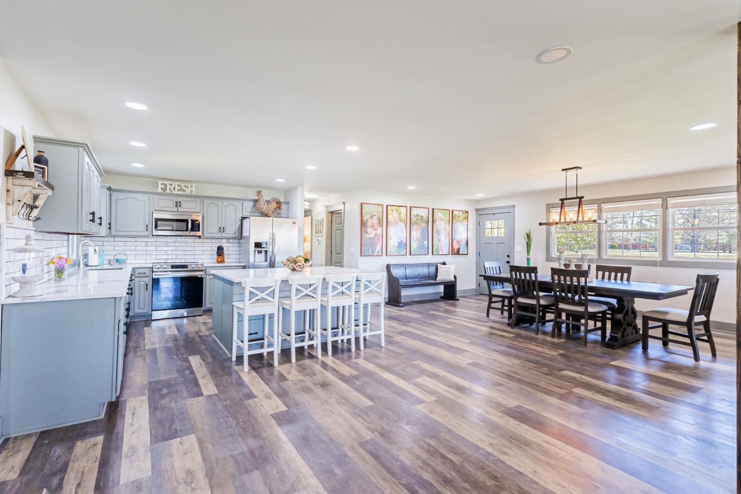 Come see this amazing completely remodeled home on 5 acres on the West side of Lebanon. This home features a huge detached shop building, 34'x 60', (2,040 square feet), with a private office inside, and concrete floors and electric through out. Enjoy an incredible outdoor living area with TV, a recessed hot tub, ample space for entertaining. Full basement with garage also with ample storage, a perfect heated and cooled space, ideal for a children's play area. Less than 10 minutes from Lebanon, and less than 5 minutes from the hospital. The property could possibly be split for an additional lot according to local surveyor. Paved driveway and nice front and back yard that goes to a beautiful creek. The detached shop comes with an additional driveway separate from the main residence. This would be perfect for a self employed person to store tools and equipment, or a car enthusiast with room to store multiple vehicles. A tract of land this large convenient to the city is extremely rare. Seller will trade or consider seller financing, (10% down 10% interest). A standout feature of this property is the large detached garage-perfect for car enthusiasts, hobbyists, or anyone needing serious storage. Whether you envision a workshop, home gym, or extra vehicle space, this garage delivers. Garage also offers a heated and cooled private office. Perfect to run a home business or a man cave.