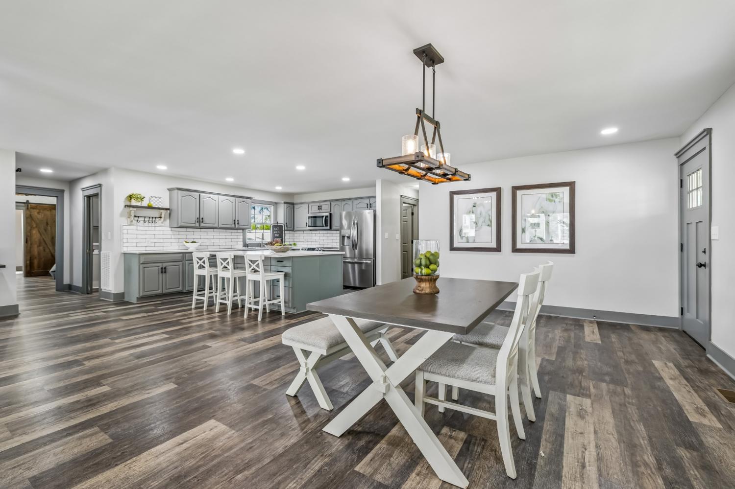 Come see this amazing completely remodeled home on 5 acres on the West side of Lebanon. This home features a huge detached shop building, 34'x 60', (2,040 square feet), with a private office inside, and concrete floors and electric through out. Enjoy an incredible outdoor living area with TV, a recessed hot tub, ample space for entertaining. Full basement with garage also with ample storage, a perfect heated and cooled space, ideal for a children's play area. Less than 10 minutes from Lebanon, and less than 5 minutes from the hospital. The property could possibly be split for an additional lot according to local surveyor. Paved driveway and nice front and back yard that goes to a beautiful creek. The detached shop comes with an additional driveway separate from the main residence. This would be perfect for a self employed person to store tools and equipment, or a car enthusiast with room to store multiple vehicles. A tract of land this large convenient to the city is extremely rare. Seller will trade or consider seller financing, ( a substantial down payment, 8% interest, up to 30 years). A standout feature of this property is the large detached garage-perfect for car enthusiasts, hobbyists, or anyone needing serious storage. Whether you envision a workshop, home gym, or extra vehicle space, this garage delivers. Garage also offers a heated and cooled private office. Perfect to run a home business or a man cave.