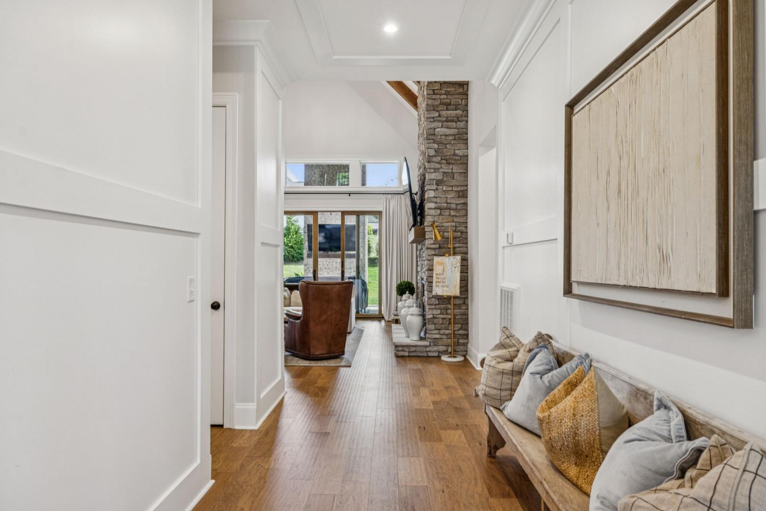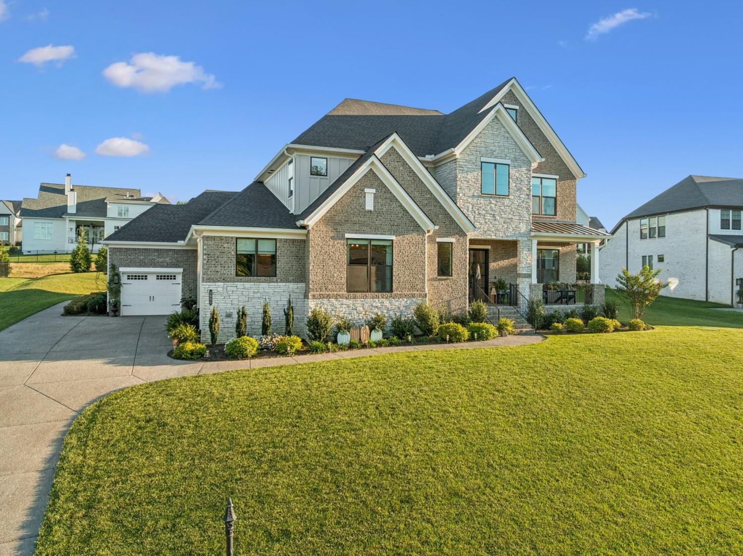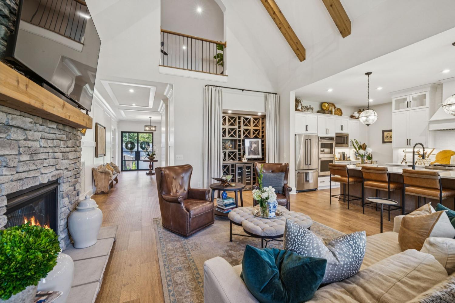 Welcome to Kings Chapel, one of Middle Tennessee’s most desirable gated communities, where timeless craftsmanship meets modern luxury. This better-than-new 2023 custom home sits on a half-acre lot and has been upgraded beyond what new construction can offer, including all appliances, custom trim work, designer window treatments, and thoughtful finishes throughout. Step through the iron double doors into a grand foyer that opens to a spacious living area with soaring vaulted ceilings, perfect for entertaining or relaxing in style. The chef’s kitchen flows seamlessly into the family room, creating an open-concept layout ideal for gatherings. The primary retreat offers a luxurious escape with a massive walk-in closet and spa-like en suite bath. The oversized laundry room is a dream come true, complete with a built-in pet washing station and secondary refrigerator for convenience. Upstairs you’ll find three additional bedrooms and two bonus rooms, offering flexible space for a home office, theater, or playroom. A pool table can remain for the new owner, and all furniture is available for purchase, making this truly a move-in-ready opportunity. Enjoy the security and amenities of Kings Chapel, a sought-after community known for its serene surroundings, stunning homes, and unbeatable location. Use our preferred lender and receive up to 1% of loan amount to use toward closing costs and/or interest rate buy-down. Call agent for details.