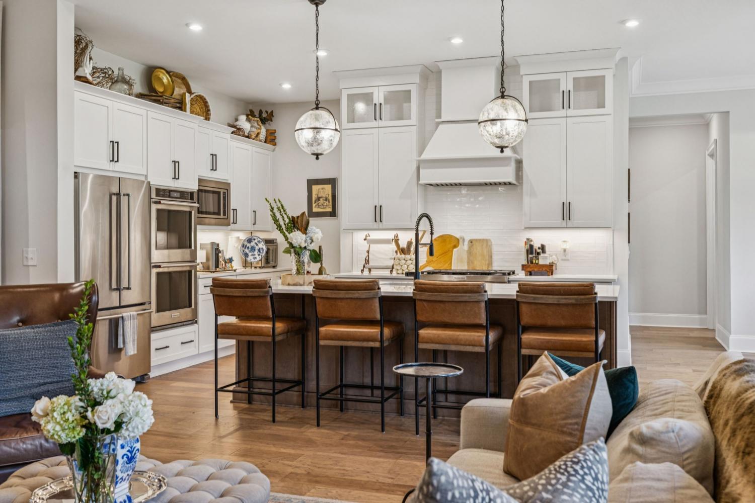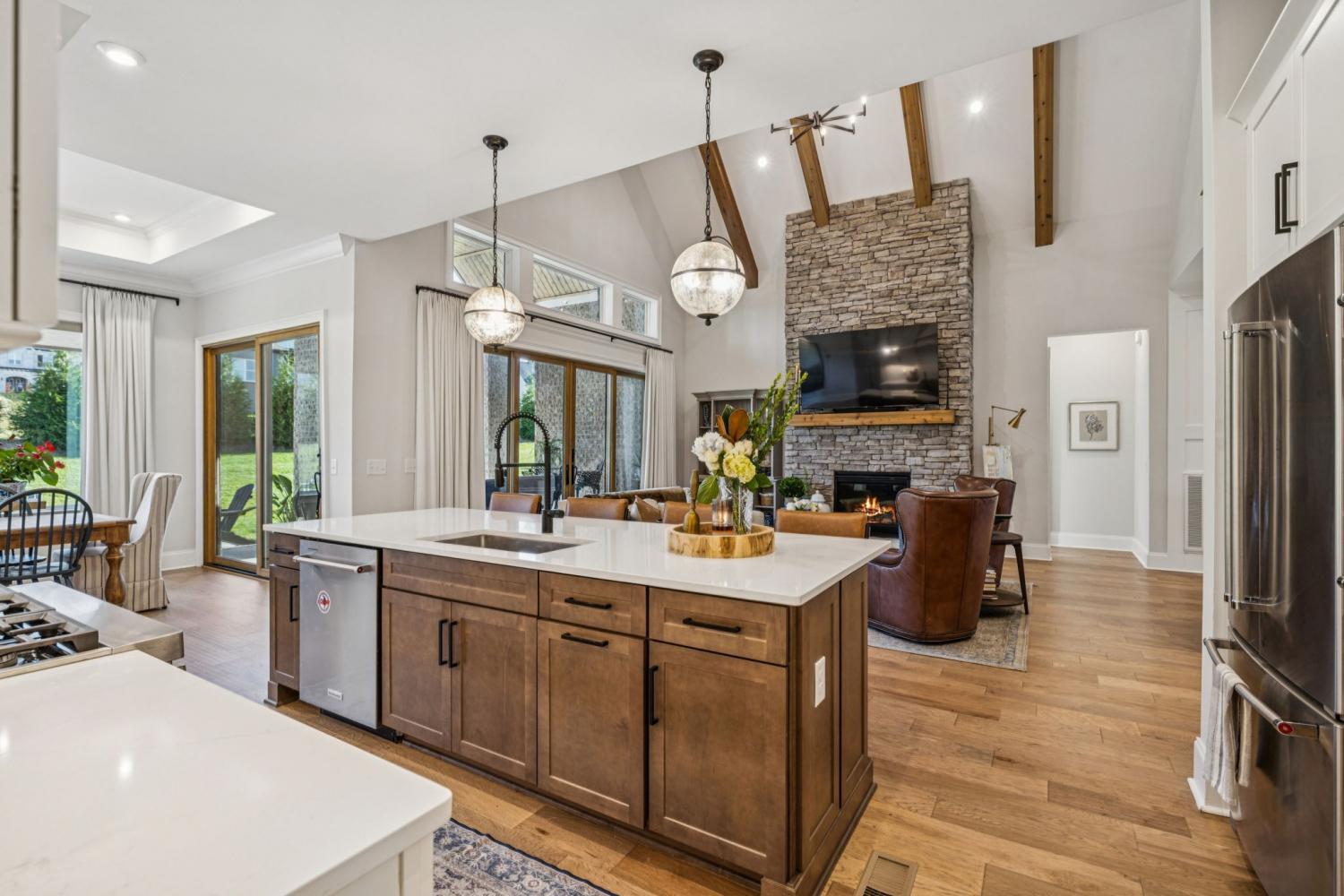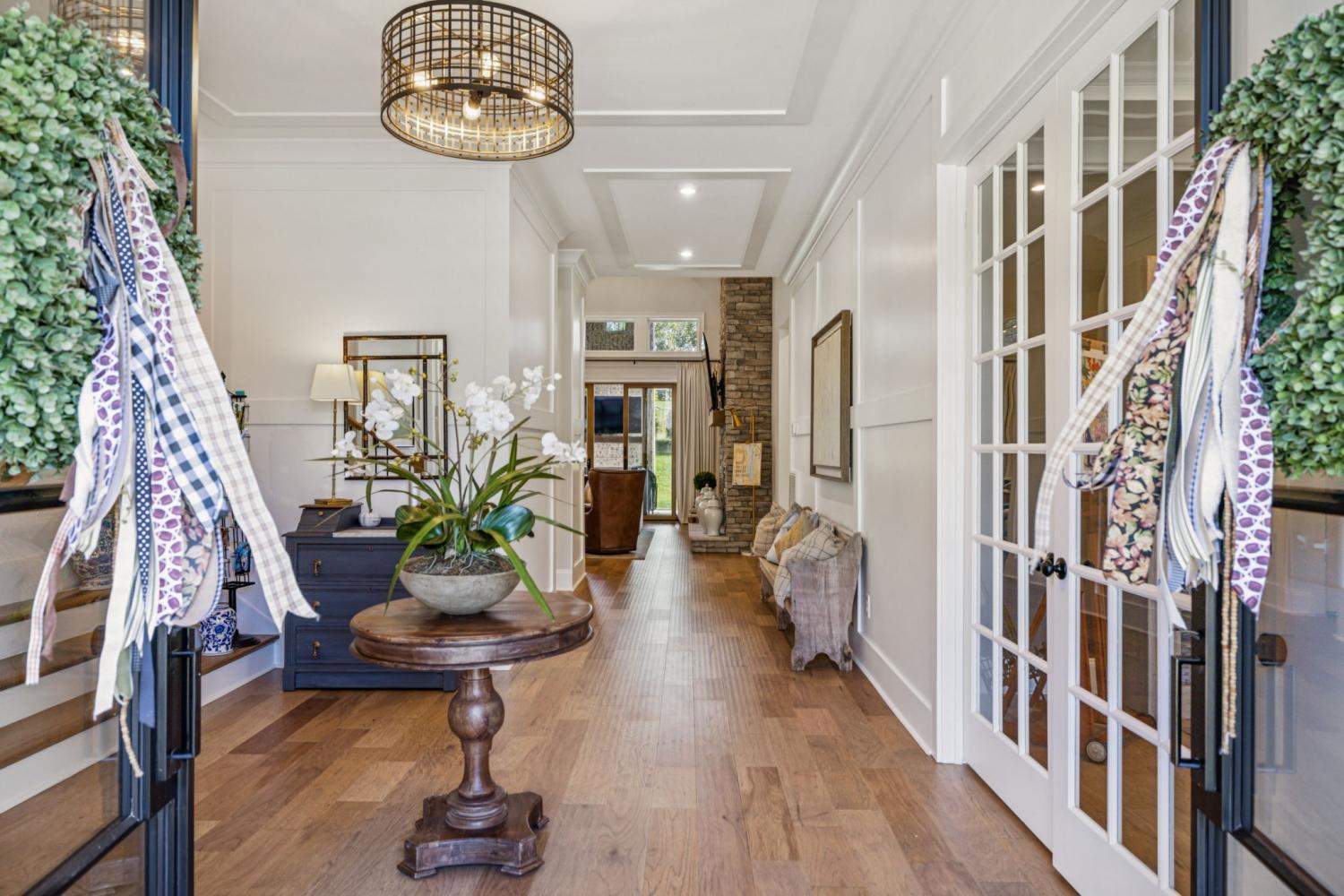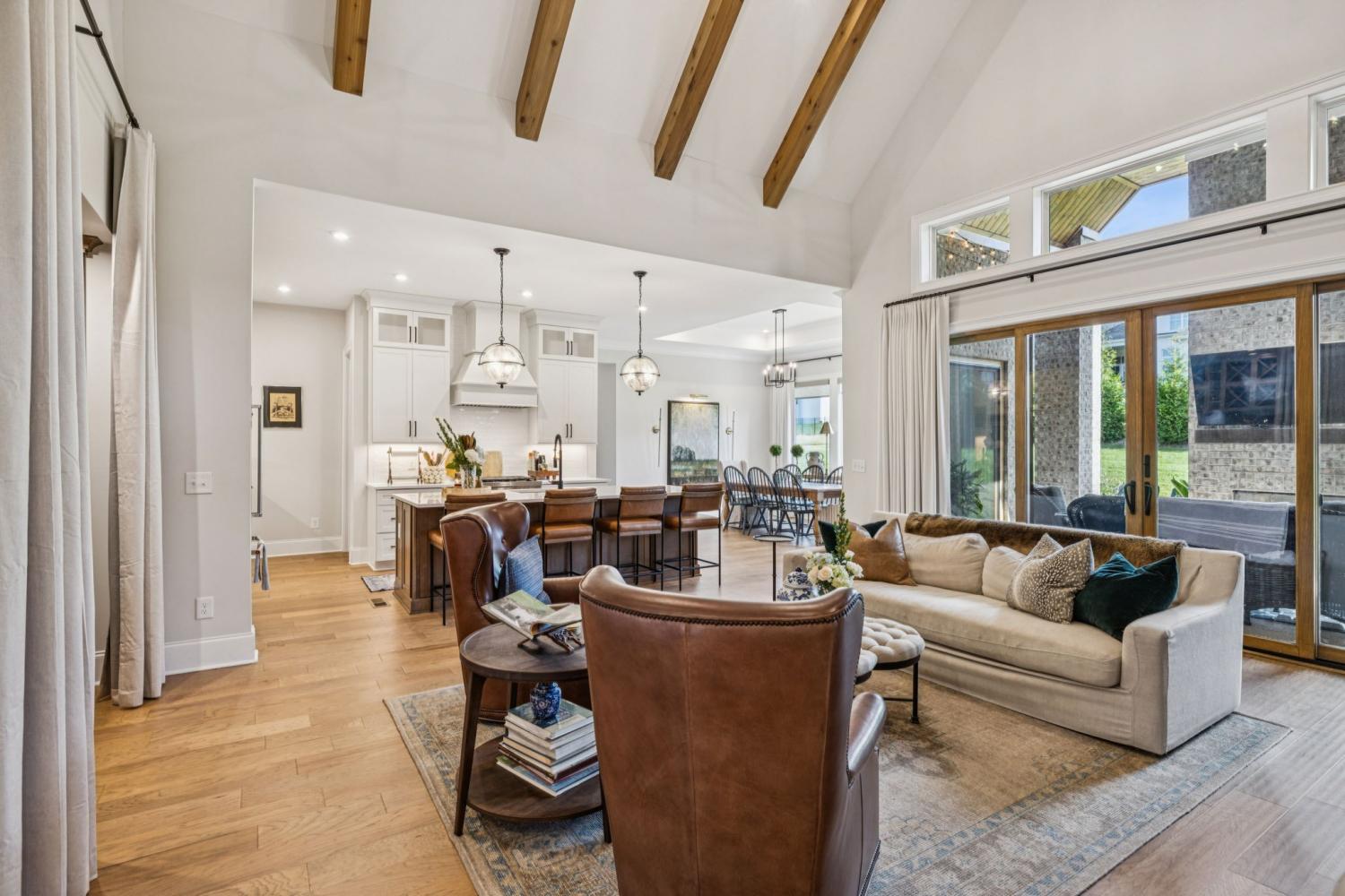 Welcome to Kings Chapel, one of Middle Tennessee’s most desirable gated communities, where timeless craftsmanship meets modern luxury. This better-than-new 2023 custom home sits on a half-acre lot and has been upgraded beyond what new construction can offer, including all appliances, custom trim work, designer window treatments, and thoughtful finishes throughout. Step through the iron double doors into a grand foyer that opens to a spacious living area with soaring vaulted ceilings, perfect for entertaining or relaxing in style. The chef’s kitchen flows seamlessly into the family room, creating an open-concept layout ideal for gatherings. The primary retreat offers a luxurious escape with a massive walk-in closet and spa-like en suite bath. The oversized laundry room is a dream come true, complete with a built-in pet washing station and secondary refrigerator for convenience. Upstairs you’ll find three additional bedrooms and two bonus rooms, offering flexible space for a home office, theater, or playroom. A pool table can remain for the new owner, and all furniture is available for purchase, making this truly a move-in-ready opportunity. Enjoy the security and amenities of Kings Chapel, a sought-after community known for its serene surroundings, stunning homes, and unbeatable location. Use our preferred lender and receive up to 1% of loan amount to use toward closing costs and/or interest rate buy-down. Call agent for details.