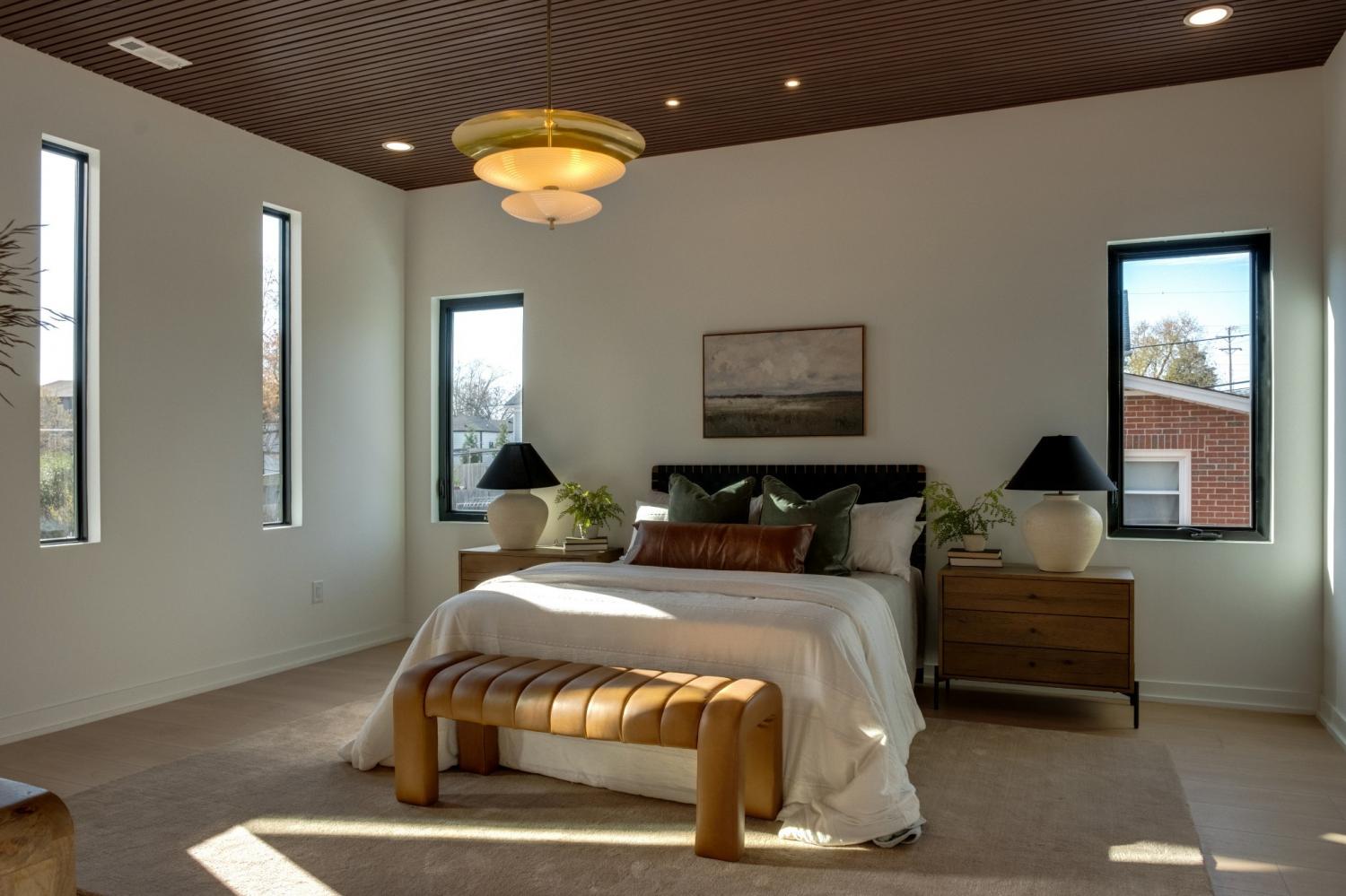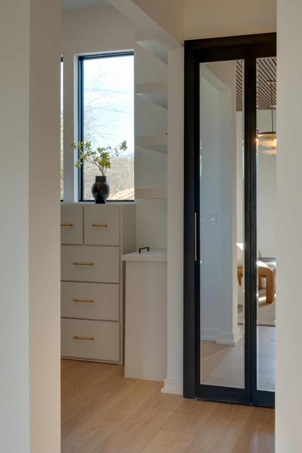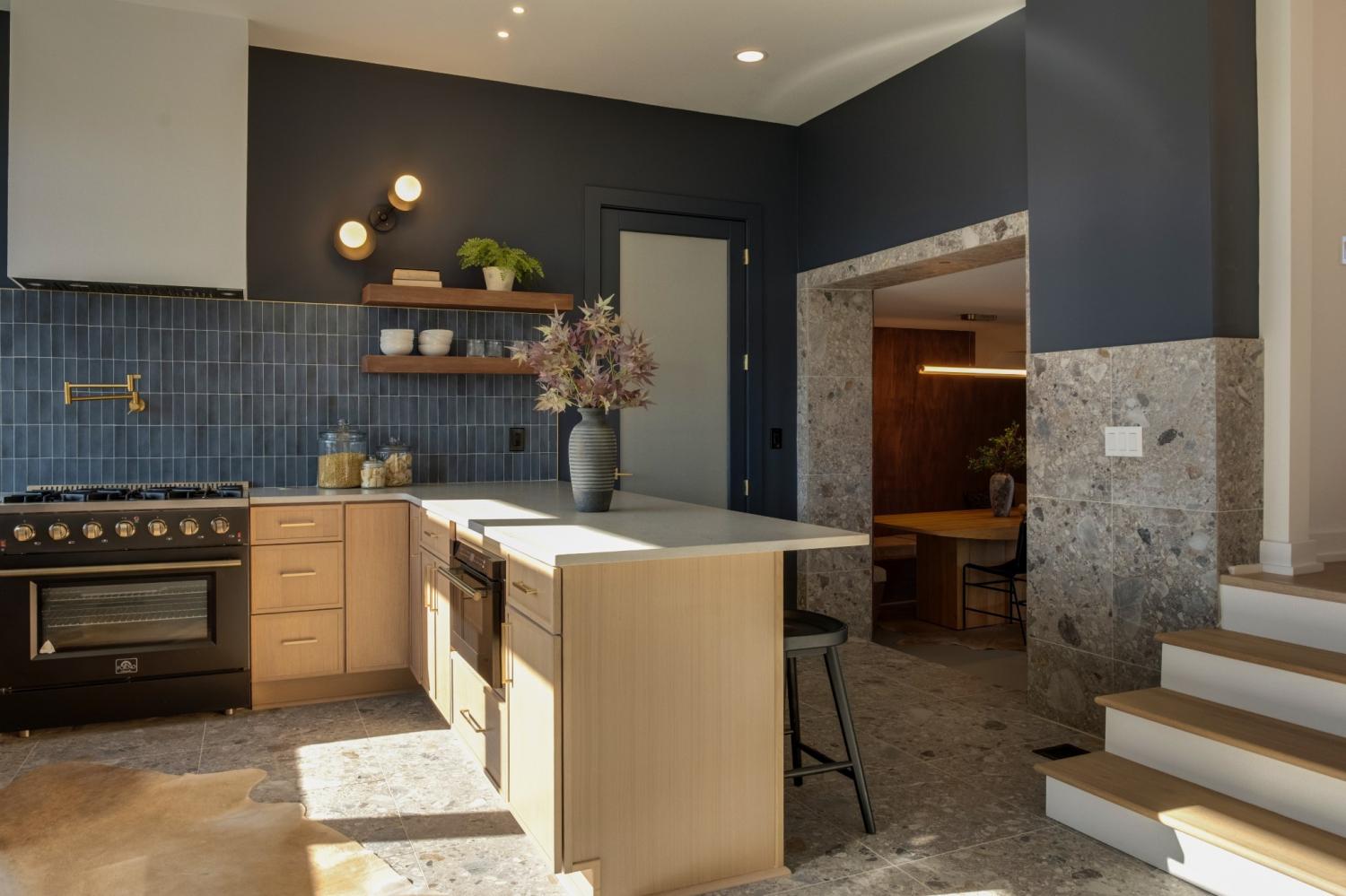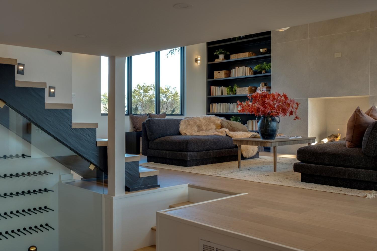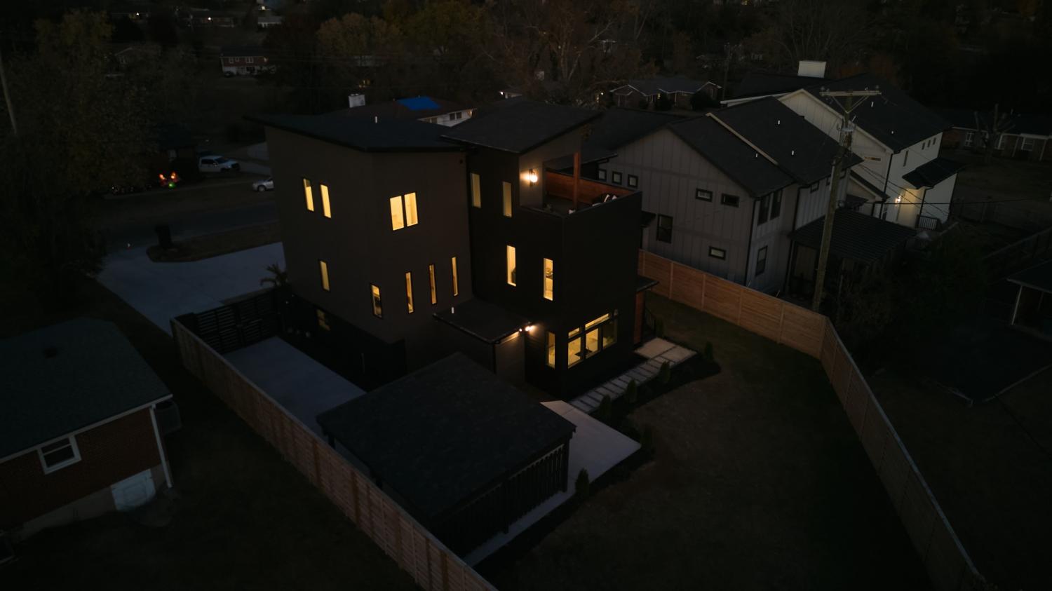 Welcome to House Nexus by Archie & Boyd. A warm, light-filled modern home designed for everyday living and elevated entertaining, House Nexus blends sculptural architecture with comfort, privacy, and timeless materials in one of East Nashville’s most desirable settings. A private electric gate creates a quiet sense of arrival, setting the tone for the thoughtfully curated spaces beyond. Inside, natural light pours through oversized windows into a striking living room anchored by a sleek gas fireplace. Sculptural floating stairs rise through the space, creating a dramatic yet welcoming architectural moment—ideal for slow mornings, intimate evenings, and effortless hosting. At the heart of the home, the architectural kitchen balances clean geometry with true functionality. Luxury FORNO appliances, a full gas range, custom cabinetry, refined surfaces, and terrazzo flooring selected for durability and texture create a chef-caliber environment that feels both elevated and livable. Just beyond, a sculptural dining space unfolds with custom wood detailing, built-in seating, and an intimate wine cellar—an inviting setting designed for gathering and conversation. The primary suite follows as a private retreat, featuring a naturalistic spa-inspired bath with sculptural fixtures, custom tilework, earthy finishes, a soaking tub, dual closets, and a discreet all-in-one washer and dryer within the dressing wing. One flight above, a secondary living room offers a flexible, light-filled retreat with a wet bar and direct access to a private balcony overlooking East Nashville. An adjacent guest suite and discreet office complete the level, creating an inspiring indoor–outdoor environment suited for visitors, work, or quiet moments of pause. Steps from Shelby Park, Shelby Golf Course, and top restaurants, House Nexus offers architectural distinction without sacrificing warmth, livability, or ease.