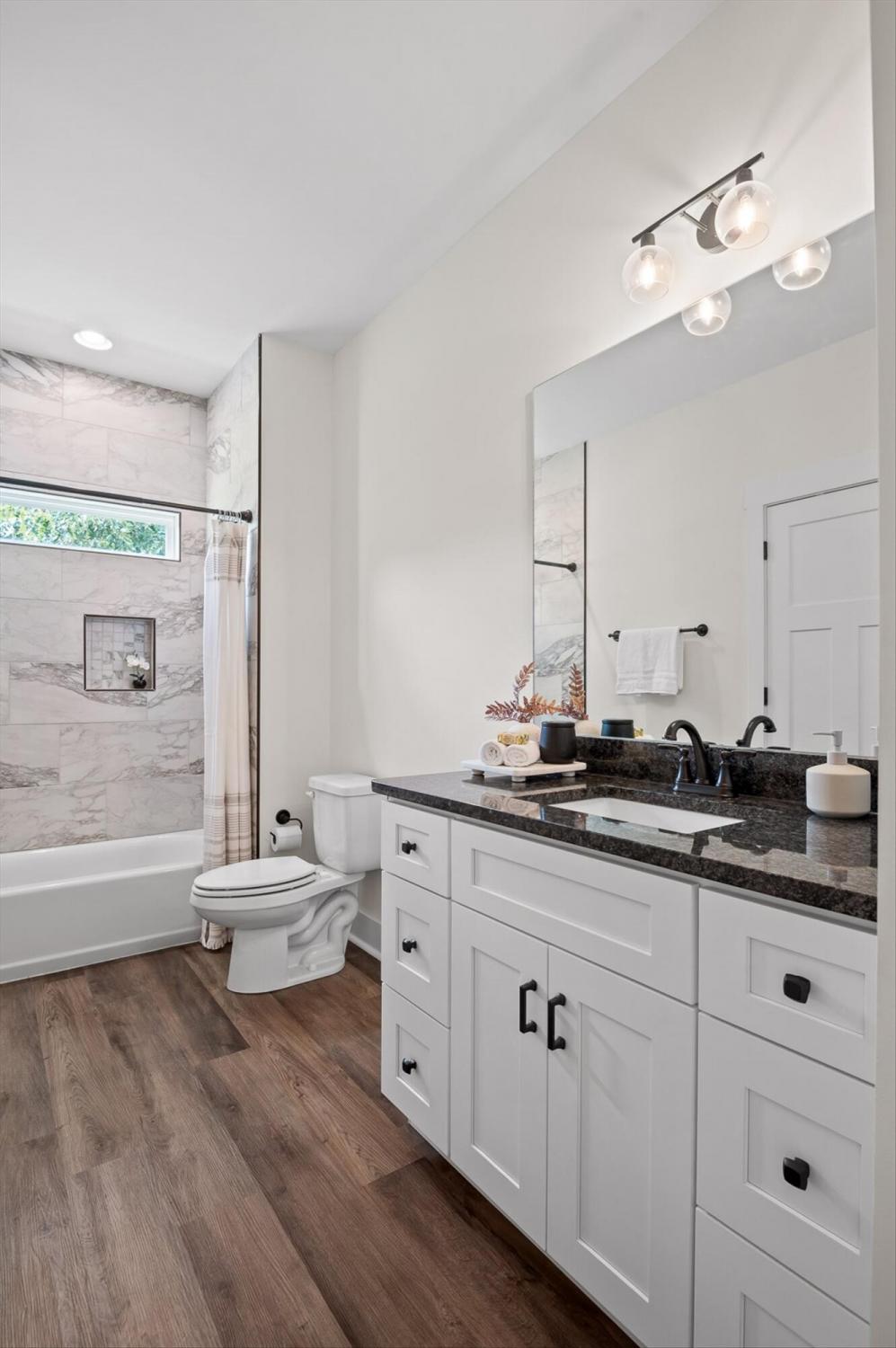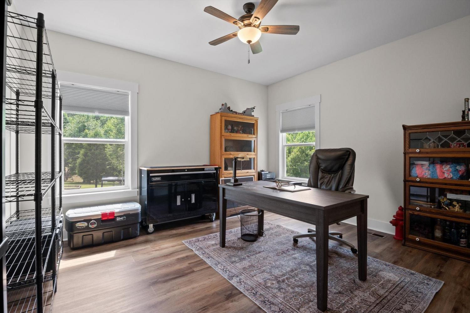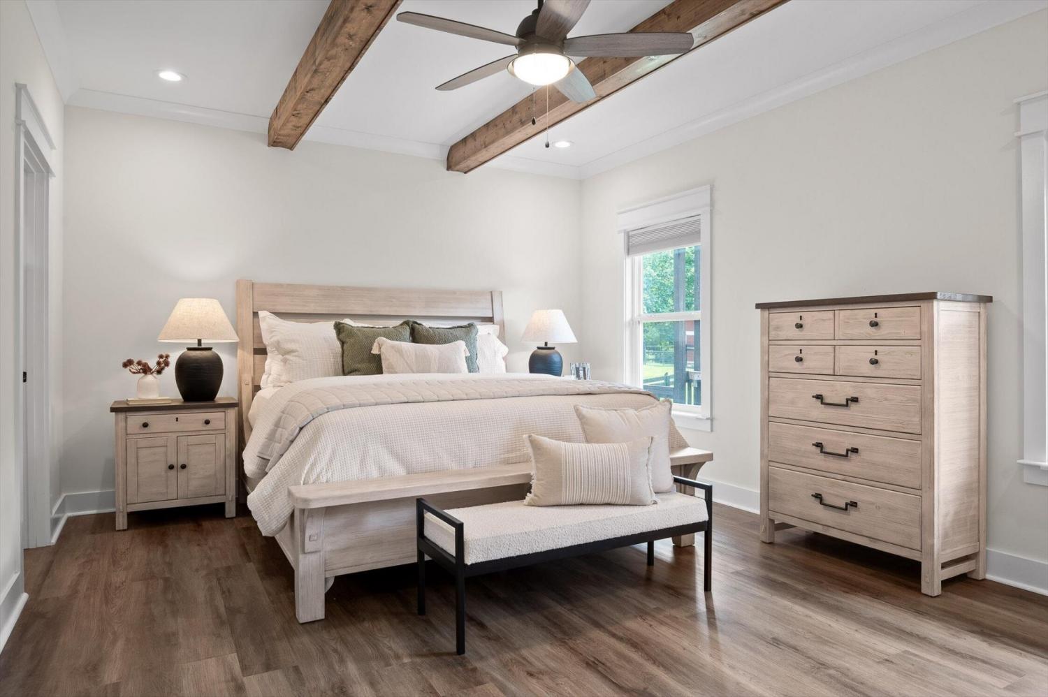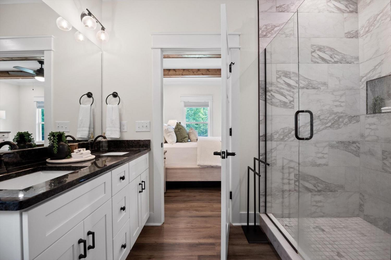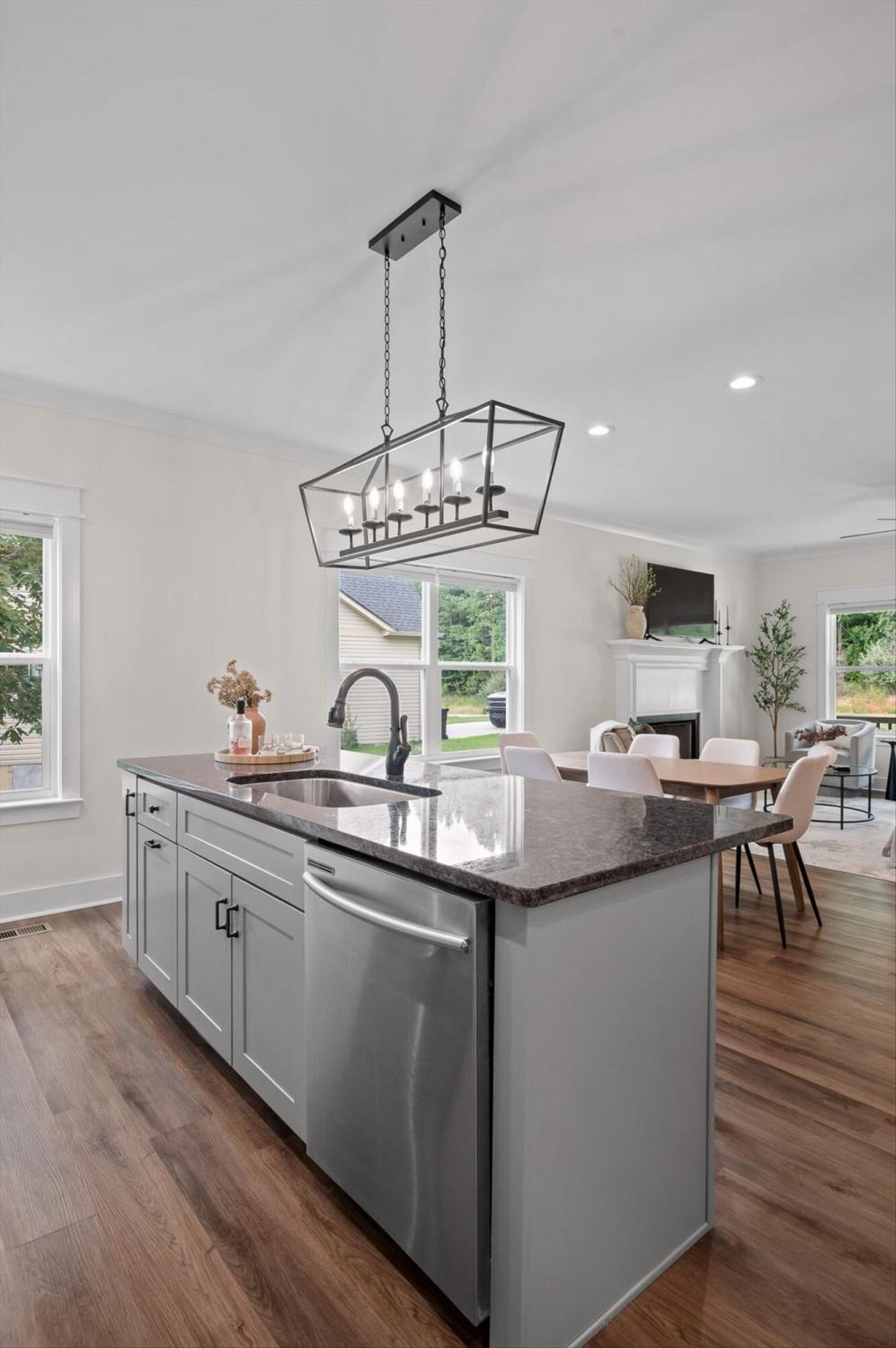 Discover the ideal balance of modern comfort and relaxed country living in this beautifully crafted 2022 built home, located just 1/2 mile from the boat ramp and approximately 30 minutes from downtown Chattanooga. Set on roughly one acre of partially cleared, well-maintained land, this thoughtfully designed residence offers 2,242 sq ft of living space with three bedrooms, three full bathrooms, and a full-size office/guest suite.. perfect for flexible living or working from home. The open, light-filled floor plan features quartz countertops, a gas range, and a warm, inviting fireplace, creating a space that is equally suited for everyday living and entertaining. Two bedrooms are located on the main level, each with direct access to a full bathroom, while the upstairs suite offers added privacy and separation. Outdoor functionality shines with a two-car garage plus an additional utility garage facing the backyard. This space is equipped with a custom screen-door system and currently functions as a home gym, though it easily adapts to an indoor-outdoor lounge or workshop. A side parking pad provides room for a boat or RV, and a chicken coop adds a touch of country charm. Over $30,000 in landscaping improvements include a stone patio and built-in fire pit just off the flex space/utility garage, offering an inviting setting for gatherings or quiet evenings outdoors. The rear deck has been extended to create a dedicated grilling area and viewing platform overlooking the expansive backyard, where deer are often seen. With no HOA, enjoy the freedom to use and personalize the property as you see fit. Whether you're drawn to lake access, proximity to Chattanooga, or peaceful nights by the fire, this home delivers a lifestyle that feels both refined and grounded.