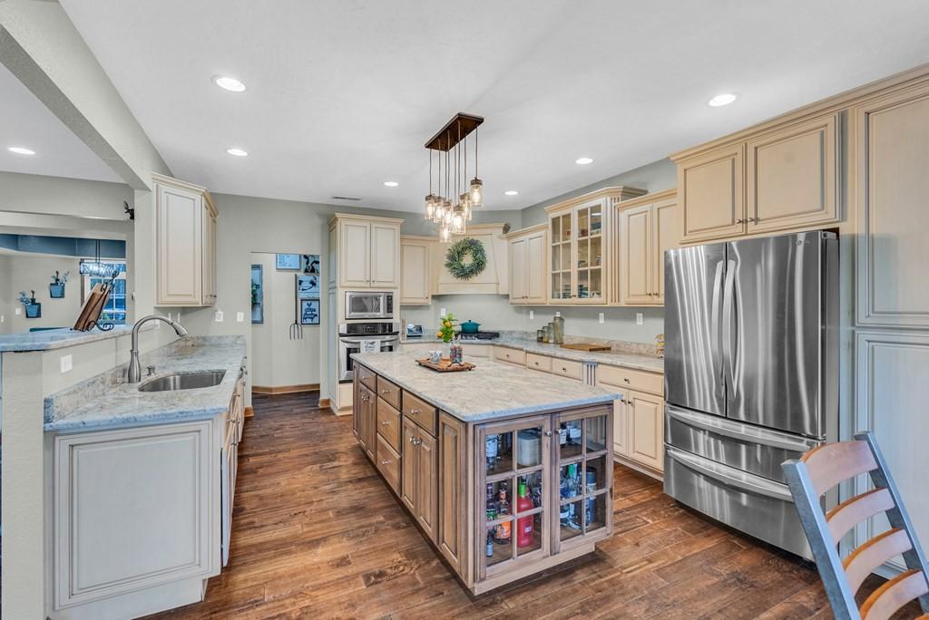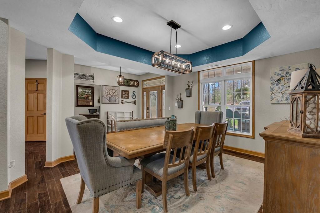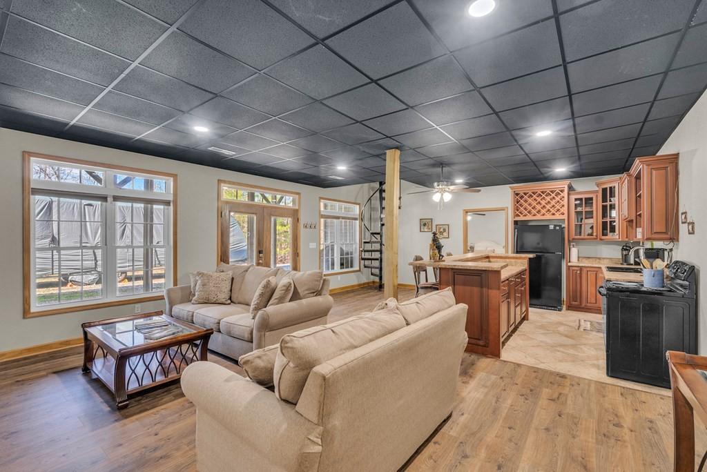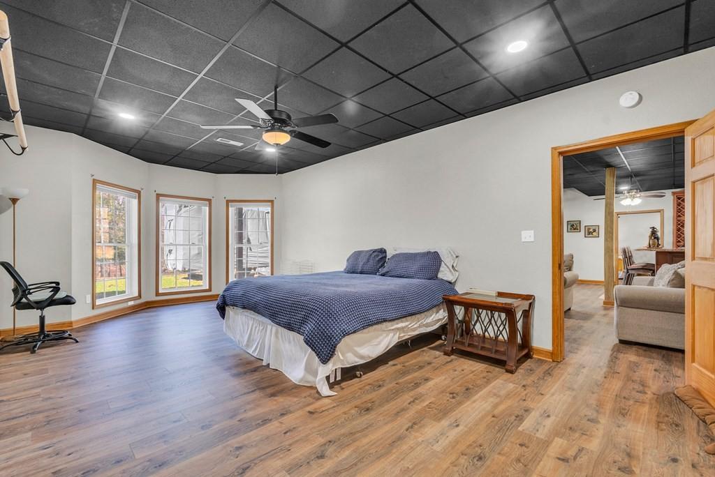 Sellers are relocating—your opportunity is here! This custom-built gem sits on 8.8 wooded acres with a peaceful spring-fed pond and is loaded with upgrades. Inside you'll find hardwood floors, solid wood doors, granite countertops, stainless appliances, and a stunning floor-to-ceiling gas fireplace. Two main-level primary suites, a formal dining room, and a home office add to the appeal. Upstairs: 4 bedrooms, including a second ensuite with a brand-new full bath. The basement has its own driveway, entrance, kitchen, full bath, bedroom, and bonus room—ready for Airbnb or rental. Extras include central vac, generator, Swann security, and a newer HVAC. About 3 acres are cleared—ideal for horses—and the 12x16 shed is wired, insulated, and lofted. Privacy, style, space, and income potential—this one truly has it all!