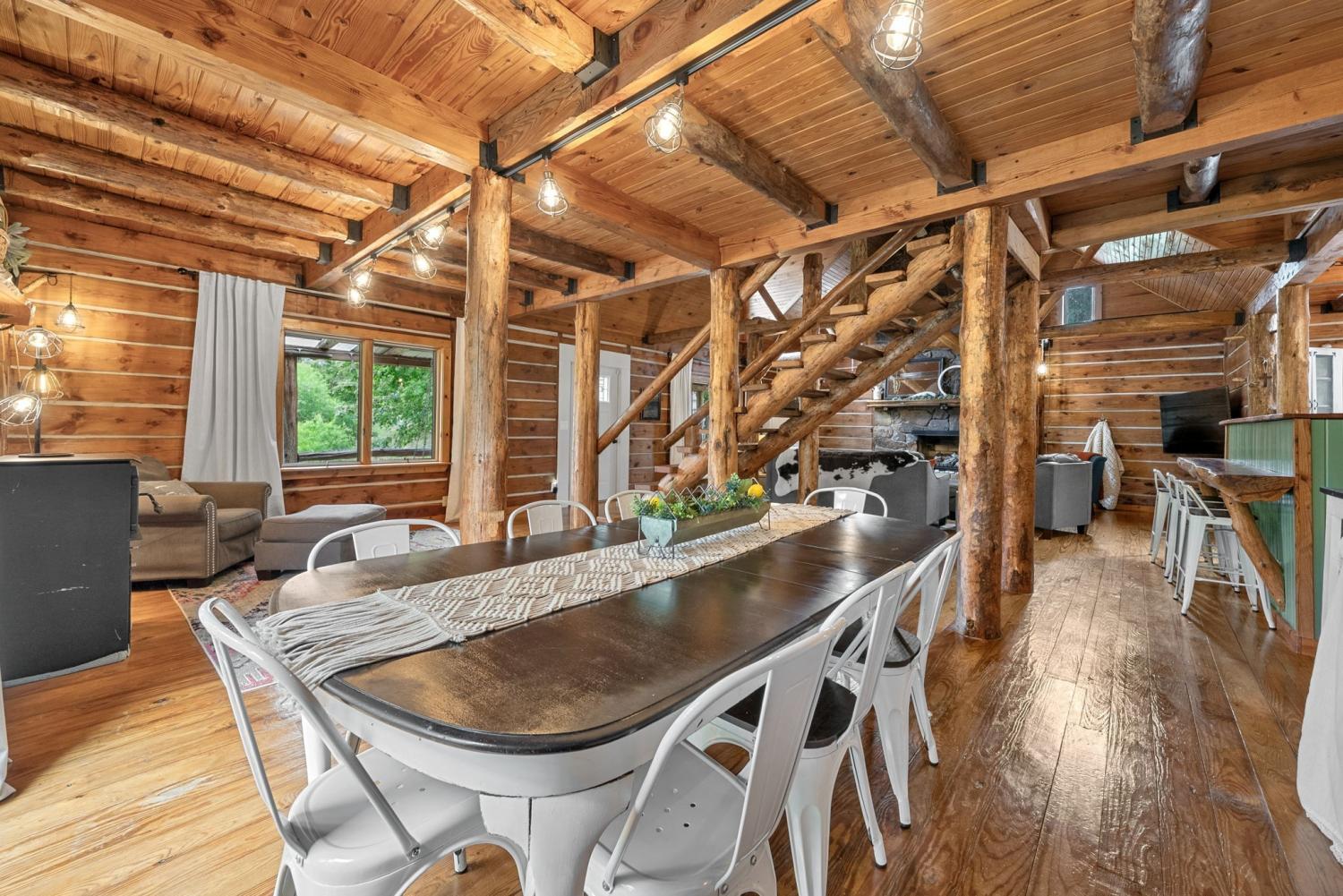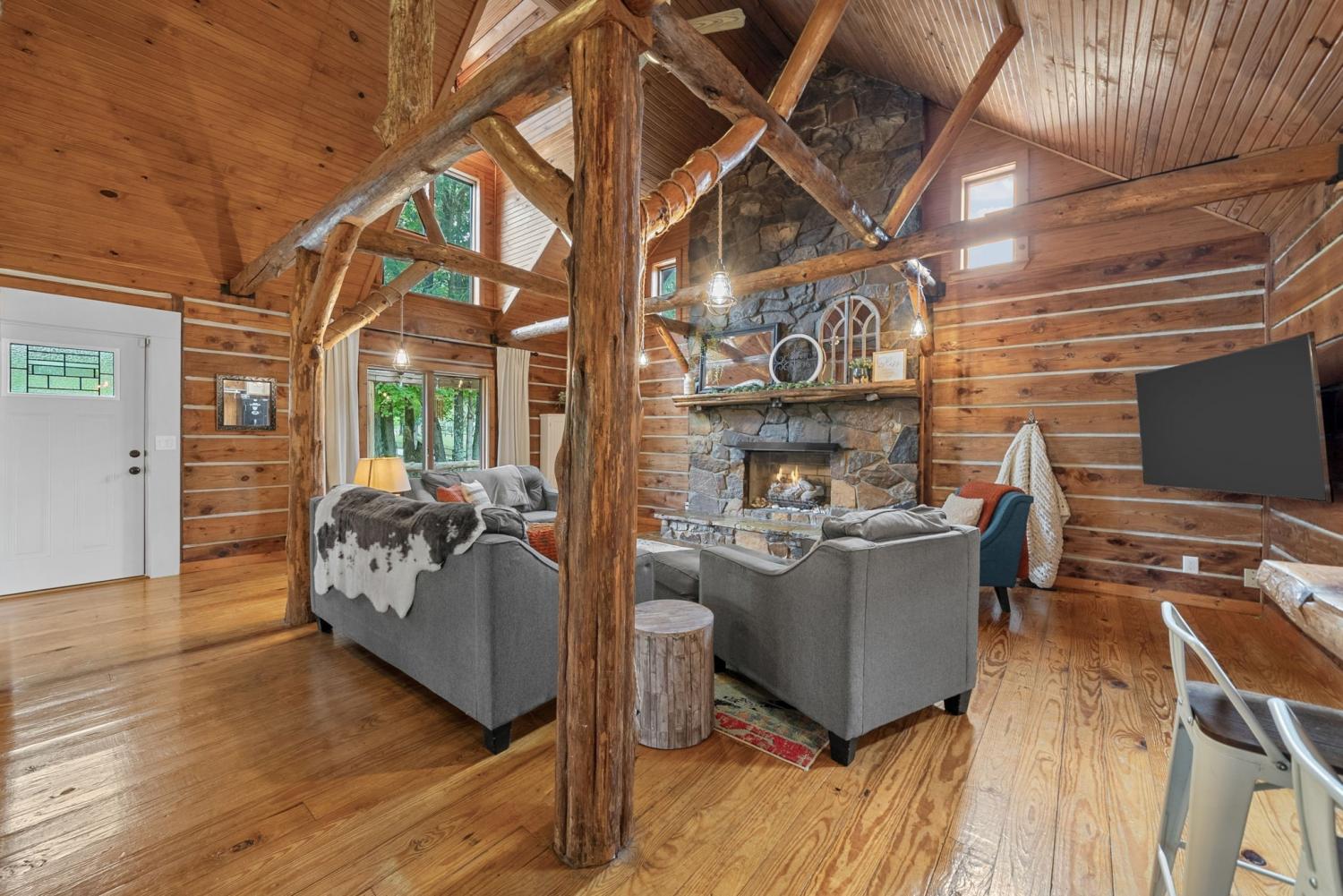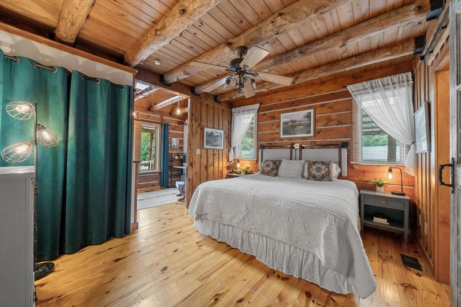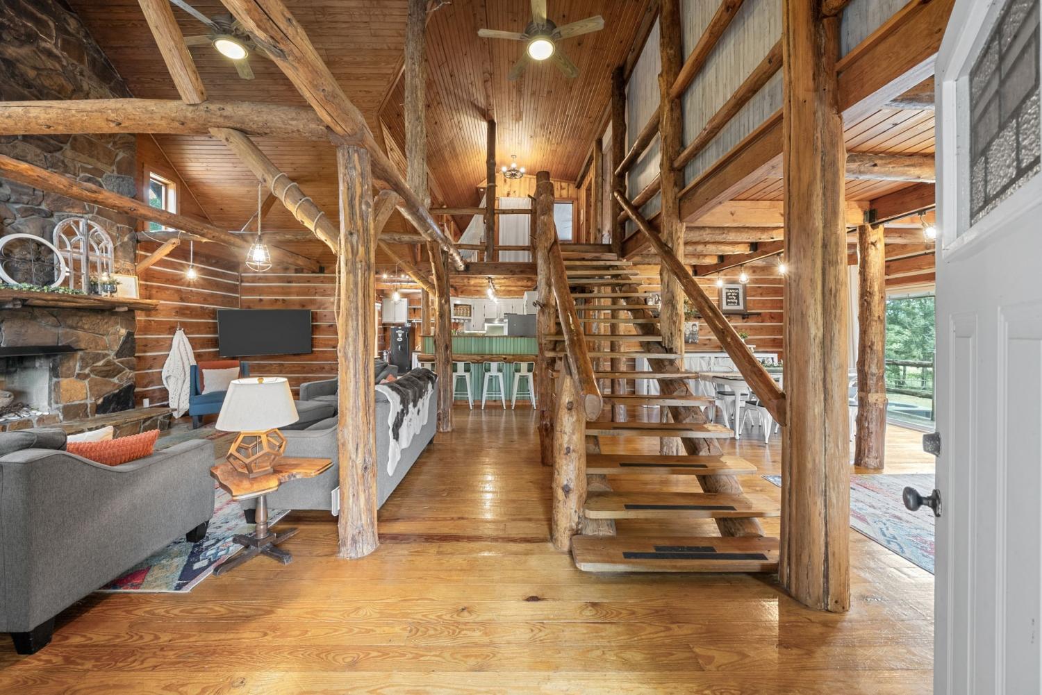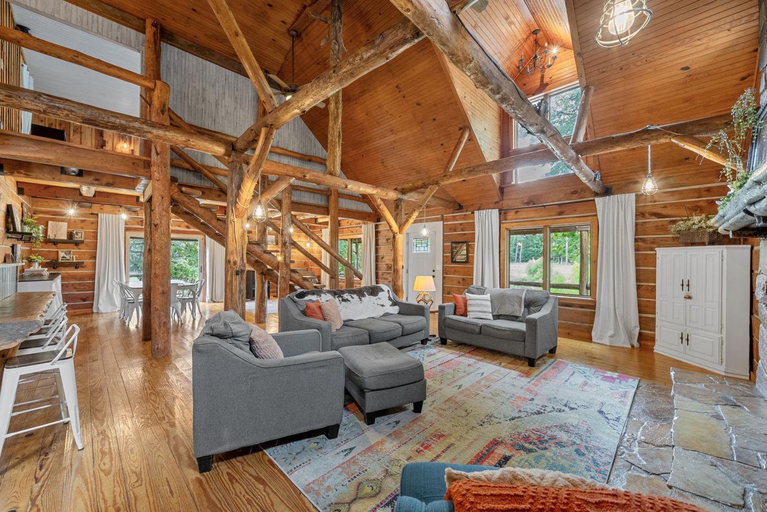 Escape to your own private retreat with this charming log cabin nestled on 20 acres of rolling countryside. Surrounded by mature fruit trees, a garden, and ATV trails that wind throughout the property, this home offers the perfect balance of rustic charm and modern updates. The main house features two covered porches—one screened-in for year-round enjoyment—making it easy to relax and take in the peaceful setting. Recent upgrades include a new metal roof (2021), HVAC and water heater (2020), and updated kitchen appliances—refrigerator, stove, and dishwasher—all replaced in 2024. The property is fully equipped for country living with extensive fencing, a stocked pond with dock, and a spacious barn. A separate guest house with its own covered porch, new mini-split system (2021), septic system, and electric meter provides comfort and privacy for visitors, extended family or as an Airbnb. Whether you’re looking for a homestead, a weekend getaway, or a place to entertain, this property has it all—functionality, beauty, and room to roam.