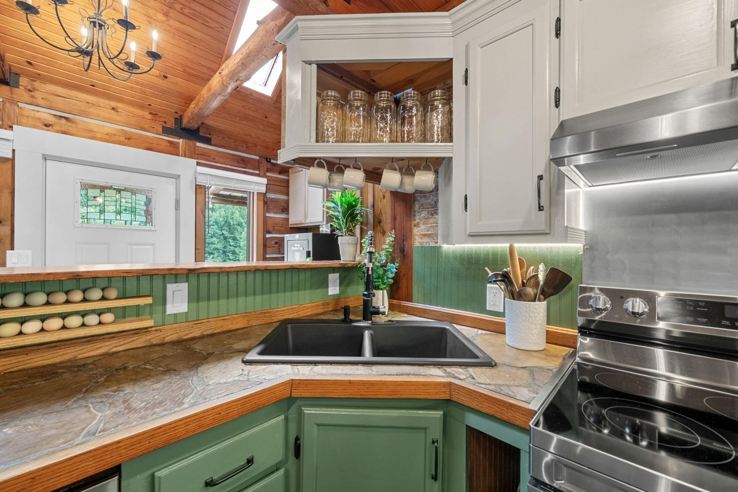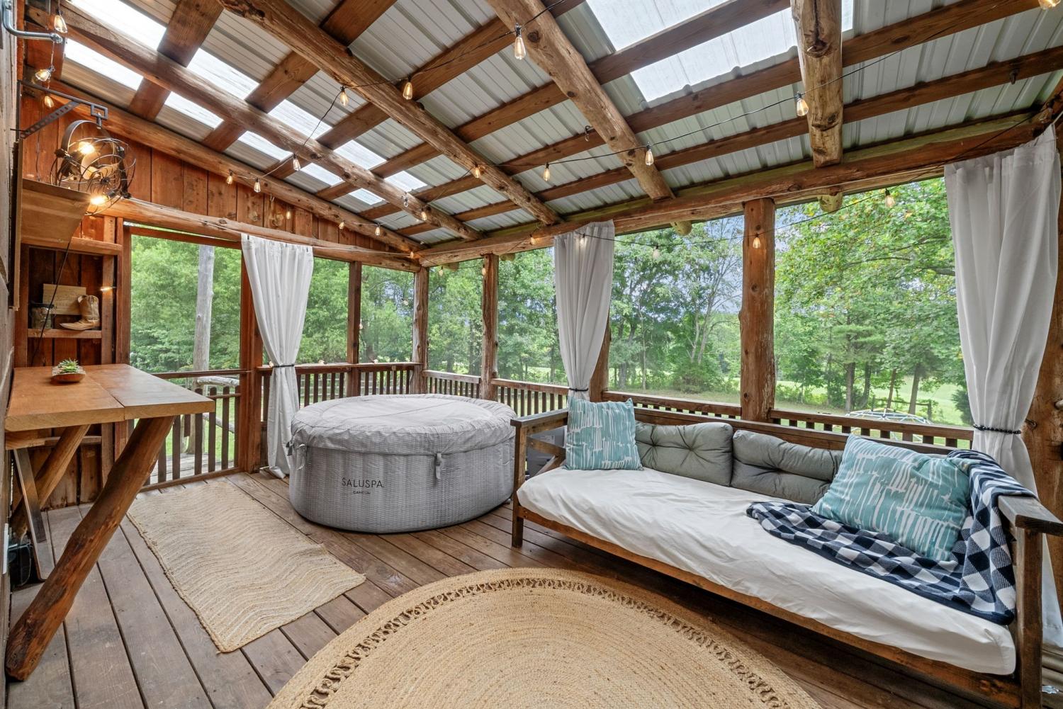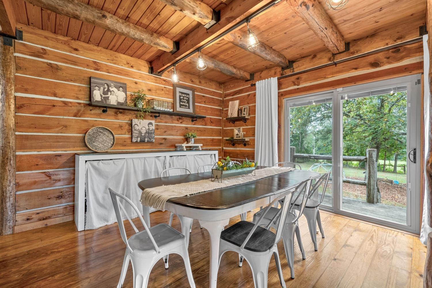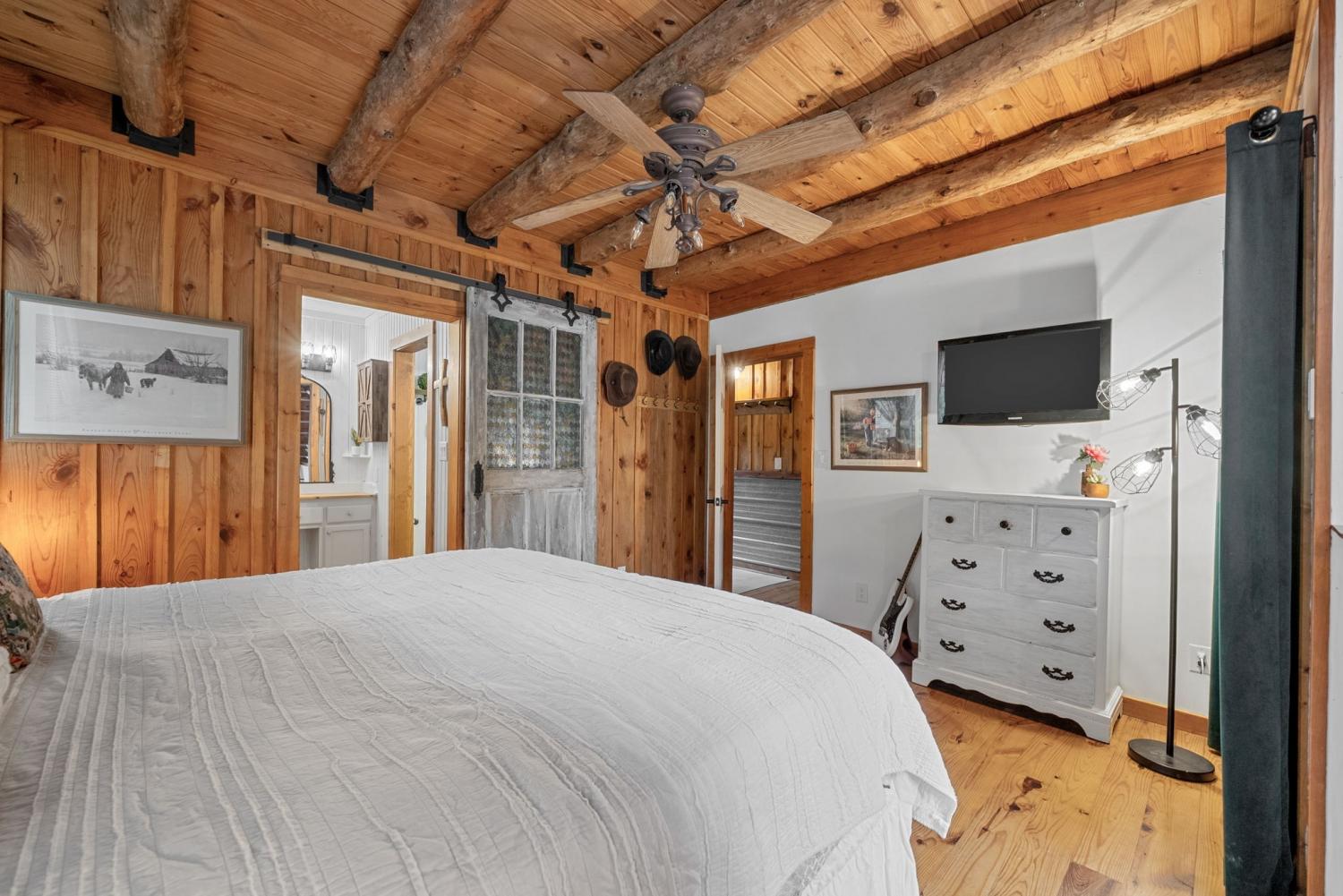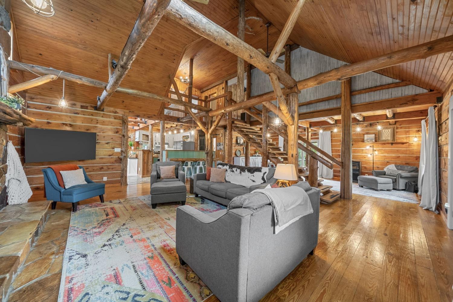 Escape to your own private retreat with this charming log cabin nestled on 20 acres of rolling countryside. Surrounded by mature fruit trees, a garden, and ATV trails that wind throughout the property, this home offers the perfect balance of rustic charm and modern updates. The main house features two covered porches—one screened-in for year-round enjoyment—making it easy to relax and take in the peaceful setting. Recent upgrades include a new metal roof (2021), HVAC and water heater (2020), and updated kitchen appliances—refrigerator, stove, and dishwasher—all replaced in 2024. The property is fully equipped for country living with extensive fencing, a stocked pond with dock, and a spacious barn. A separate guest house with its own covered porch, new mini-split system (2021), septic system, and electric meter provides comfort and privacy for visitors, extended family or as an Airbnb. Whether you’re looking for a homestead, a weekend getaway, or a place to entertain, this property has it all—functionality, beauty, and room to roam.