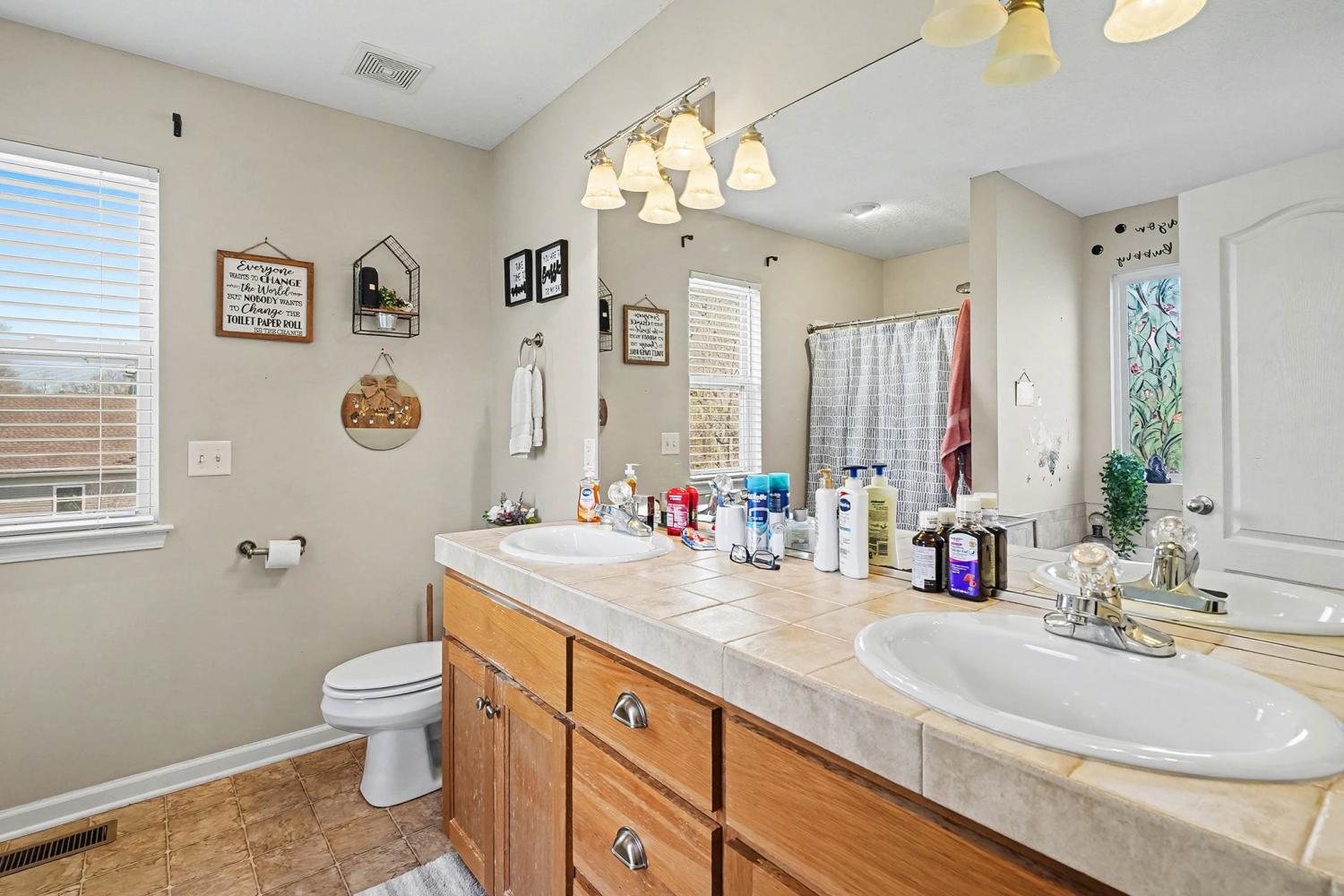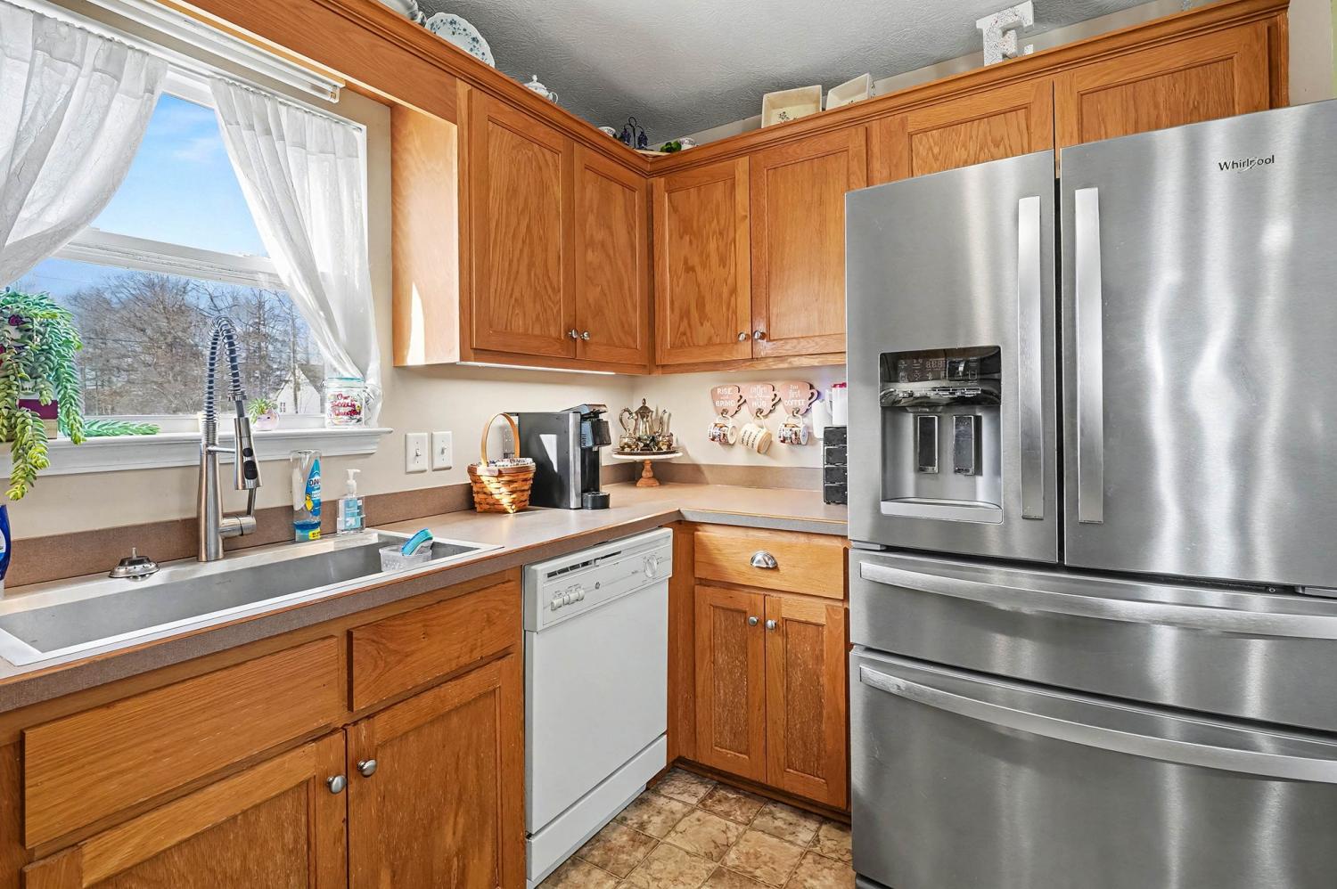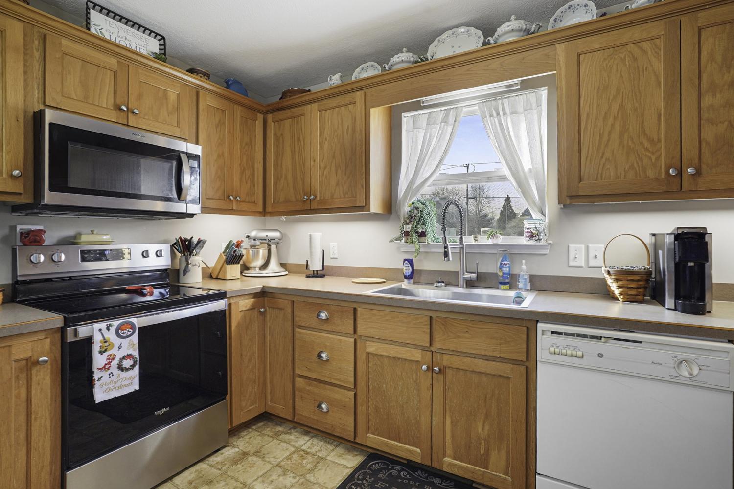 Set on a spacious one-acre corner lot, this well-appointed home offers comfort, functionality, and flexibility. The main-level primary suite features a large picture window, walk-in closet, and a tub and stand-in shower combo, with convenient access to the laundry room. The living room impresses with soaring ceilings and a gas fireplace. Upstairs are two large bedrooms, one with a walk-in closet and attic storage, along with a hall bath featuring an oversized linen closet and plenty of additional attic space for extra storage. The lower level includes a generous two-car garage and over 400 sq ft of heated, unfinished walk-out basement/workshop space, ready to be finished as a home gym, theater, office, or customized to your needs. Recent updates include a brand-new upstairs HVAC system replaced in October, a downstairs unit from 2019, and a septic system pumped in February 2024. The kitchen offers stainless steel appliances from 2019, a stove that is only six months old, and a dishwasher that works perfectly. A stainless steel refrigerator in the garage remains. Outdoor living is enhanced by a recently repainted front porch, a huge back deck, and an oversized driveway with ample parking. The one-acre corner lot also provides expansion potential for an additional garage, parking pad, workshop, or garden. Don’t miss out—schedule your showing today.
