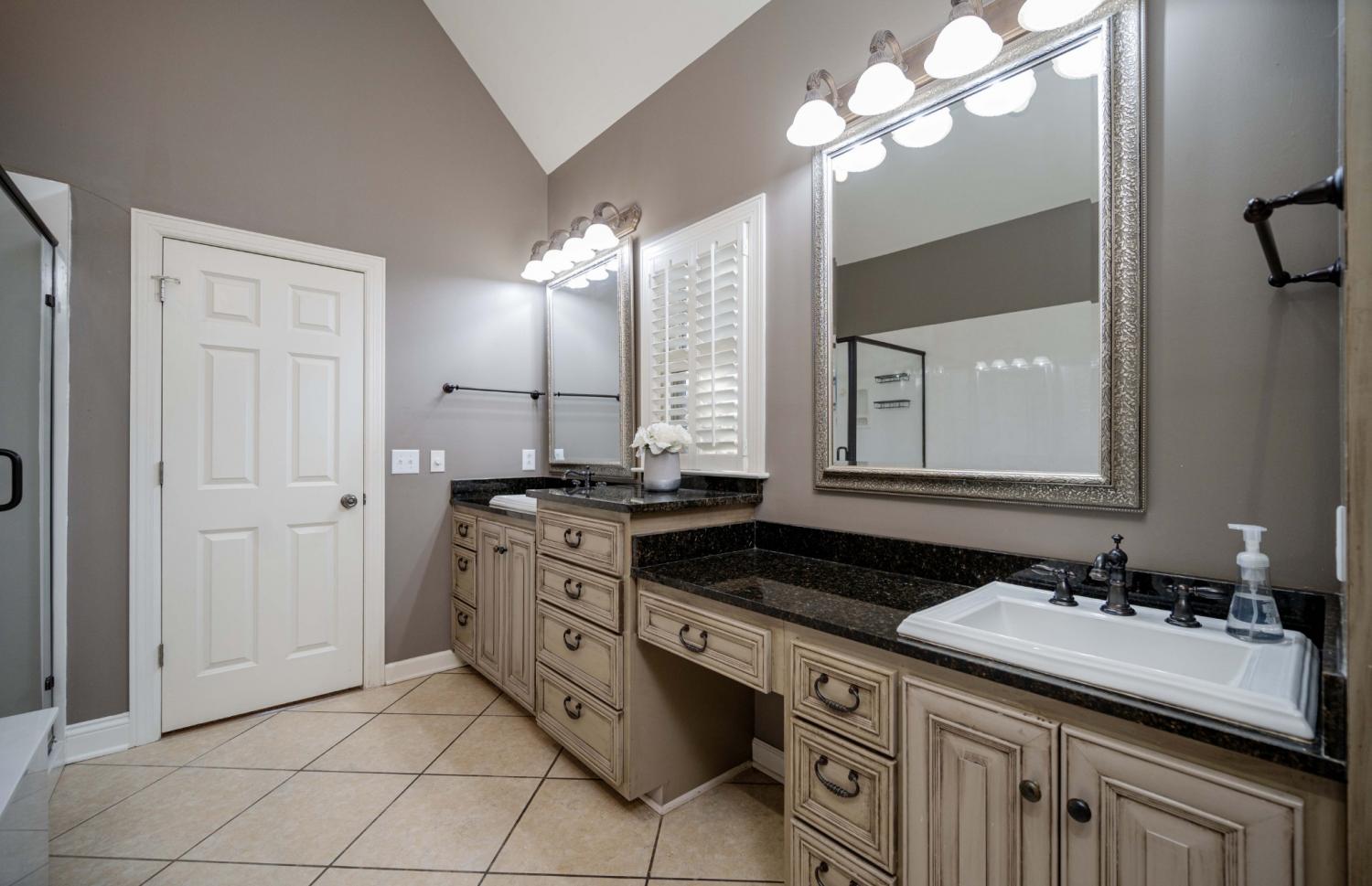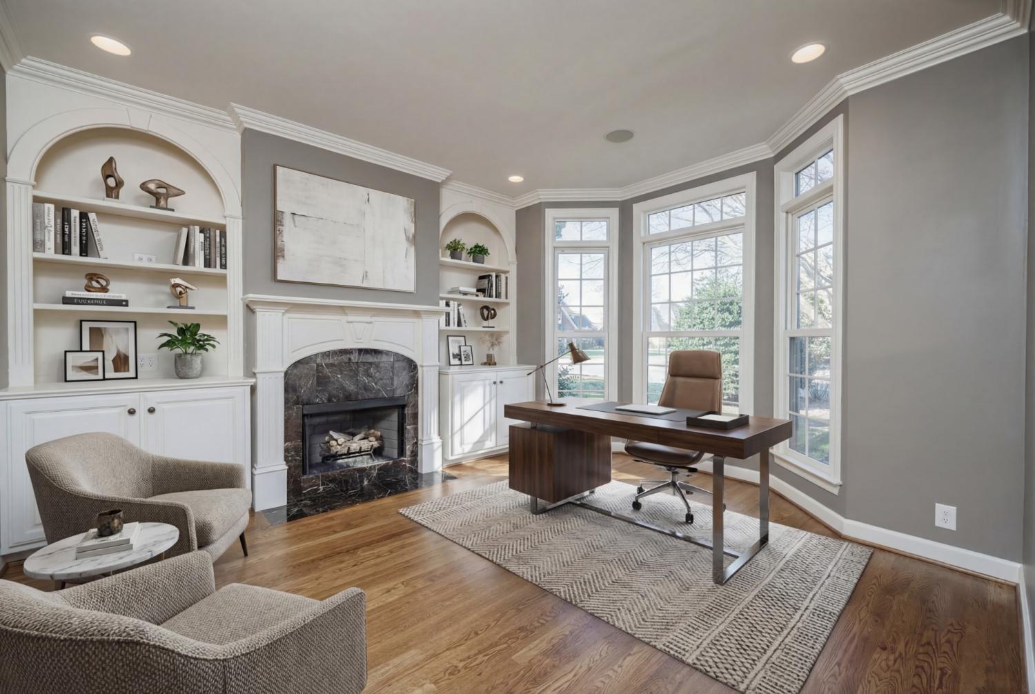 Located in the highly desirable Northwoods West neighborhood, this executive home offers classic curb appeal with modern functionality. The main level features three bedrooms, hardwood floors, an open living area with fireplace, and a dedicated home office with custom built-ins and a second fireplace. The kitchen is designed for both daily living and entertaining, complete with a gas cooktop, built-in oven, under-cabinet lighting, black granite countertops, ample workspace, and a large pantry. The primary suite includes a California walk-in closet, air jet soaking tub, separate tile shower, and double vanity. Upstairs, a fourth bedroom with cedar walls and custom built-ins provides a private retreat, along with a spacious bonus room offering flexible use. Additional features include geothermal WaterFurnace HVAC, Marvin double-hung windows, plantation shutters, central vacuum, extensive storage, a three-car garage with storm shelter and insulated doors, private irrigation well, covered back porch, and extra driveway parking. Conveniently located near MTSU, I-24, 840, shopping, and dining.