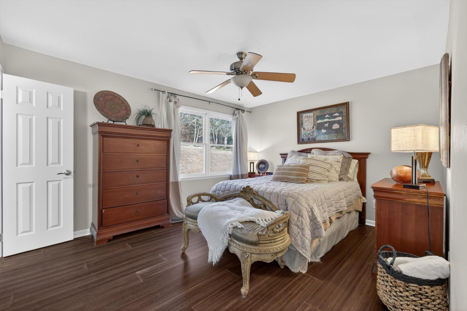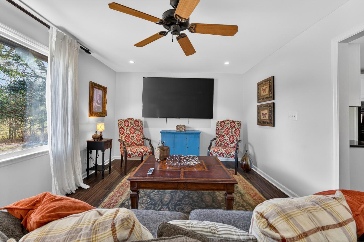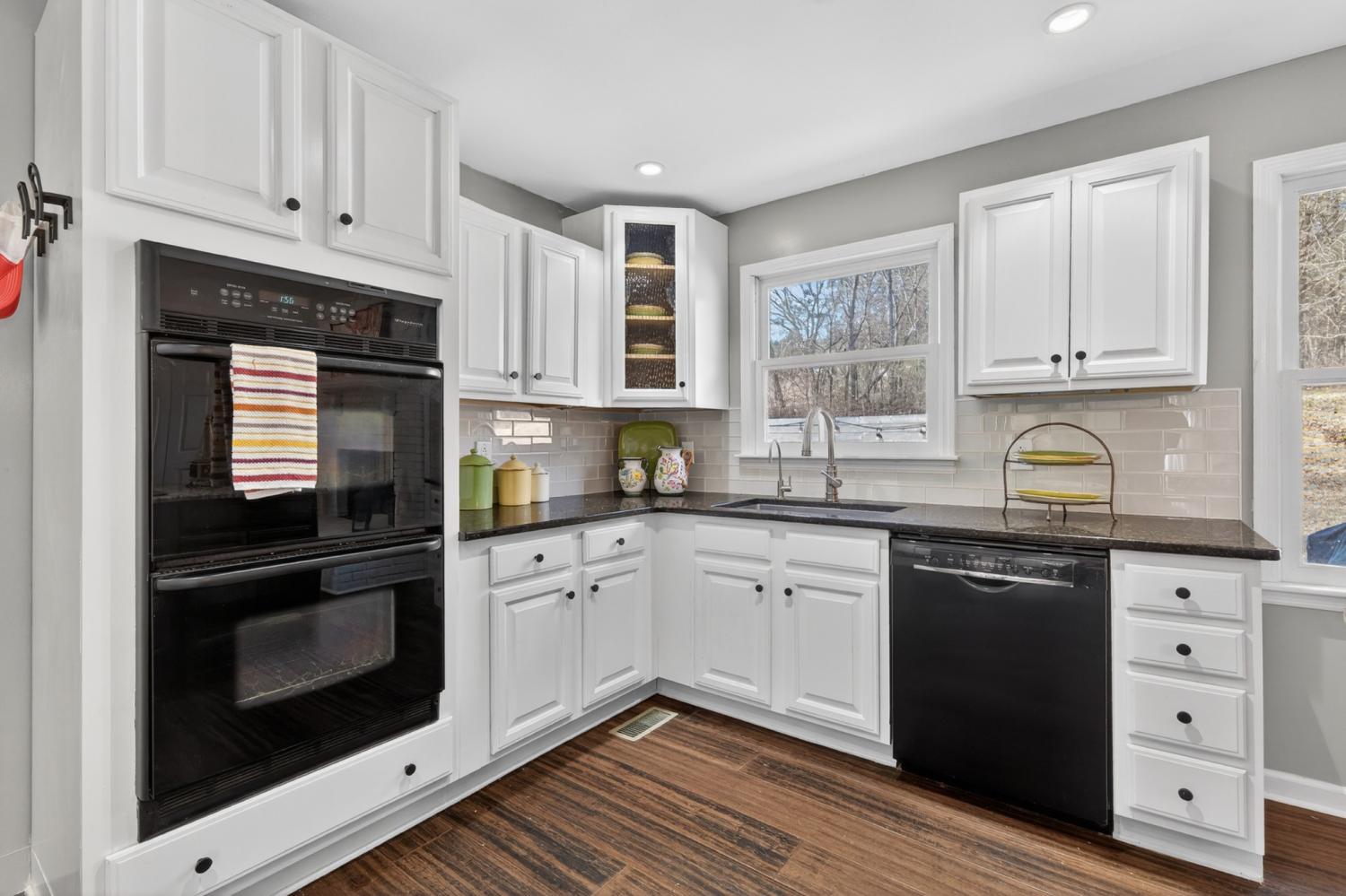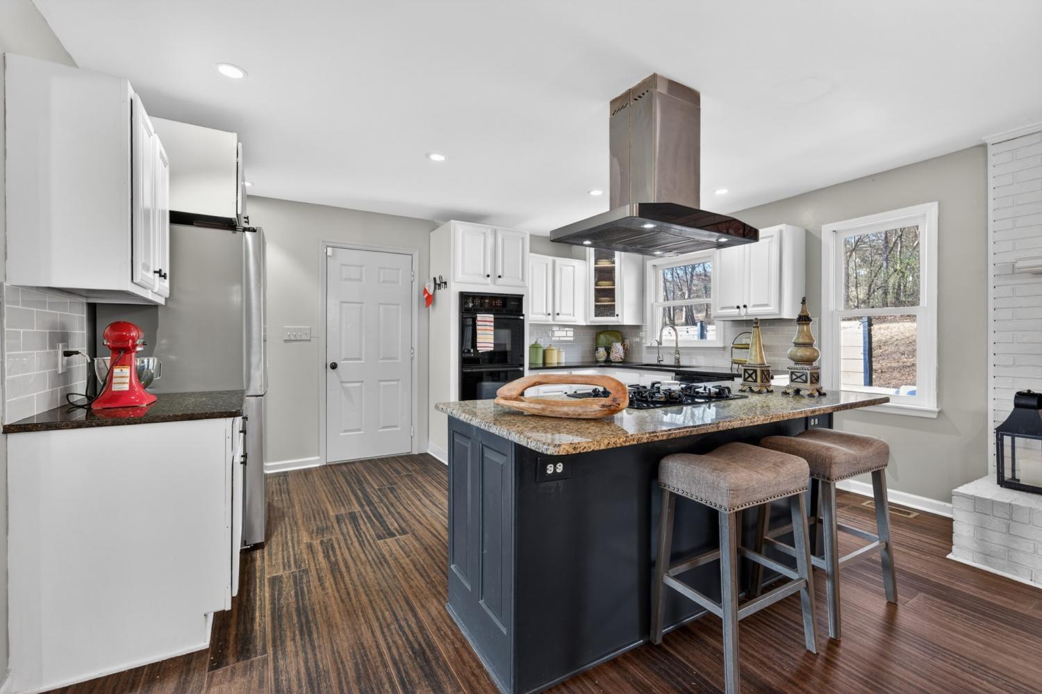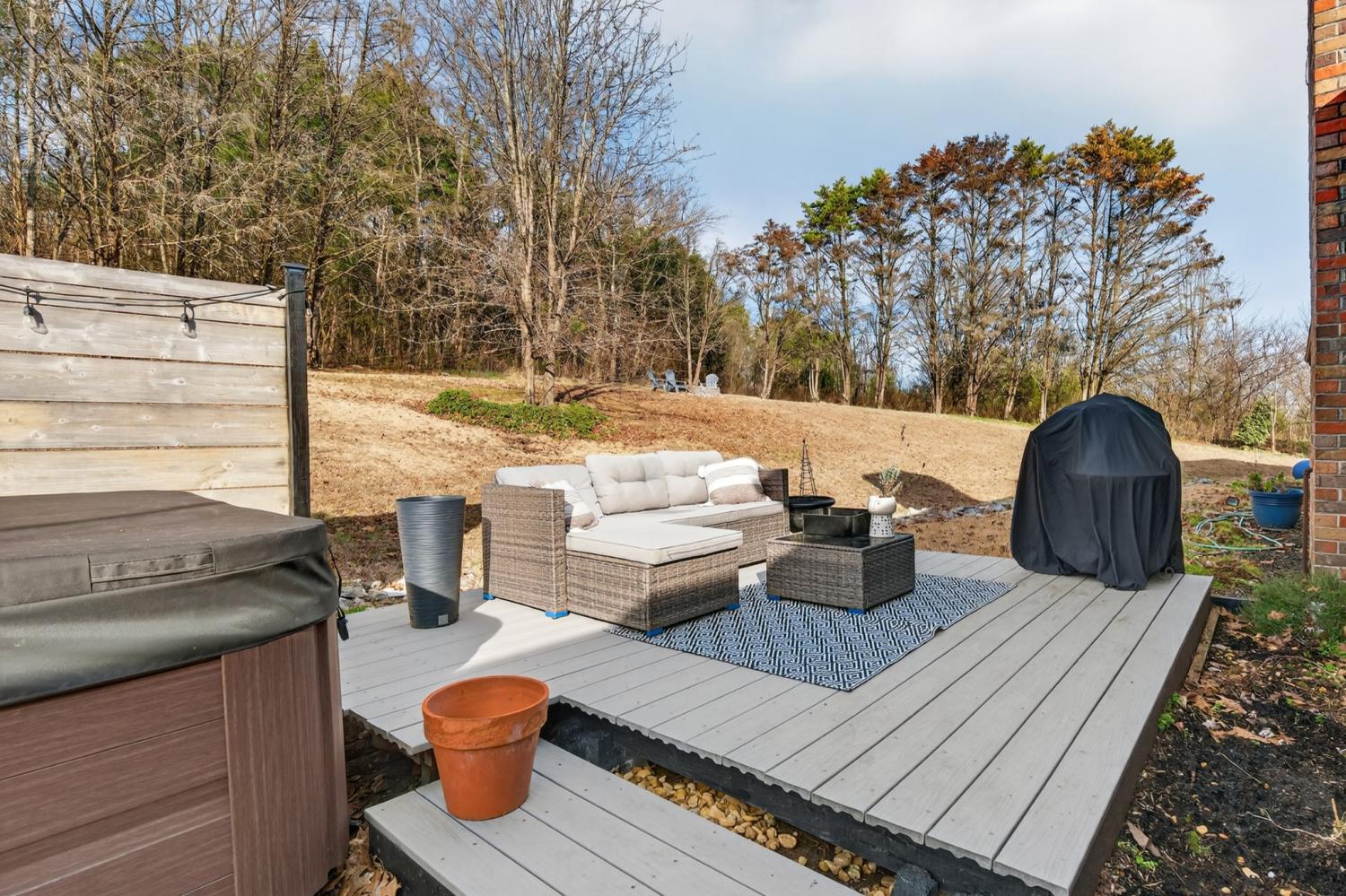Beautifully updated 4-bedroom, 2-bath brick home situated on 0.70 acres, offering a peaceful setting with convenient access to everyday amenities. Located approximately 1 mile from shopping and restaurants, 25 miles to Huntsville, and 85 miles to Nashville, this property provides the perfect balance of privacy and accessibility. This 1,747 sq ft home features an open, inviting layout with smooth ceilings, fresh neutral paint, and bamboo hardwood flooring throughout. The spacious kitchen includes granite countertops, double ovens, a gas cooktop, and ample cabinet space, opening to a bright living area with gas log fireplace and large windows that allow plenty of natural light. The primary suite offers a custom tiled walk-in shower, while both bathrooms feature tile flooring. The laundry area includes washer and dryer, and pull-down attic access in the garage provides additional storage. Outdoor features include a Trex deck, hot tub, fire pit, koi pond, and a 12x24 storage shed. Additional highlights include an attached 2-car garage, EV charger, Starlink, encapsulated crawl space with dehumidifier, termite bond, and well-maintained HVAC, plumbing, and electrical systems. No HOA.