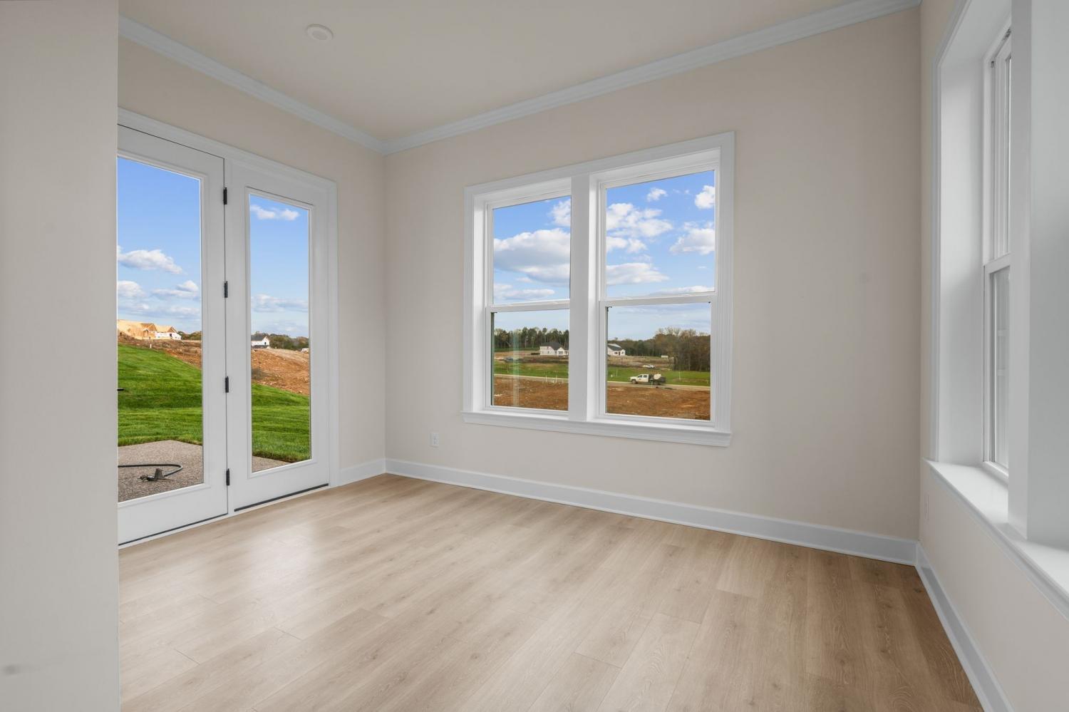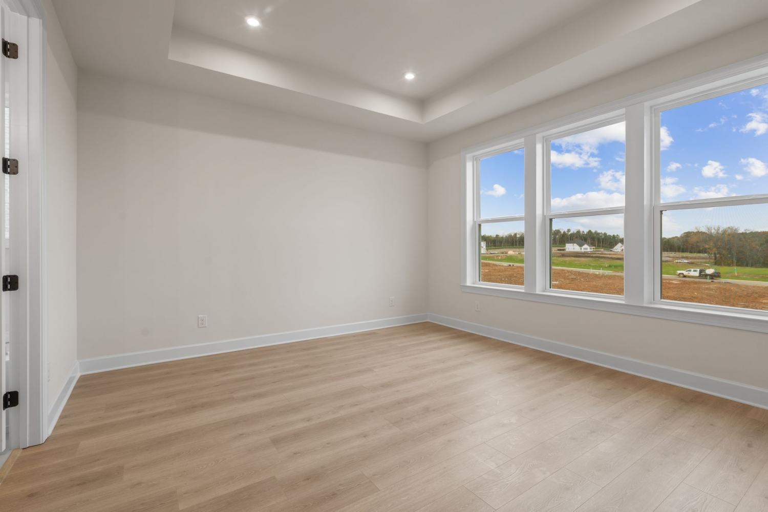 Welcome to the Buchanan – a home designed for comfort and style! Step inside and discover five spacious bedrooms and four full baths, with both the primary suite and a private guest retreat conveniently located on the main level. Soaring 9-foot ceilings on both floors, elegant crown molding, and detailed window casings create an atmosphere of timeless sophistication. The kitchen is a chef’s dream, featuring a built-in cooktop with a decorative vent hood and thoughtful finishes throughout. Upstairs, one of our largest lofts awaits—perfect for movie nights, game days, or a cozy reading nook—and includes finished storage for added convenience. Outside, enjoy the beauty and durability of four-sided brick, lush sod on all sides, and a side-entry garage that adds curb appeal. Beyond your home, the community offers an incredible lifestyle: a sparkling pool, clubhouse, fitness center, putting green, 9-hole frisbee golf course, playground, pickleball and basketball courts, and scenic walking trails. Come tour the Buchanan model for inspiration—and take advantage of our current Mortgage Choice incentive!(Homesite 126)