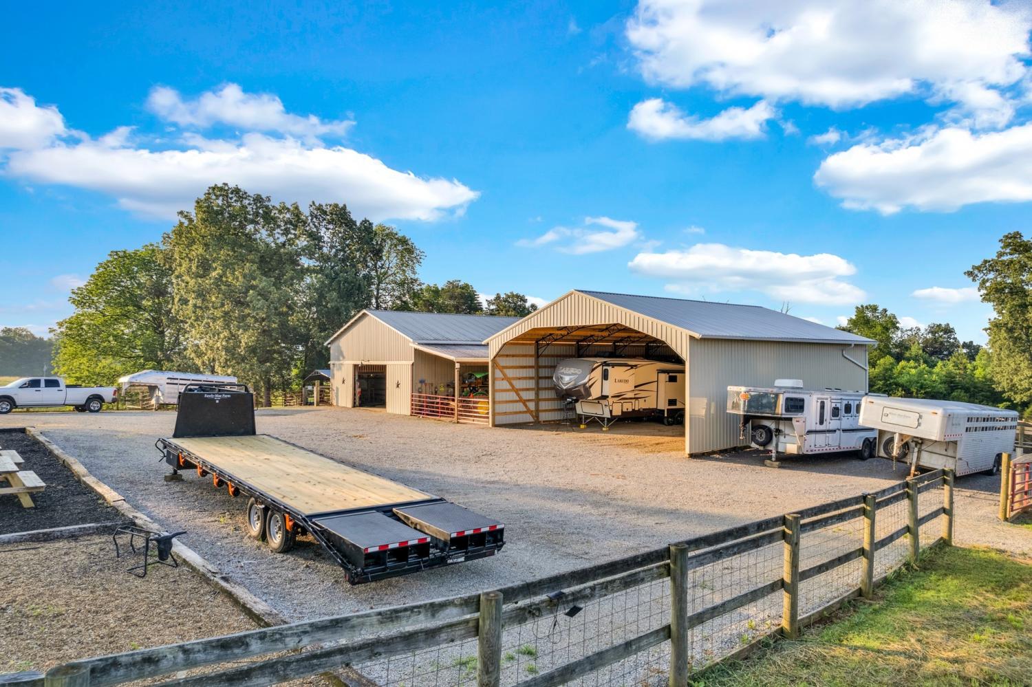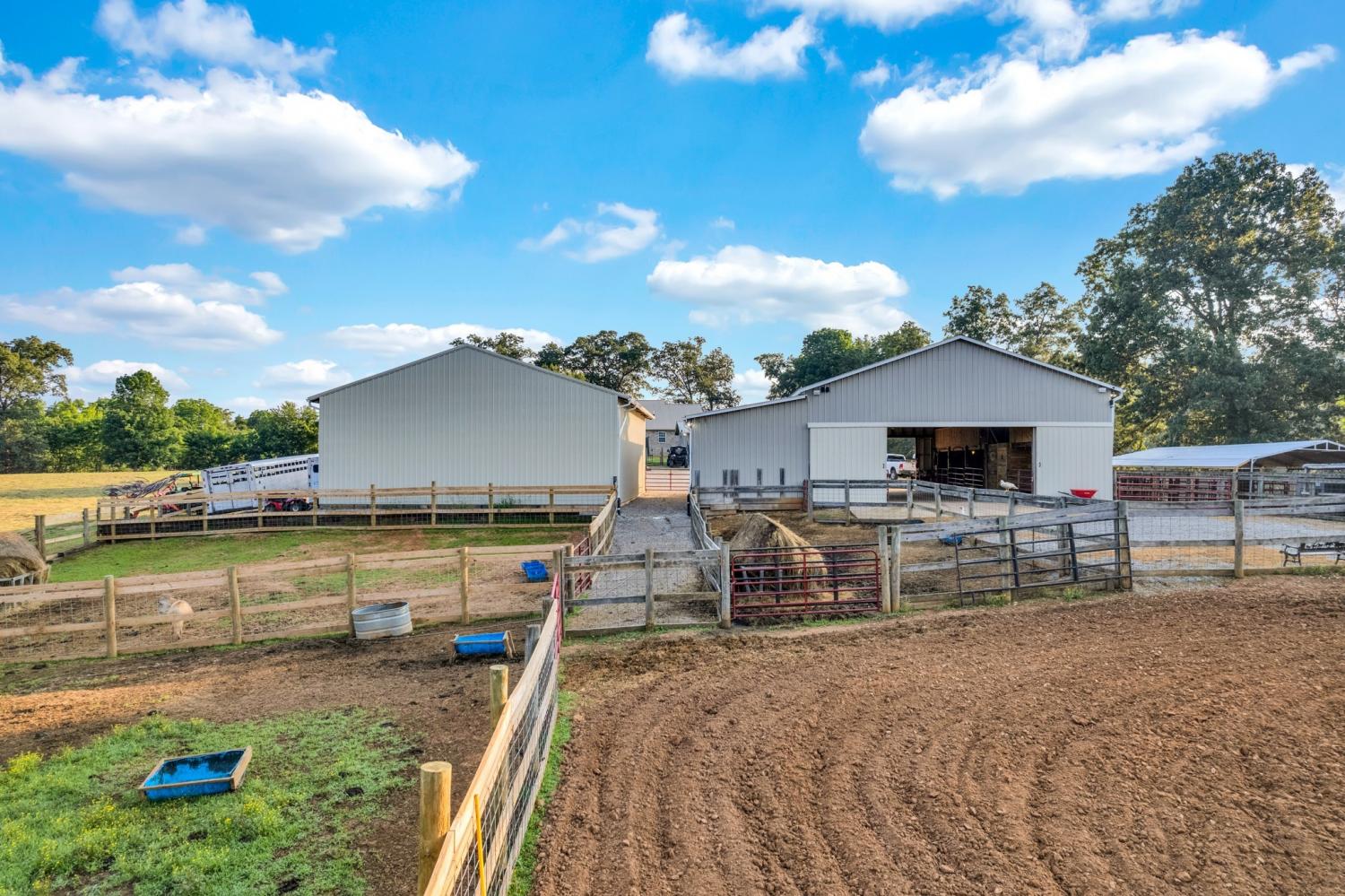 Welcome to 887 Ray Cemetery Rd located in Sparta, TN! This stunning countryside estate offers the perfect blend of modern comfort and rural charm on 15 lush, greenbelt-applied acres. The main home boasts 3 bedrooms, 3 bathrooms, and 2,060 sqft of beautifully maintained living space with hardwood floors throughout. The full 1,800 sqft basement features its own HVAC system, 2 bonus rooms and a full bathroom. Outside you'll find a 55x50 main barn with 8 stalls, overhead loft space, 50 amp RV hookup, storage room, wifi installed, security cameras, and an exterior speak system for agritourism events. There is a 2025 built 40x50 hay barn with two chicken coops, four pens with goat fencing, and four pens with cattle panels and also a 500+ sqft workshop with a concrete safe room, electricity, LED lighting and more! This private homestead also features a one-acre pond recently stocked with carp, blue gill, bass, catfish, and minnows, and a 30x54 above ground pool with a brand new sand pump, new liner, and deck with electrical outlets. Situated right between Sparta and Cookeville, this property is truly one-of-a kind! It's the ultimate homestead/farming dream!