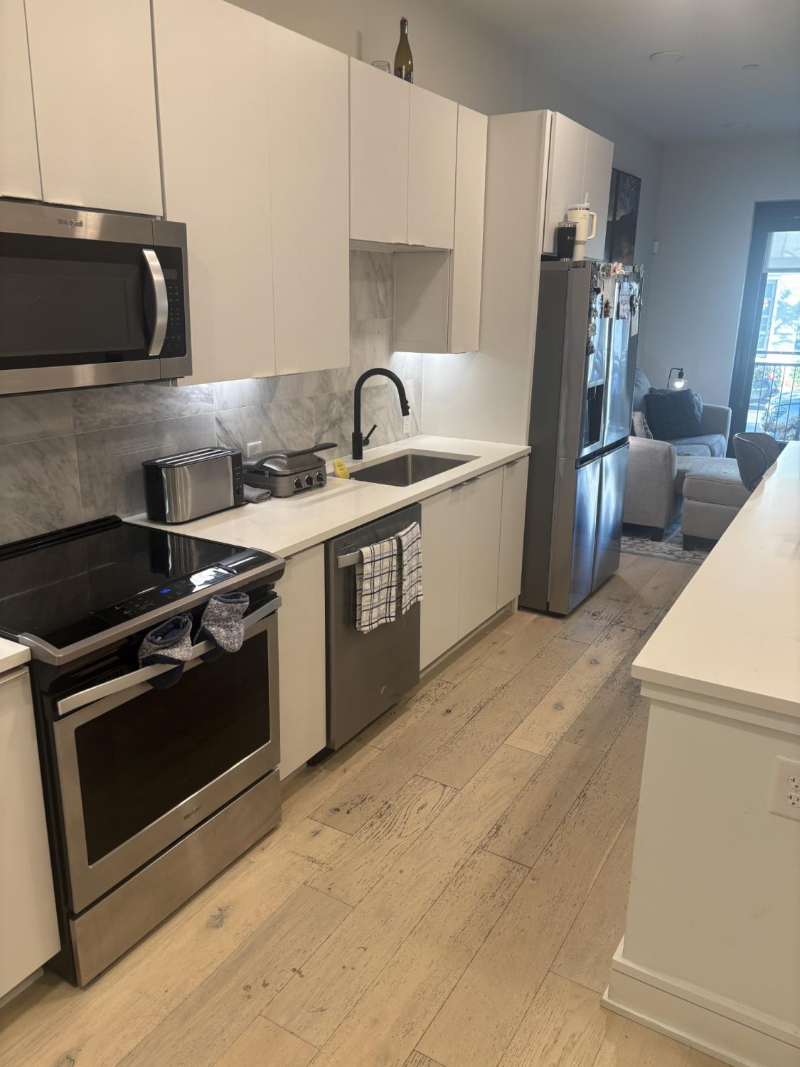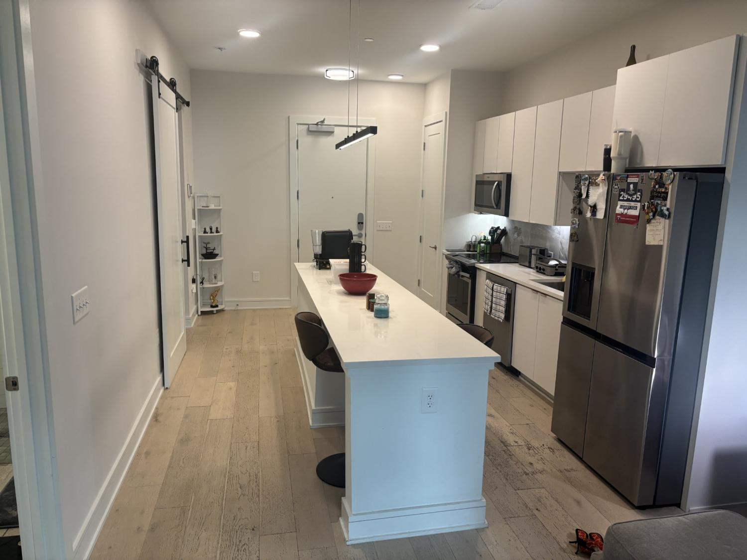 This stylish 1 Bedroom, 1 bath condo with added flex/office space offers 672 sq. ft. of modern living just minutes from downtown and steps away from the charming Germantown neighborhood, Bicentennial Park and the Nashville Farmers Market. This area is highly desirable with new developments, eateries and local business. A brand new updated Kroger's recently opened just up the street! This residence is located on the ground floor with its own private entrance with street parking right out front. There is also hallway access leading to the beautiful common areas; including a lounge, a library and rooftop balcony. The unit features tall ceilings and oversized windows creating an open, airy feel, great sized primary bath with large walk-in shower, custom built-walk in closet, a lengthy island for kitchen cooking and entertaining, and hardwood floors. Quartz countertops, Whirlpool stainless appliances, plenty of cabinet space and storage makes this condo remarkably easy to maintain.