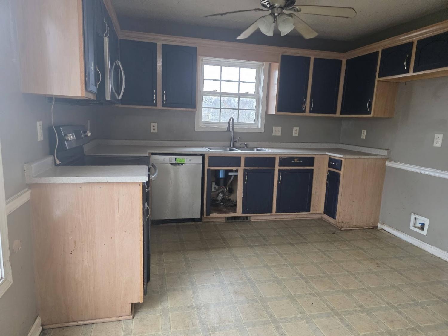 A spacious home featuring a large living room and kitchen, a large basement with garage A must see!