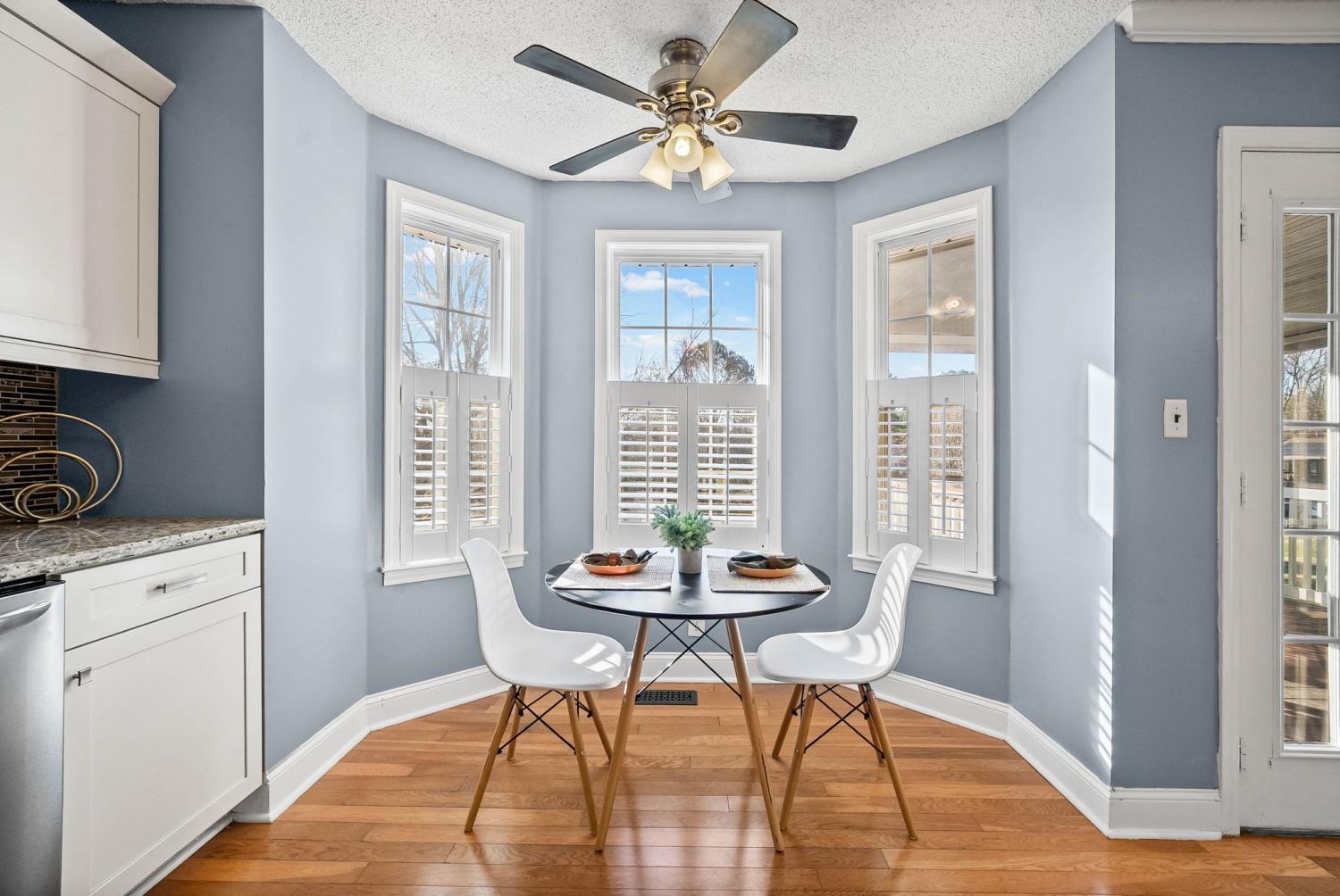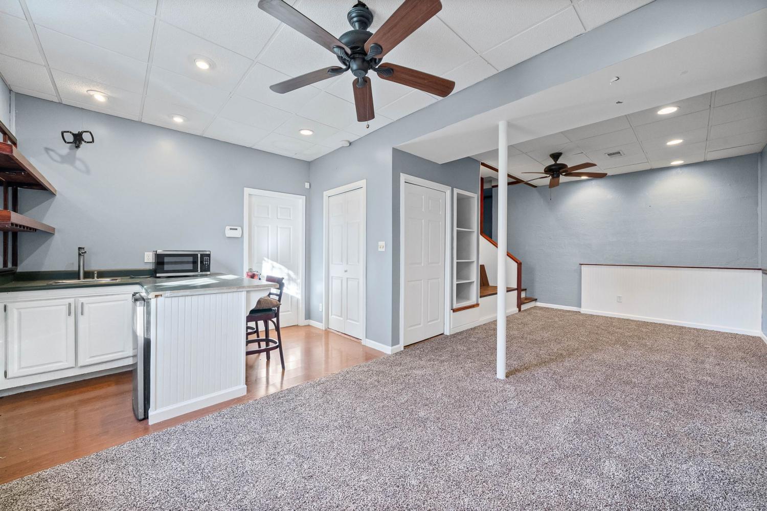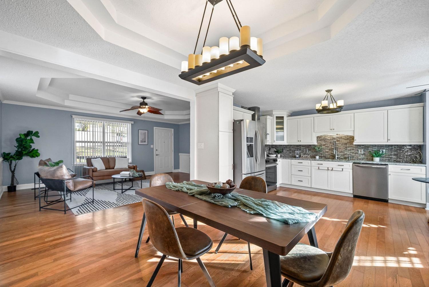 Welcome home to this charming three-bedroom, two-bath home with a full finished basement. Situated on a spacious lot, the inviting front porch is perfect for enjoying morning coffee, sunsets, or simply relaxing outdoors. Inside, you’ll find beautiful hardwood floors, tray ceilings, and a large eat-in kitchen with abundant cabinet and counter space. The primary suite includes a full bath, creating your own private retreat. The home also features a generous two-car garage/workshop, complete with built-in cabinets and even a functioning urinal. The fully finished basement offers versatile space and a built in wet bar—ideal for entertaining or working from home.Step out back to enjoy the expansive deck, complete with a brand-new built in hot tub for your own relaxing retreat.
