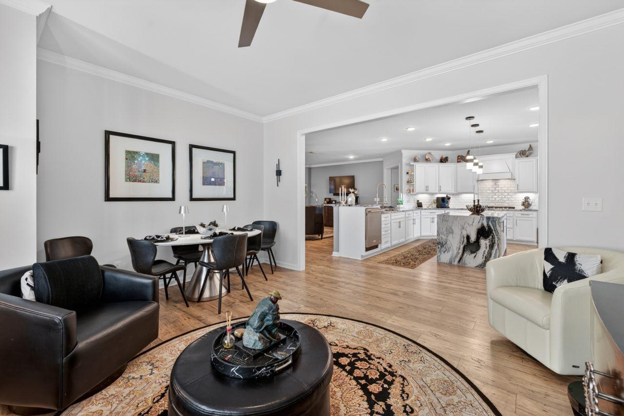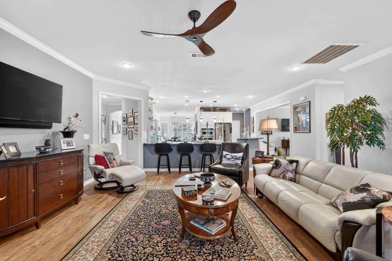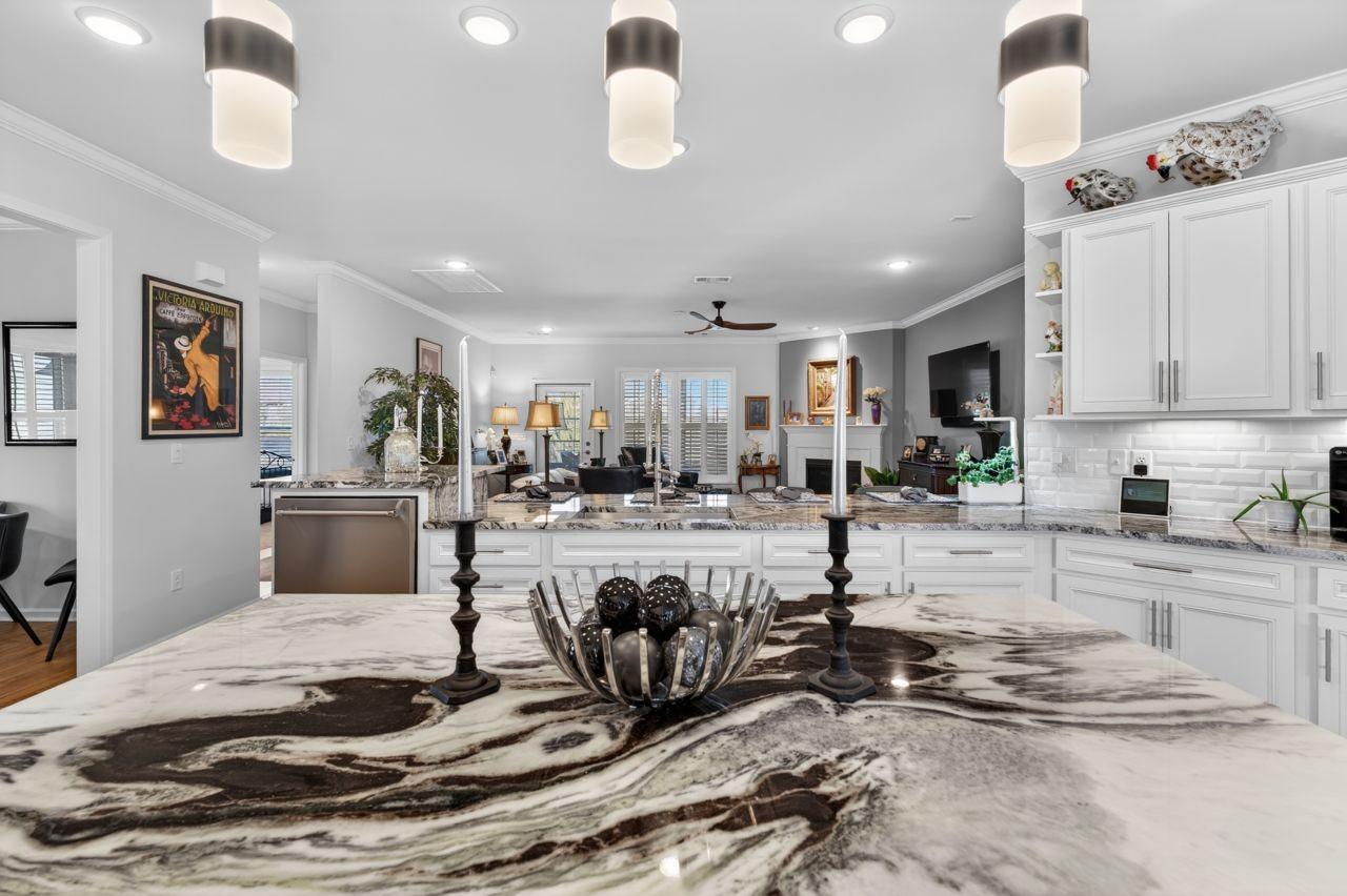 55-Plus Community located in the Southern Springs Dell Webb Community. Welcome to refined, low-maintenance living in this beautifully upgraded residence located within a sought-after 55 + community. Thoughtfully enhanced with HIGH-END Luxury finishes ready to enjoy the next chapter in style. From the moment you step inside, you will notice the attention to detail such as upgraded LIGHTING THROUGHOUT, LUXURY STYLED KITCHEN BACKSPLASH / COUNTERTOPS / WATERFALL CENTER ISLAND. High-end appliances with a less than year old LG REFRIGERATOR conveys with the house. The Primary suite on the Main floor offers a serene retreat, complete with a walk-in shower designed with UPGRADED SHOWER TILE and generous closet space. Beautifully enclosed porch creating an elegant extension of comfort for indoor-outdoor living. Beautifully landscaped, fenced - in - yard providing a secure outdoor space for pets. Additional bed rooms provide flexibility for guests, or hobbies with their own private full bath. Well appointed office space/room offers a practical and flexible area for working from home. Residents enjoy access to community amenities designed for an active, social lifestyle - while the HOA maintains landscaping and common areas for lock - and - leave convenience. UPGRADED CEILIING FANS, LAUNDRY SINK, MOTION LIGHTS - FRONT AND BACK PORCH. 2 and 1/2-car garage upgraded with ATTIC PULL DOWN STAIRS AND GARAGE ATTIC FLOORING providing excellent storage space. Nothing more to do, but move in and enjoy! Complete upgrade list is in the MLS listing.